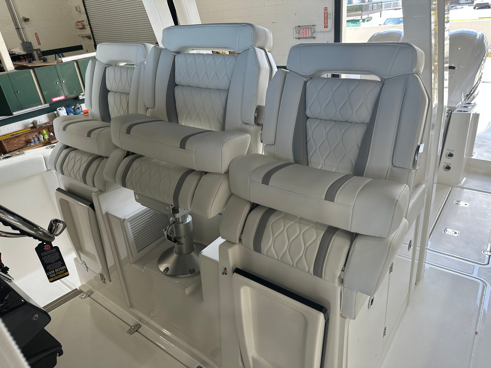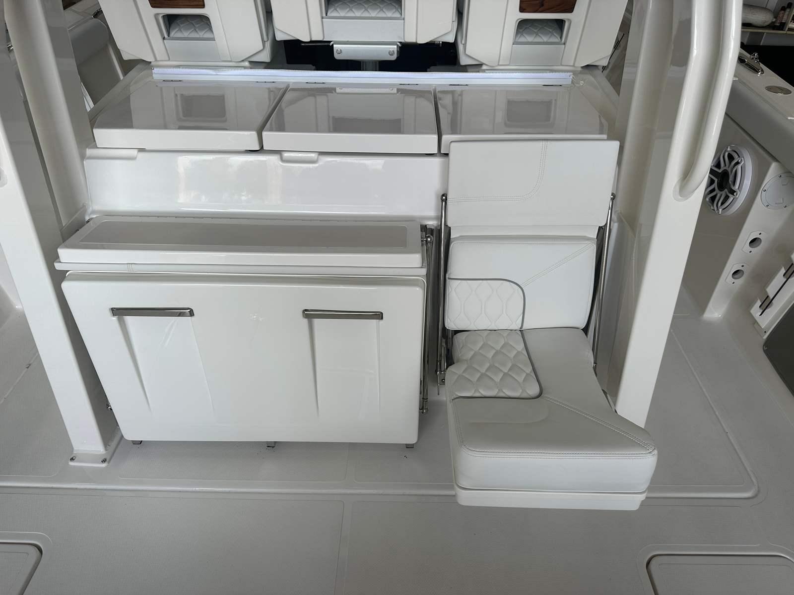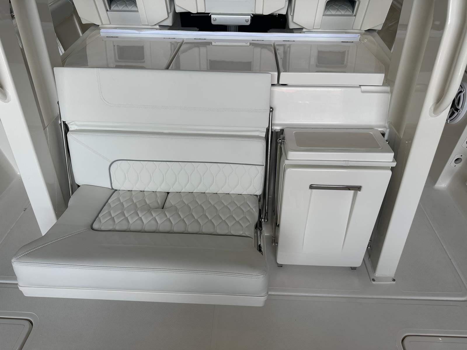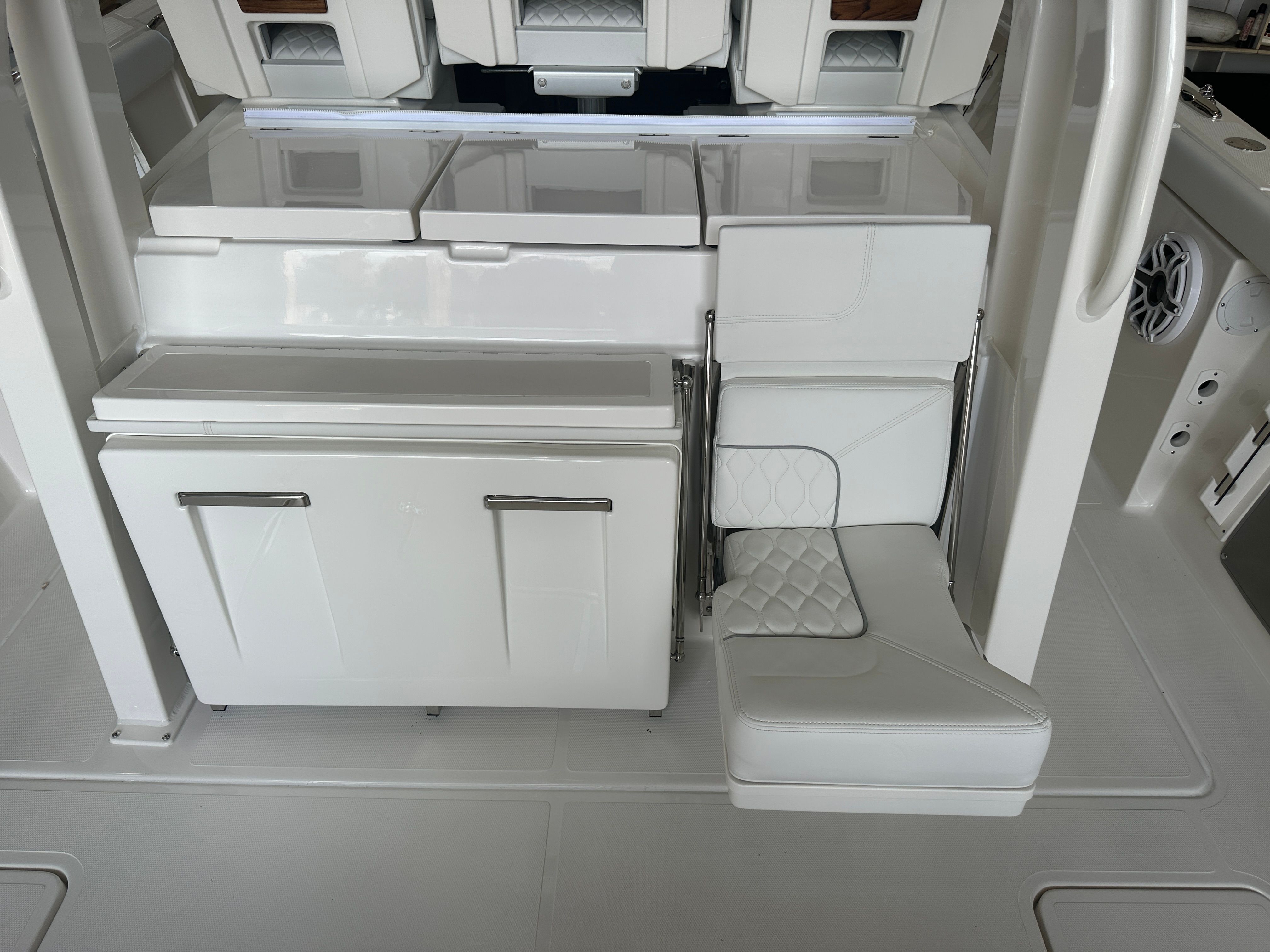 The 2026 Pursuit S 358 Center Console is a testament to Pursuit’s commitment to quality and innovation. Measuring an impressive 37.33 feet in length, this boat provides ample space for relaxation, entertainment, and adventure. The sleek Fresh White hull, accented with a Navy boot stripe and navy accent, ensures that this vessel turns heads wherever it goes. The new condition of this Center Console boat for sale means you will be the first to enjoy its pristine features and cutting-edge technology.