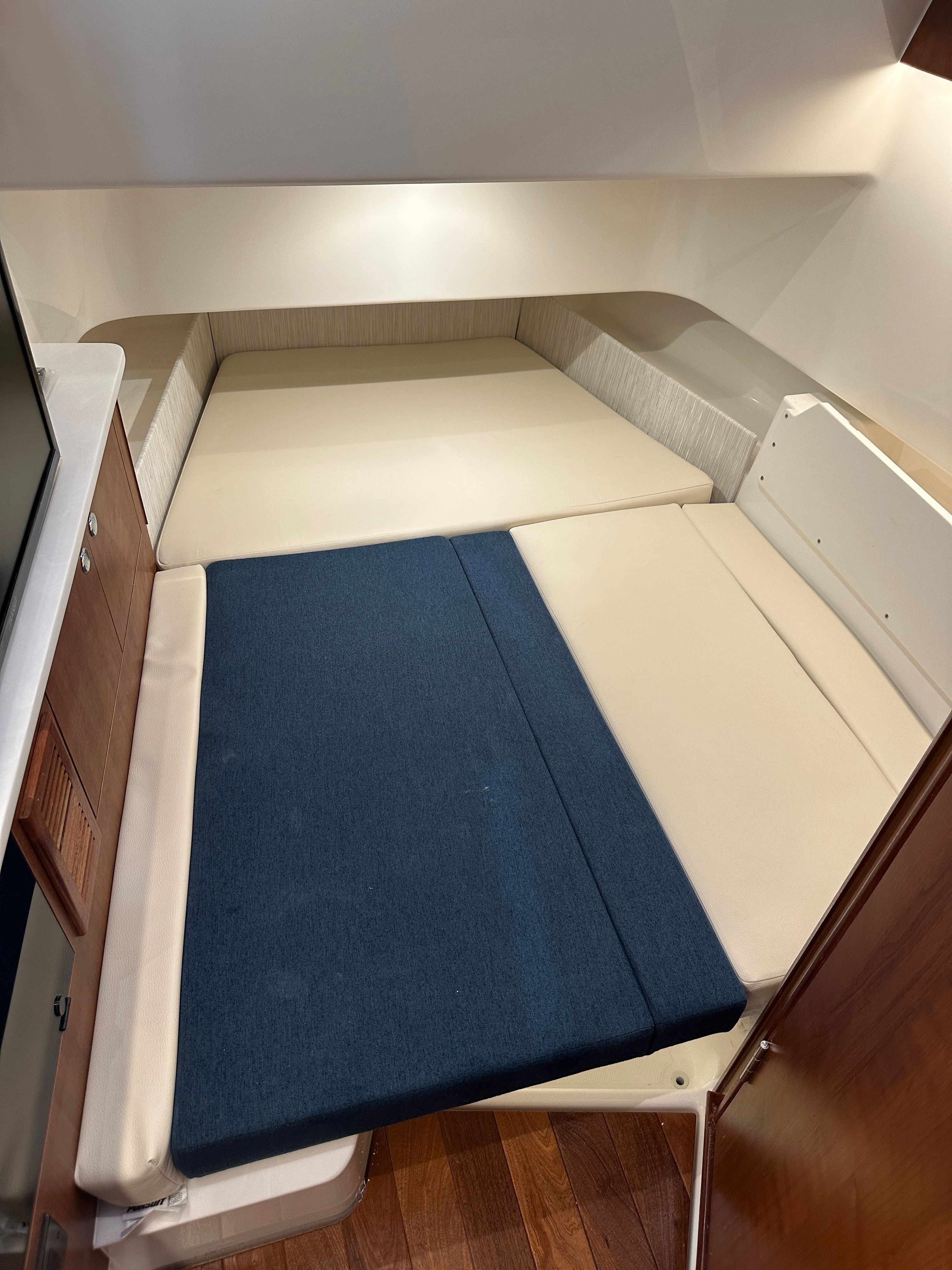 The Pursuit S 358 is packed with premium features designed to enhance your boating experience. One of the standout features is the Seakeeper Gyro Stabilization System, which significantly reduces boat roll, ensuring a stable and comfortable ride even in choppy conditions. The hardtop liner in Flag Blue adds a touch of elegance, while the helm and footrest in Carbon provide both style and ergonomic comfort.Inside, the Tranquil Sea interior and White Exterior Upholstery Sport create a sophisticated and inviting atmosphere. The 120V/60HZ 5.0KW Diesel Genset ensures you have reliable power for all your onboard needs, while the 110V/60HZ 6K BTU Cabin Air Conditioning keeps the cabin cool and comfortable, no matter the weather outside. Every detail, from the hull color to the upholstery, has been carefully selected to provide both aesthetic appeal and practical functionality.