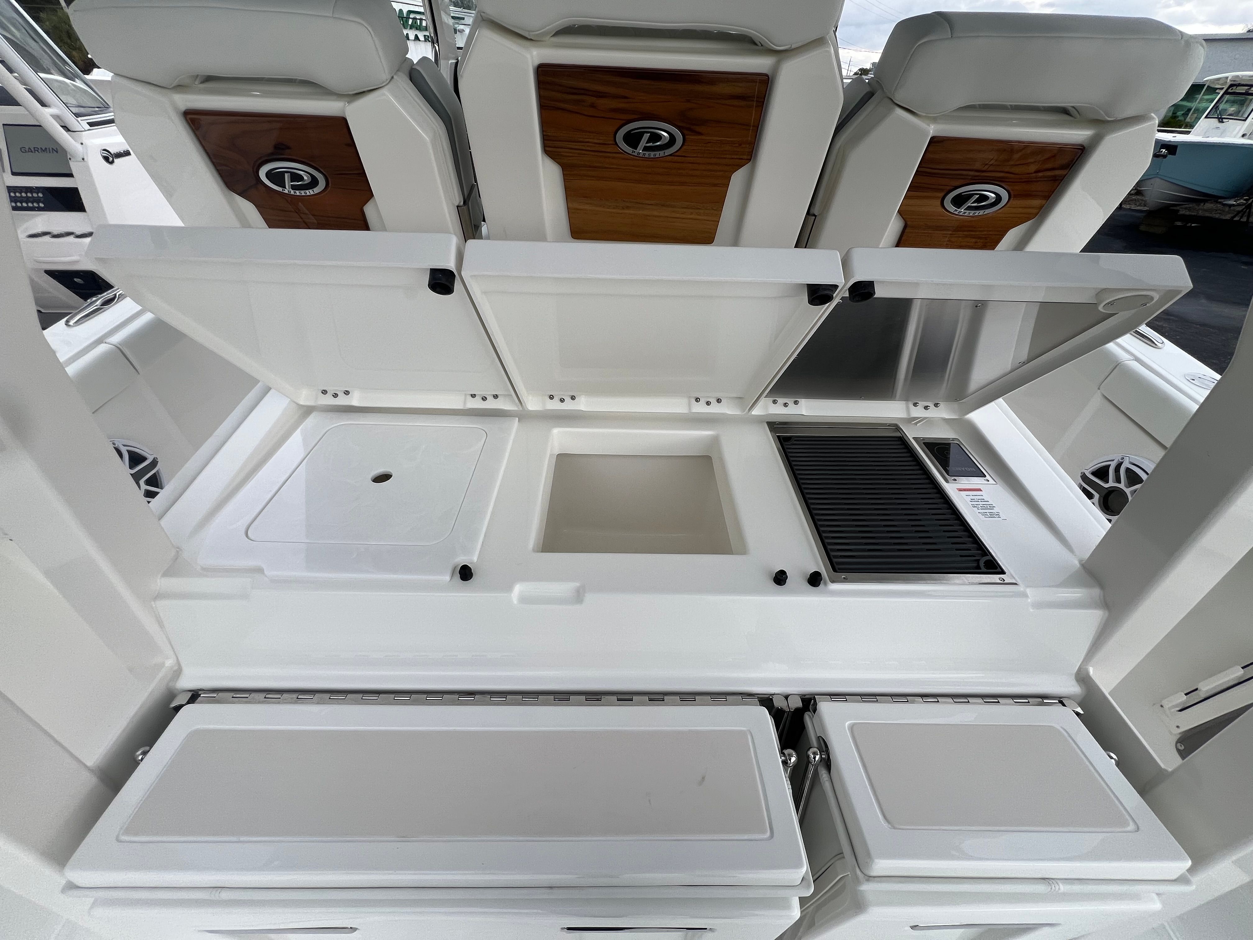 Power and precision define the Pursuit S 358’s on-water experience. Equipped with twin Yamaha F450S engines, this center console boat boasts a combined 900 horsepower, delivering exhilarating speed and responsive handling. Whether you are navigating coastal waters, heading offshore for a day of fishing, or simply cruising with friends and family, the S 358’s performance is both thrilling and reliable. The advanced Seakeeper Gyro Stabilization System ensures a smooth and stable ride, minimizing roll and enhancing comfort even in choppy conditions. With this level of power and stability, you can confidently explore new horizons and make the most of every outing.