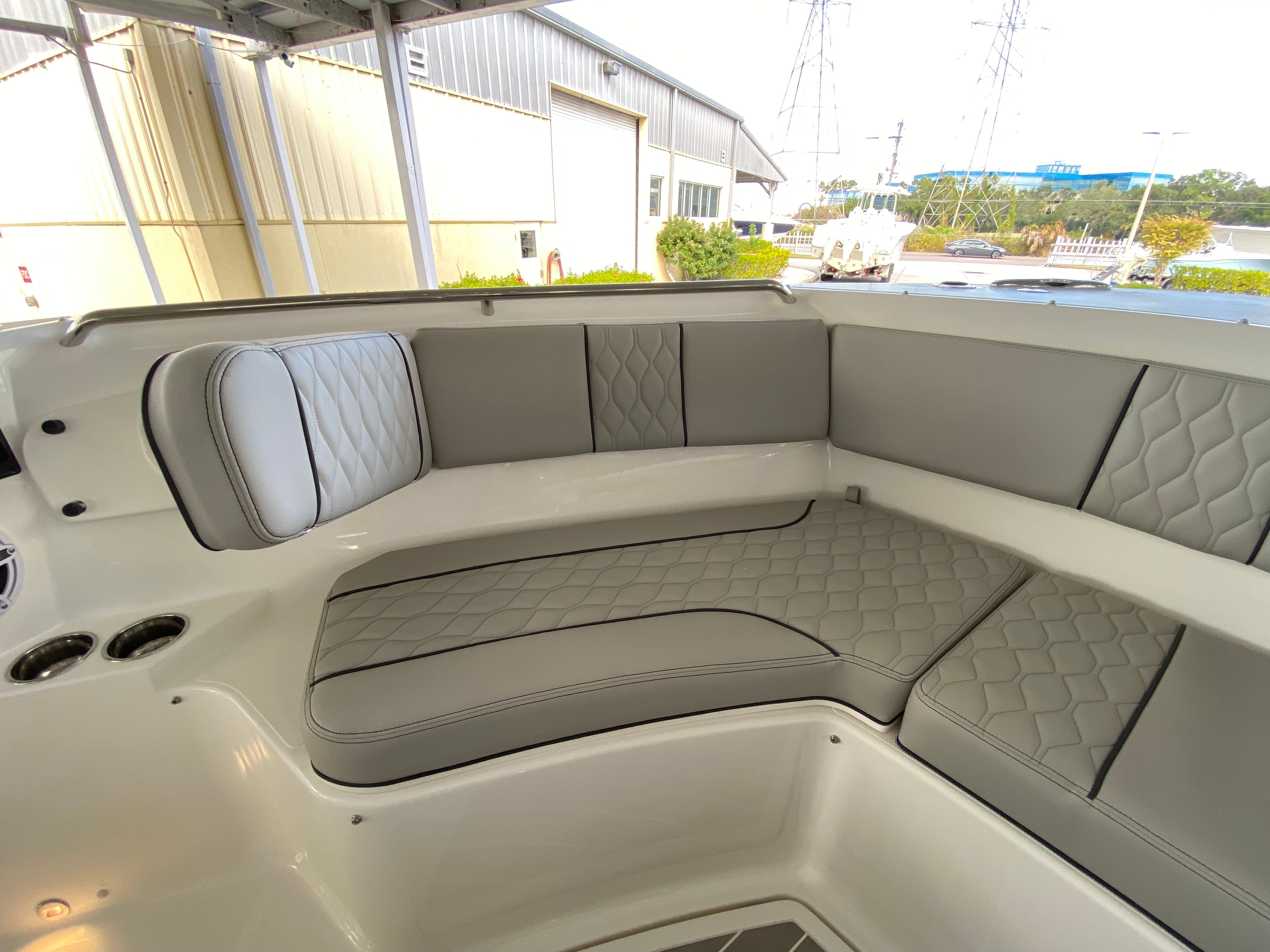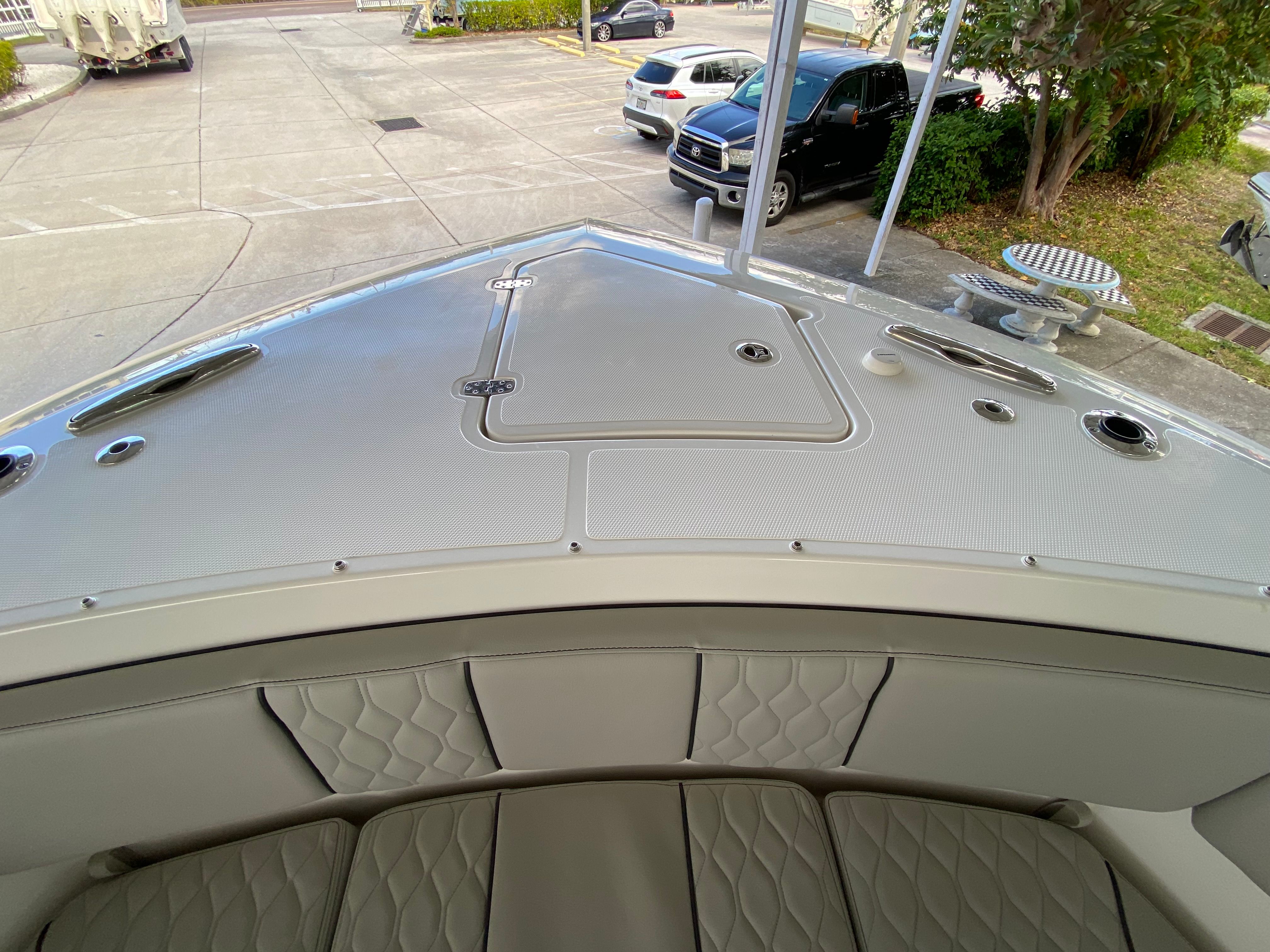 Owning the Pursuit S 358 Center Console means embracing a lifestyle of fun, relaxation, and adventure. The spacious layout is perfect for socializing with family and friends, whether you’re hosting a sunset cruise, enjoying a day of water sports, or simply relaxing at anchor. The advanced air conditioning systems in both the cabin and cockpit ensure everyone stays comfortable, even during the hottest days of summer. The tranquil sea interior fabric and carbon helm create a serene and stylish environment, making every outing feel like a luxury retreat.The innovative sunshade solutions—both at the bow and integrated into the hardtop—allow you to customize your exposure to the sun, ensuring comfort for all passengers. With powerful twin Yamaha engines, you’ll enjoy the freedom to explore new destinations, reach your favorite fishing spots quickly, or simply cruise in style and confidence.