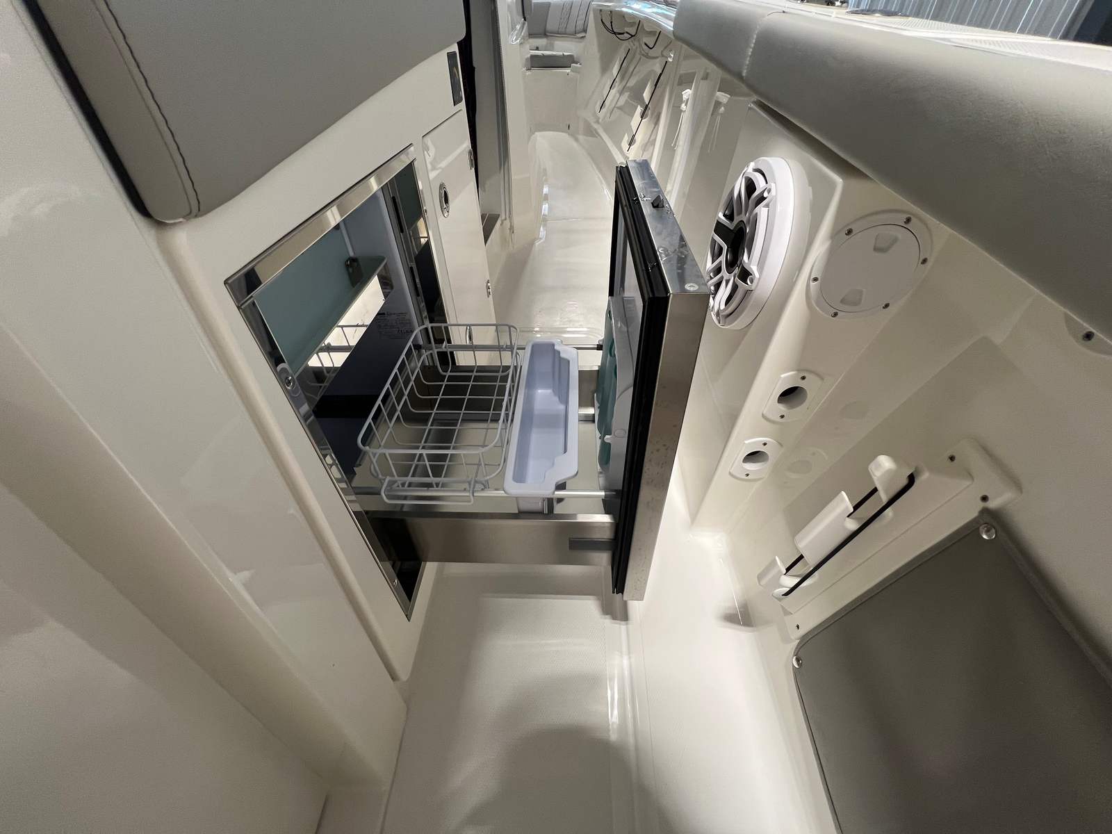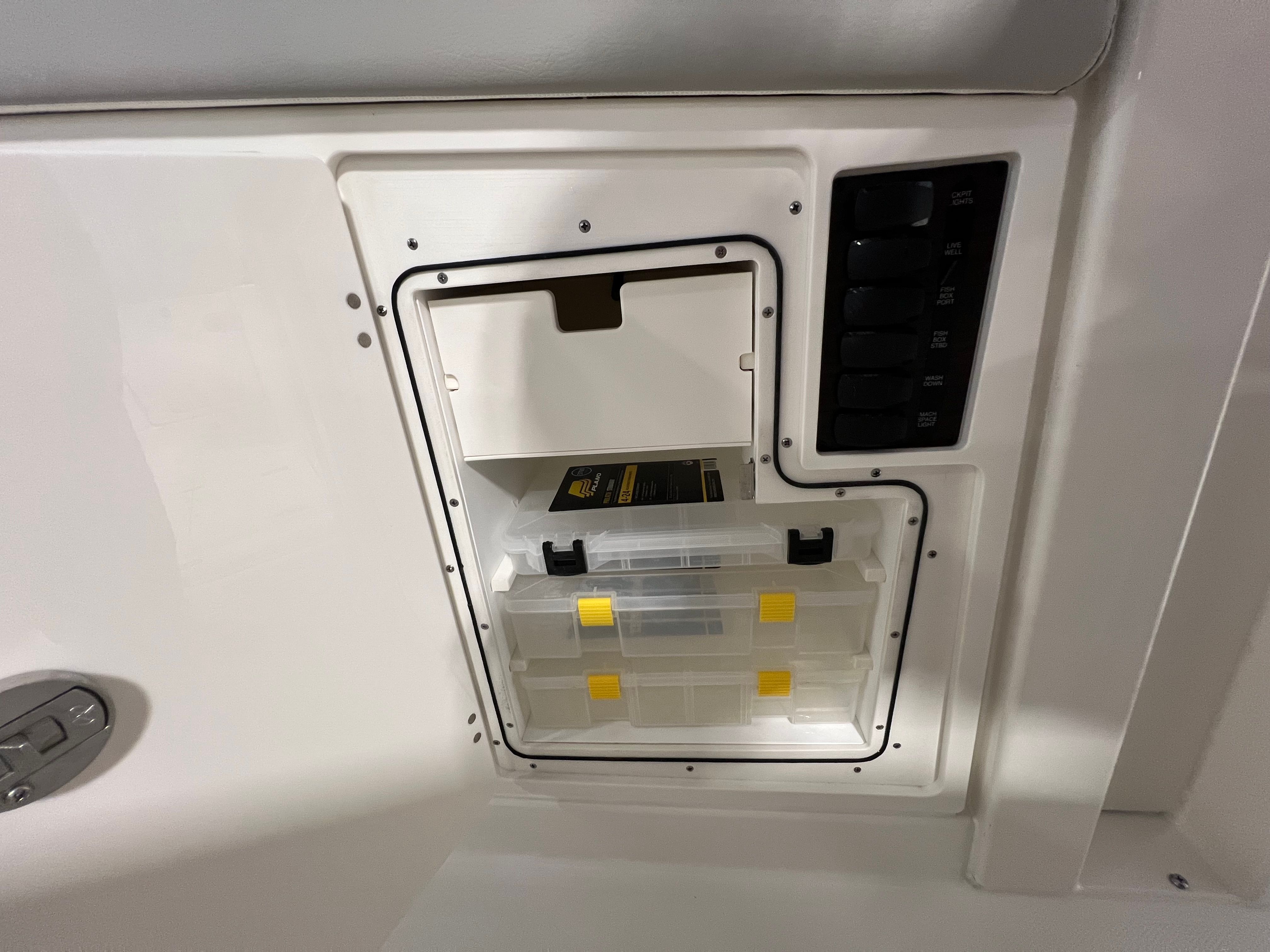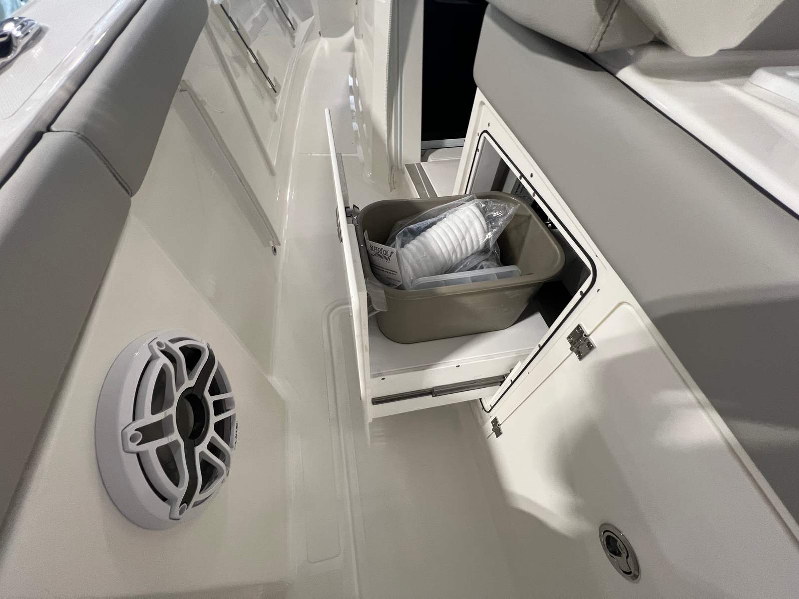 The Pursuit 358 S is loaded with premium features designed to enhance your boating experience. Enjoy year-round comfort with both 110v/60Hz cabin air conditioning with reverse cycle (6,000 BTU) and 110V/60Hz cockpit air conditioning with reverse cycle (16,000 BTU), ensuring a pleasant environment whether you’re relaxing inside or entertaining guests in the cockpit. The three-sided enclosure, crafted from white Stamoid and polycarbonate windows, offers protection from the elements while maintaining clear visibility and an open feel.For those who demand the latest in marine electronics, the Pursuit 358 S includes a Garmin widescreen 16" display package, a second Garmin widescreen 16" display, and an add GMS 10 expander for Garmin OPTS, providing seamless navigation, fish finding, and system monitoring. The custom hardtop features integrated stainless steel retractable Makefast sunshade with one-touch operation, allowing you to easily adjust your shade and comfort level throughout the day.Anglers will appreciate the hardtop-mounted rod holders (6), offering convenient storage and quick access to your fishing gear. The onboard generator (120V/60Hz, 5.0kw Fischer Panda genset with a 16-gallon diesel tank) ensures you have reliable power for all your onboard systems, including a GFI outlet and a 0.7 cu. ft. microwave, which replaces the upper storage in the cabin for added convenience.