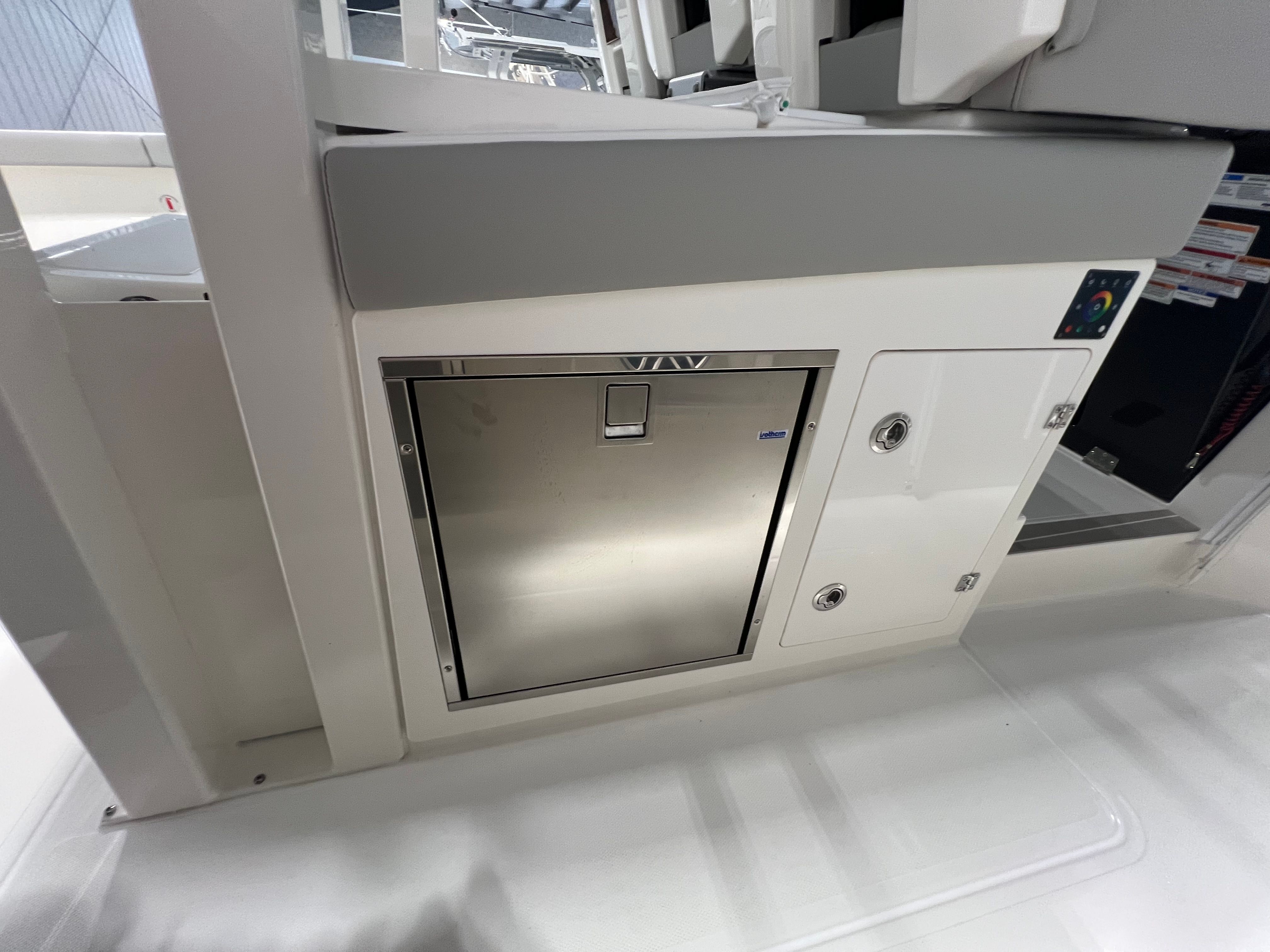 - Generator 120V/60Hz (5.0kw Fischer Panda Genset (16 gal diesel tank), Includes one GFI Outlet, includes 0.7 cu. Ft. Microwave (replaces upper storage in cabin)