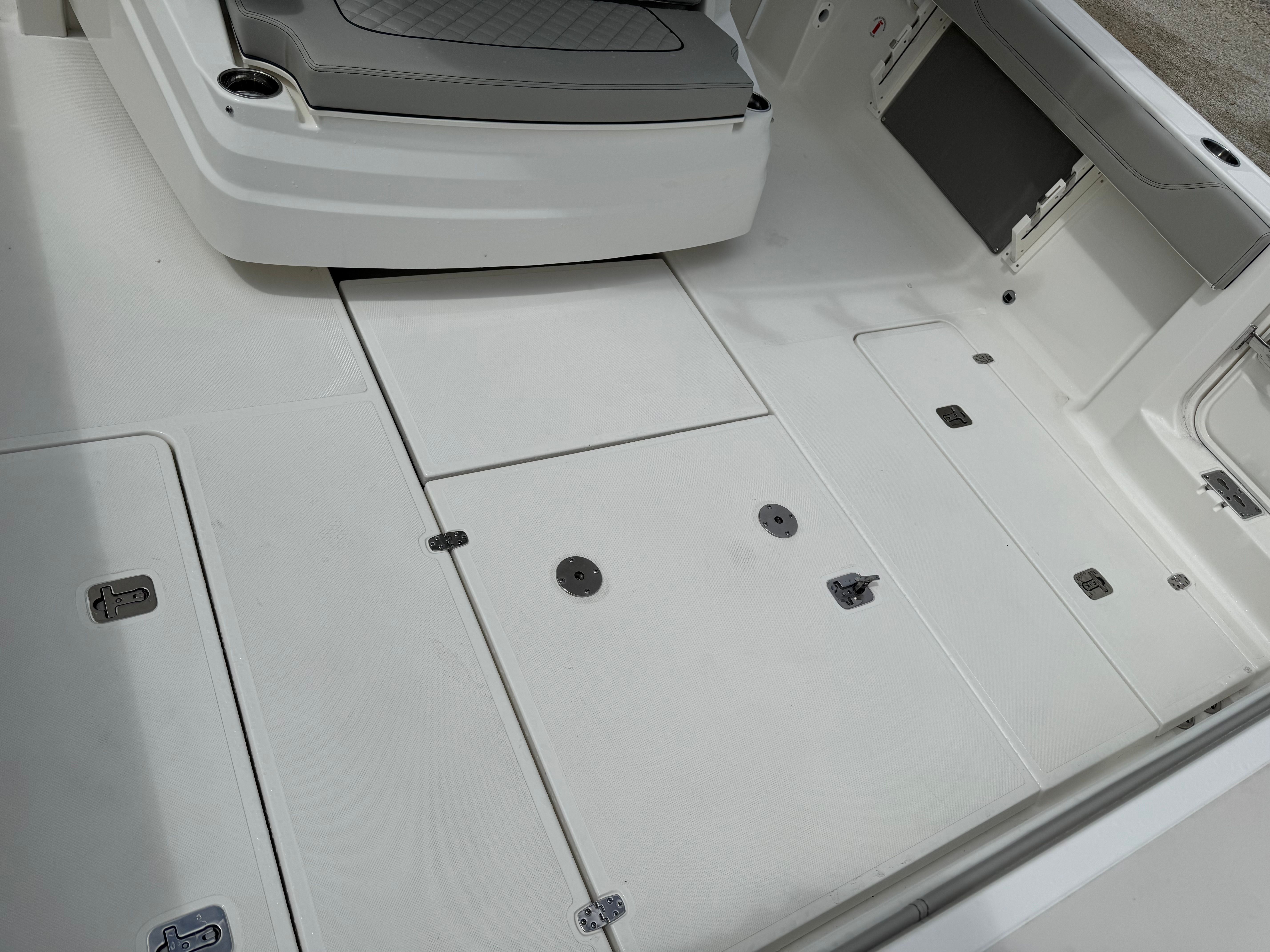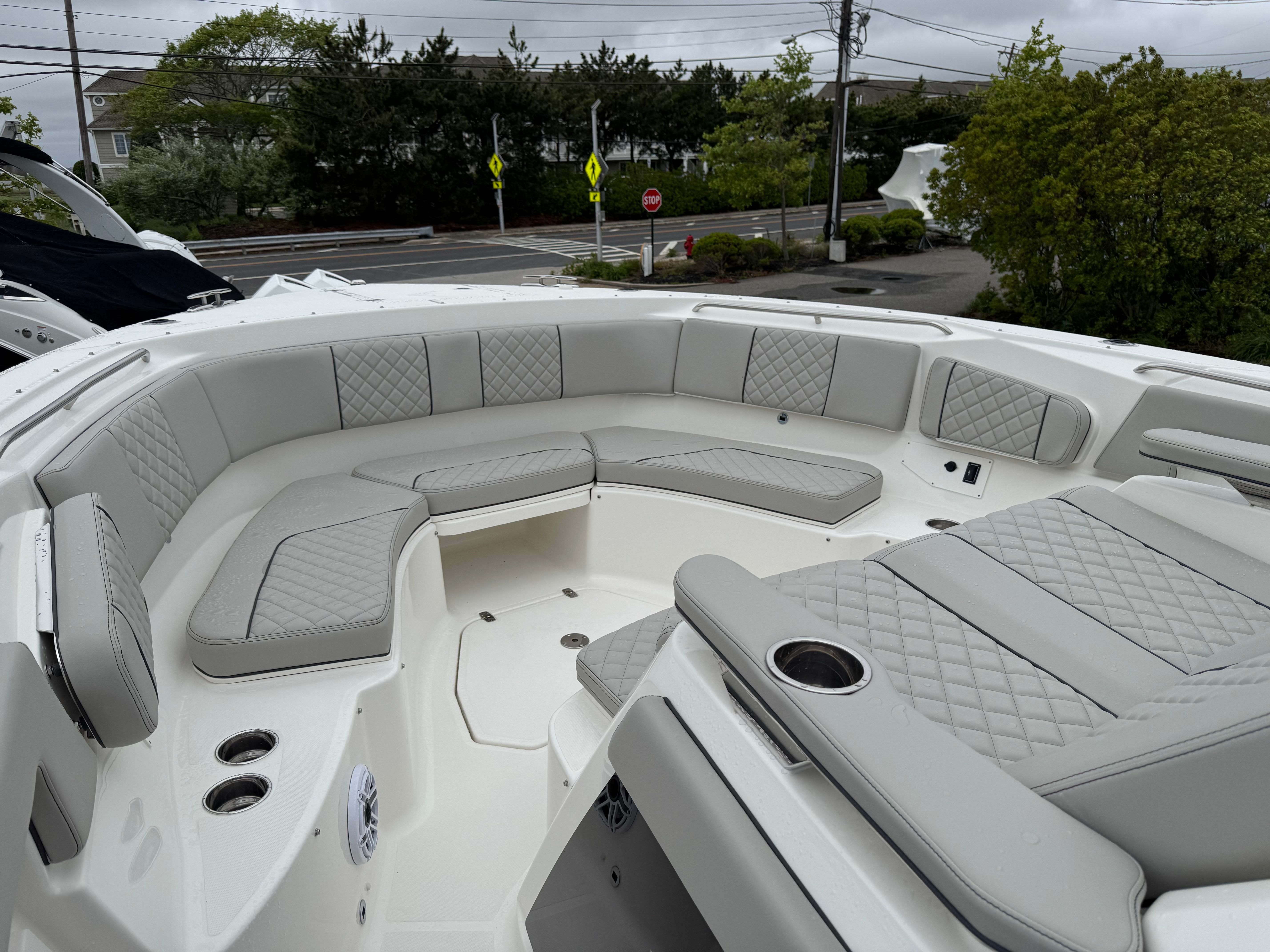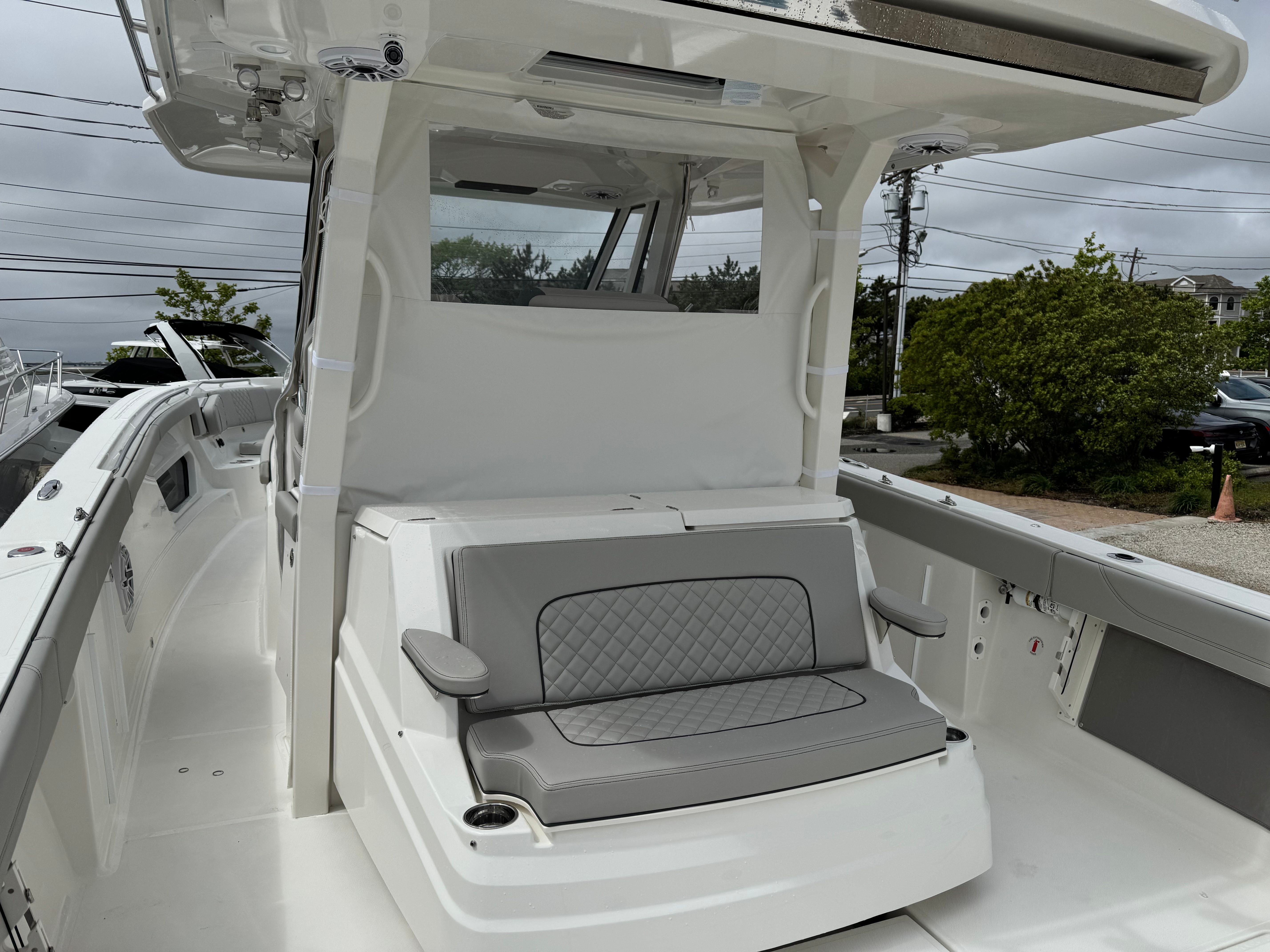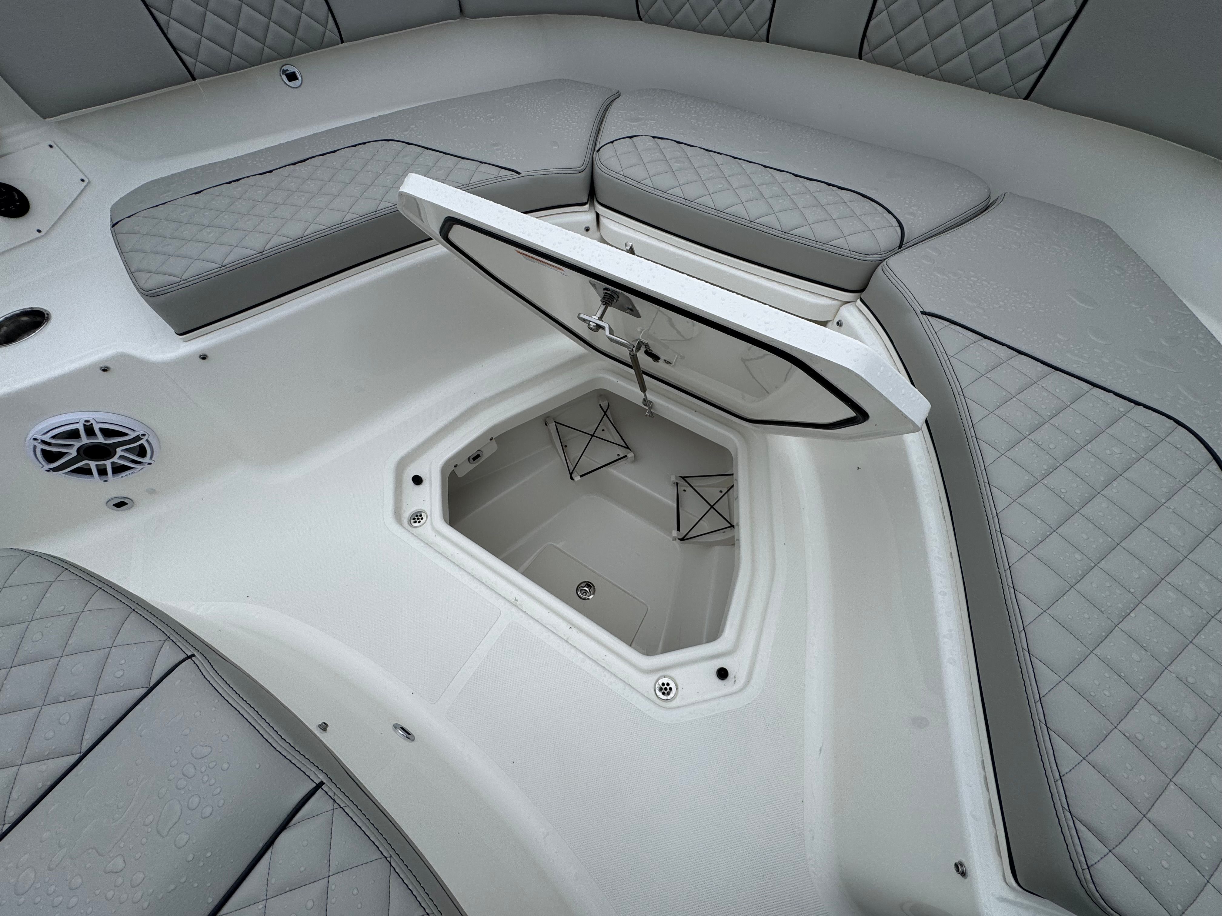 Practicality is at the heart of the Pursuit S 378’s design. The triple engine configuration not only delivers impressive speed but also provides redundancy for added safety and reliability. The advanced navigation and camera systems make docking and tight maneuvers straightforward, even for less experienced boaters. The underwater LED lights and spotlight enhance visibility during nighttime operations, while the weather receiver keeps you informed and prepared for any changes.Storage solutions are thoughtfully integrated throughout the boat, making it easy to stow gear, tackle, and personal items. The efficient layout ensures that everything you need is within reach, so you can focus on enjoying your time on the water. The Pursuit S 378 is also designed with fuel efficiency in mind, allowing you to cover more distance without frequent stops, making it ideal for extended trips or spontaneous getaways.