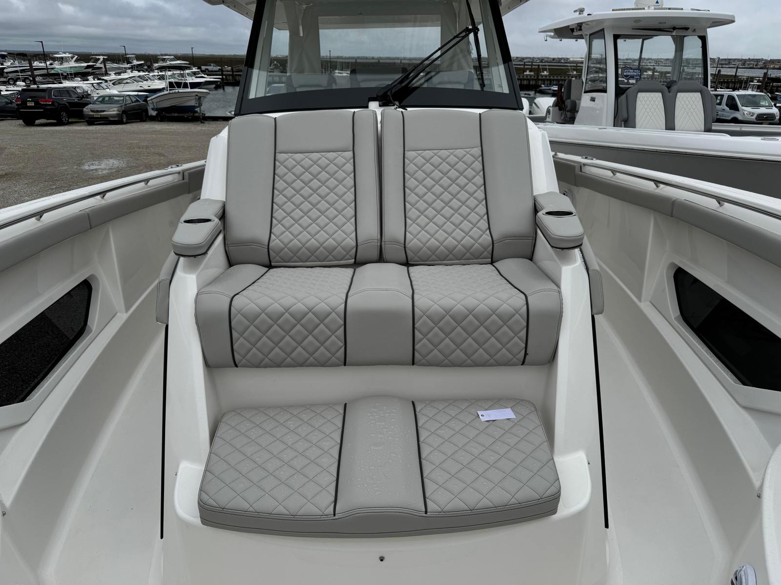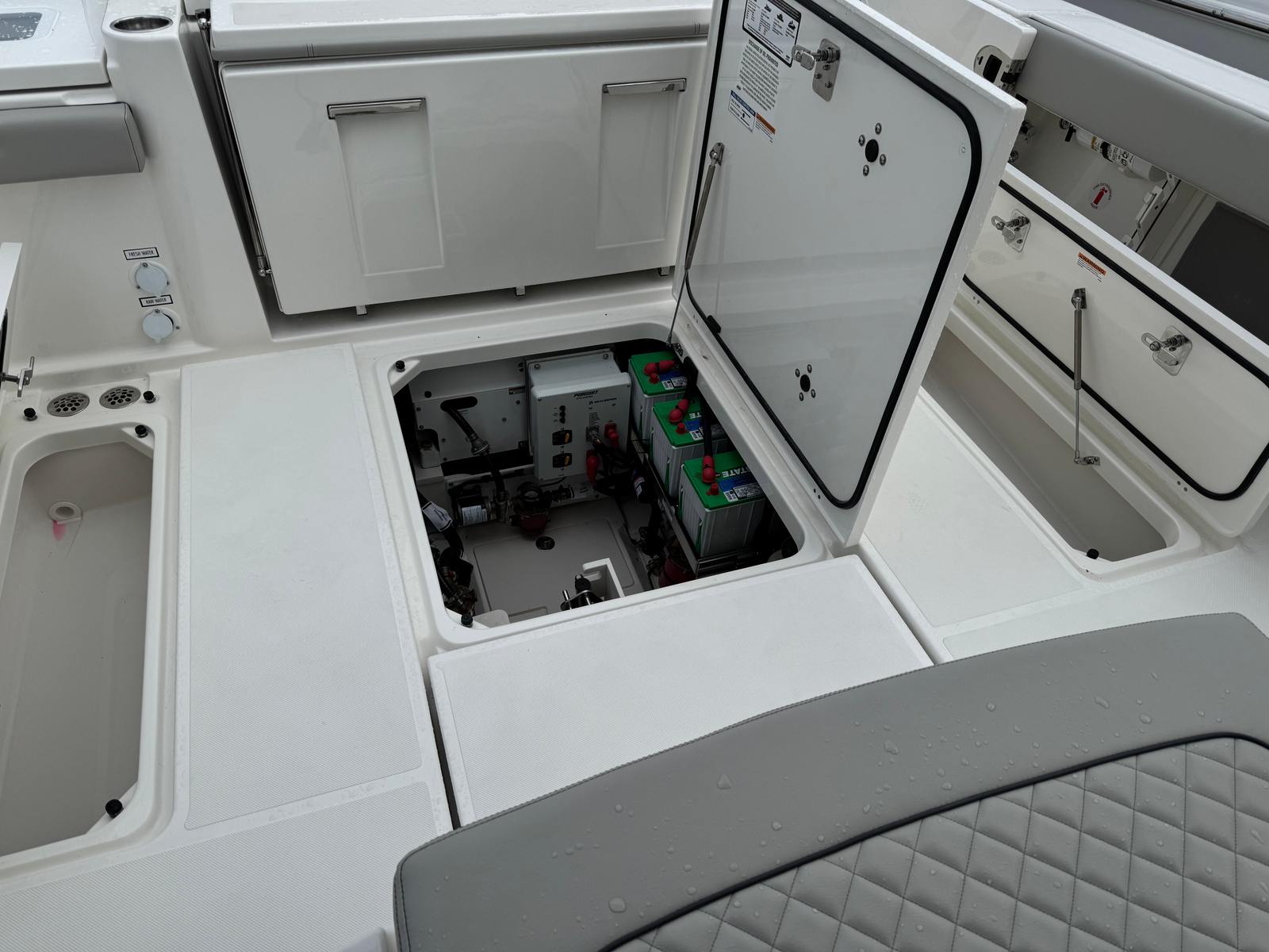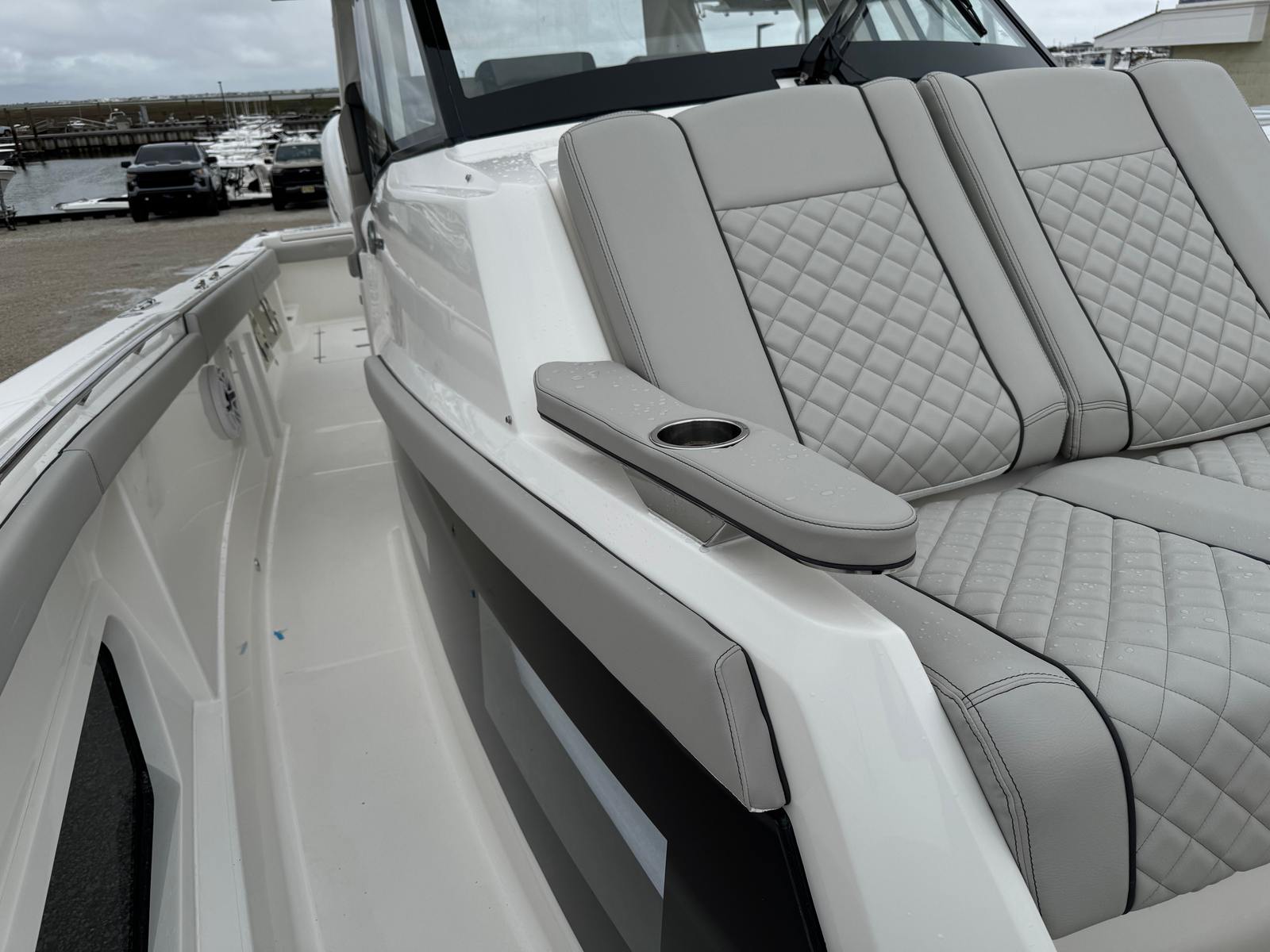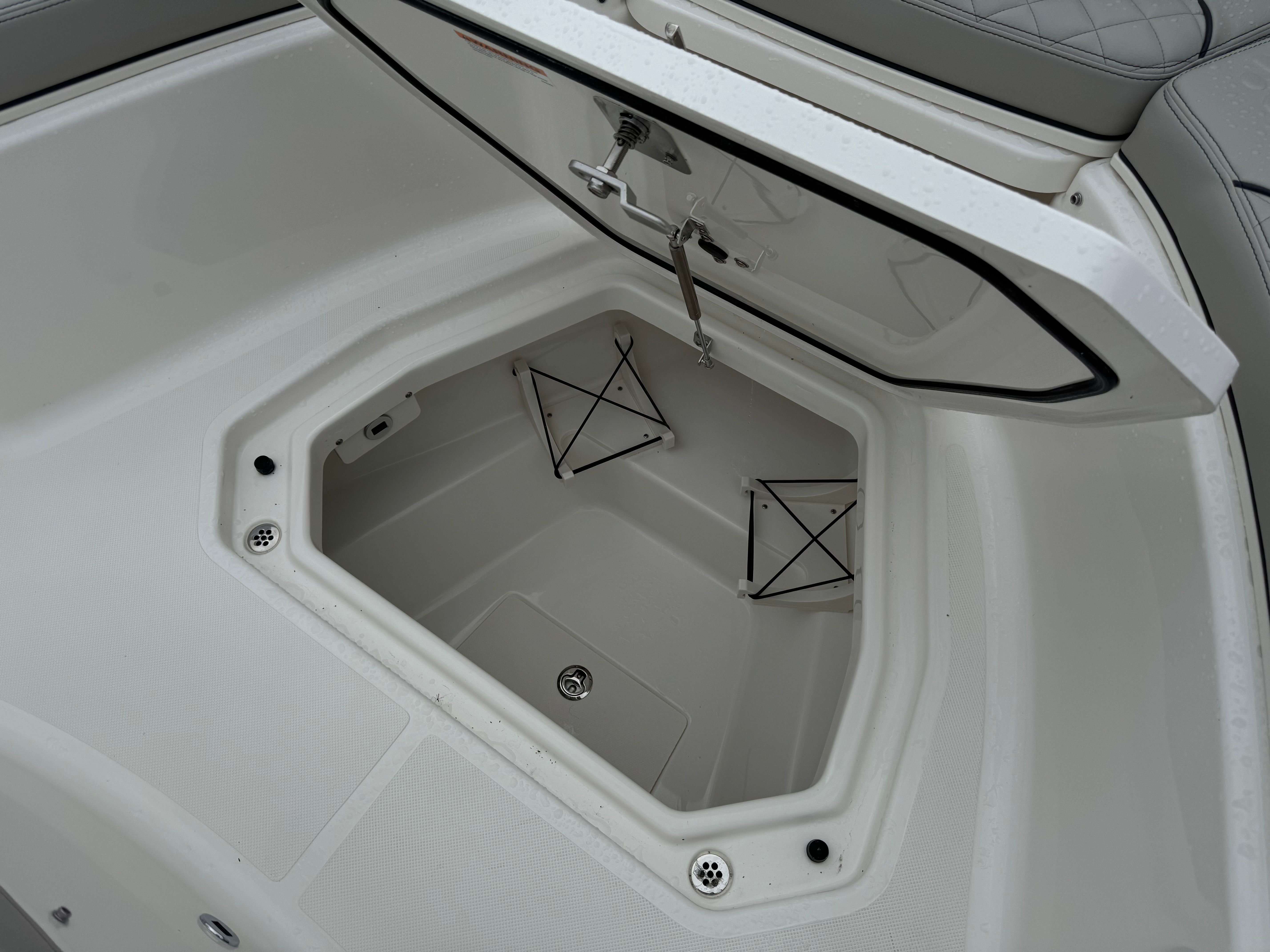 Practicality is at the heart of the Pursuit S 378’s design. The triple engine configuration not only delivers impressive speed but also provides redundancy for added safety and reliability. The advanced navigation and camera systems make docking and tight maneuvers straightforward, even for less experienced boaters. The underwater LED lights and spotlight enhance visibility during nighttime operations, while the weather receiver keeps you informed and prepared for any changes.Storage solutions are thoughtfully integrated throughout the boat, making it easy to stow gear, tackle, and personal items. The efficient layout ensures that everything you need is within reach, so you can focus on enjoying your time on the water. The Pursuit S 378 is also designed with fuel efficiency in mind, allowing you to cover more distance without frequent stops, making it ideal for extended trips or spontaneous getaways.