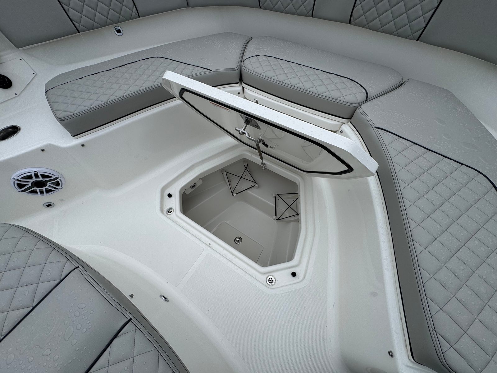 The Pursuit S 378 is loaded with premium features that set it apart from other center console boats for sale. At the helm, you will find a sophisticated electronics suite, including a GARMIN WIDESCREEN 16" DISPLAY package and a second GARMIN WIDESCREEN 16" DISPLAY for enhanced navigation and control. The Garmin Radar Open Array GMR Fantom 54 ensures you have the latest radar technology at your fingertips, while the SiriusXM Receiver for Weather (subscription required) keeps you informed of changing conditions.For added safety and convenience, the Garmin GC-14 Rear Facing Camera provides clear visibility behind the boat, making docking and maneuvering easier than ever. The underwater LED lights (Sea Blaze X2 Spectrum, four in total) create a stunning visual effect and enhance nighttime visibility, while the ACR RCL-100 LED spotlight with remote control at the helm ensures you can illuminate your surroundings with ease.Entertainment is taken to the next level with the premium stereo upgrade, featuring M6 Sport Speakers and a subwoofer with full spectrum backlighting, all custom-tuned with an 8-channel DSP amp. The system is controlled via the multifunction displays, and a Sirius receiver is included (with a three-month subscription), so you can enjoy your favorite music and channels while on the water.Aesthetically, the Pursuit S 378 boasts a sleek black bootstripe and a fresh white hardtop liner, adding to its modern and sophisticated appearance. Every detail is crafted to enhance both form and function, ensuring you enjoy every moment aboard.