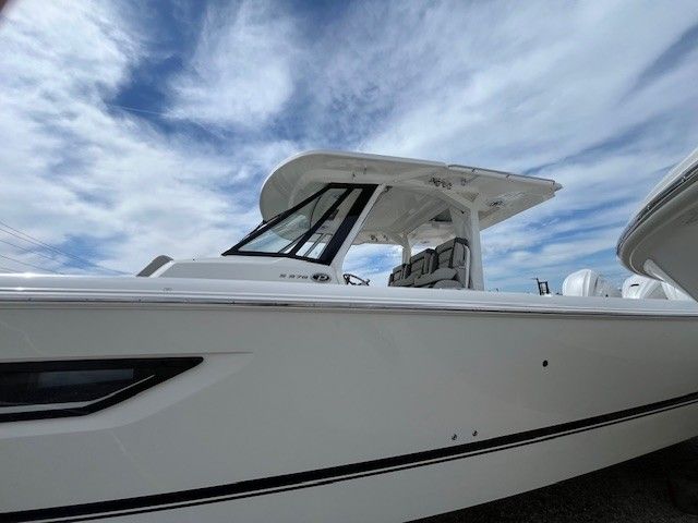 The 2025 Pursuit S 378 is a new, state-of-the-art center console boat that measures just over 40 feet in length. This model is renowned for its sleek lines, robust construction, and attention to detail, making it a top contender among luxury center console boats for sale. The Pursuit S 378 is built for those who appreciate both performance and comfort, offering ample space for entertaining, fishing, or simply relaxing with family and friends. Its modern design and advanced features ensure that every outing is memorable, whether you are cruising along the coast or heading offshore for adventure.