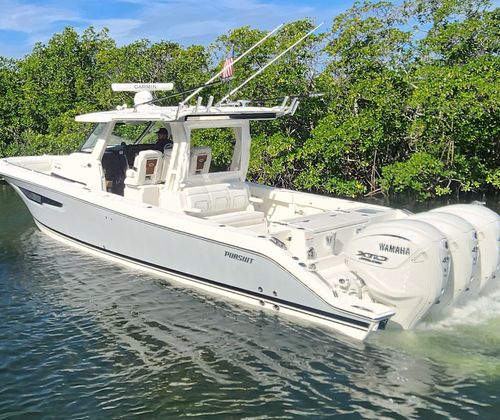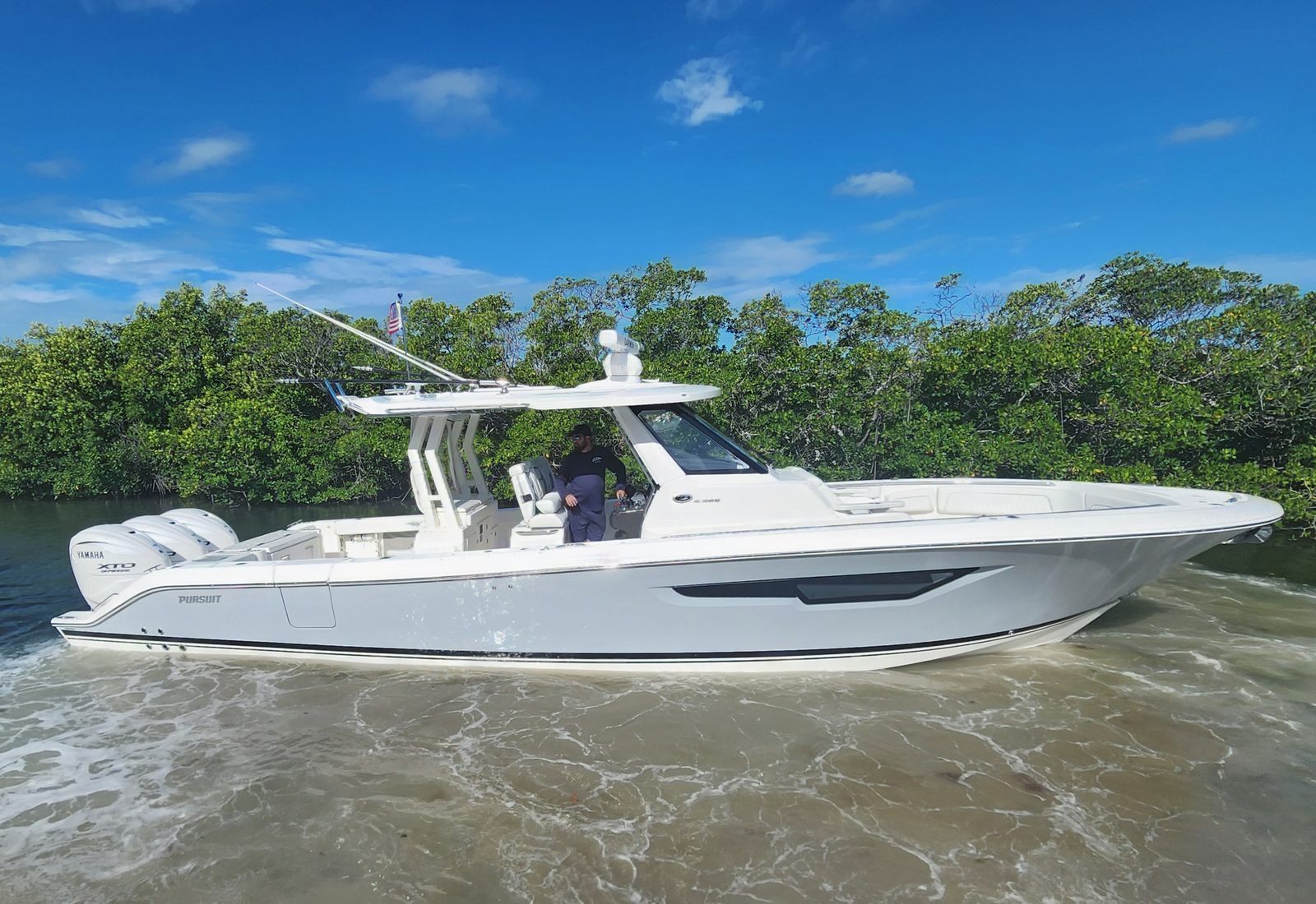 Owning the Pursuit S 388 Center Console means embracing a lifestyle of fun, relaxation, and adventure. The spacious layout ensures everyone has room to move, socialize, and unwind, whether you’re hosting a sunset cruise or heading out for a day of water sports. The premium upholstery and climate-controlled cockpit create a luxurious environment, while the advanced sunshade systems offer protection and comfort in any weather. With its powerful triple engines, you’ll experience thrilling rides and the ability to reach your favorite destinations quickly and efficiently.The S 388’s versatile design makes it perfect for both serious anglers and those who simply want to enjoy the water with family and friends. The rod holders and ample deck space cater to fishing enthusiasts, while the plush seating and sunshade options provide a resort-like atmosphere for relaxation. This Center Console boat for sale is more than just a vessel—it’s your ticket to unforgettable memories and endless fun on the water.