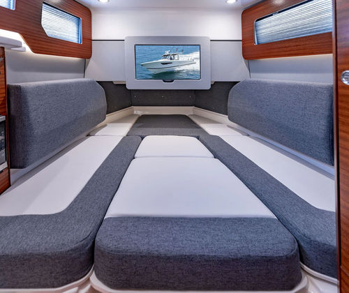 Beyond its recreational appeal, the Pursuit S 388 offers a range of practical benefits that make ownership a breeze. The spacious deck and smart storage solutions ensure you have plenty of room for gear, supplies, and personal items, keeping everything organized and easily accessible. Docking is simplified by the boat’s responsive handling and maneuverability, allowing you to navigate tight spaces with ease. The efficient engine setup not only delivers impressive performance but also helps optimize fuel usage, making longer trips more economical.The integrated cockpit air conditioning and windshield defogger vent add a layer of convenience, ensuring clear visibility and comfort in varying weather conditions. The retractable sunshade and stowable bow sunshade provide flexible options for sun protection, allowing you to adapt to changing conditions throughout the day. Whether you’re planning a weekend getaway or a quick afternoon escape, the S 388 is equipped to handle all your boating needs with style and efficiency.