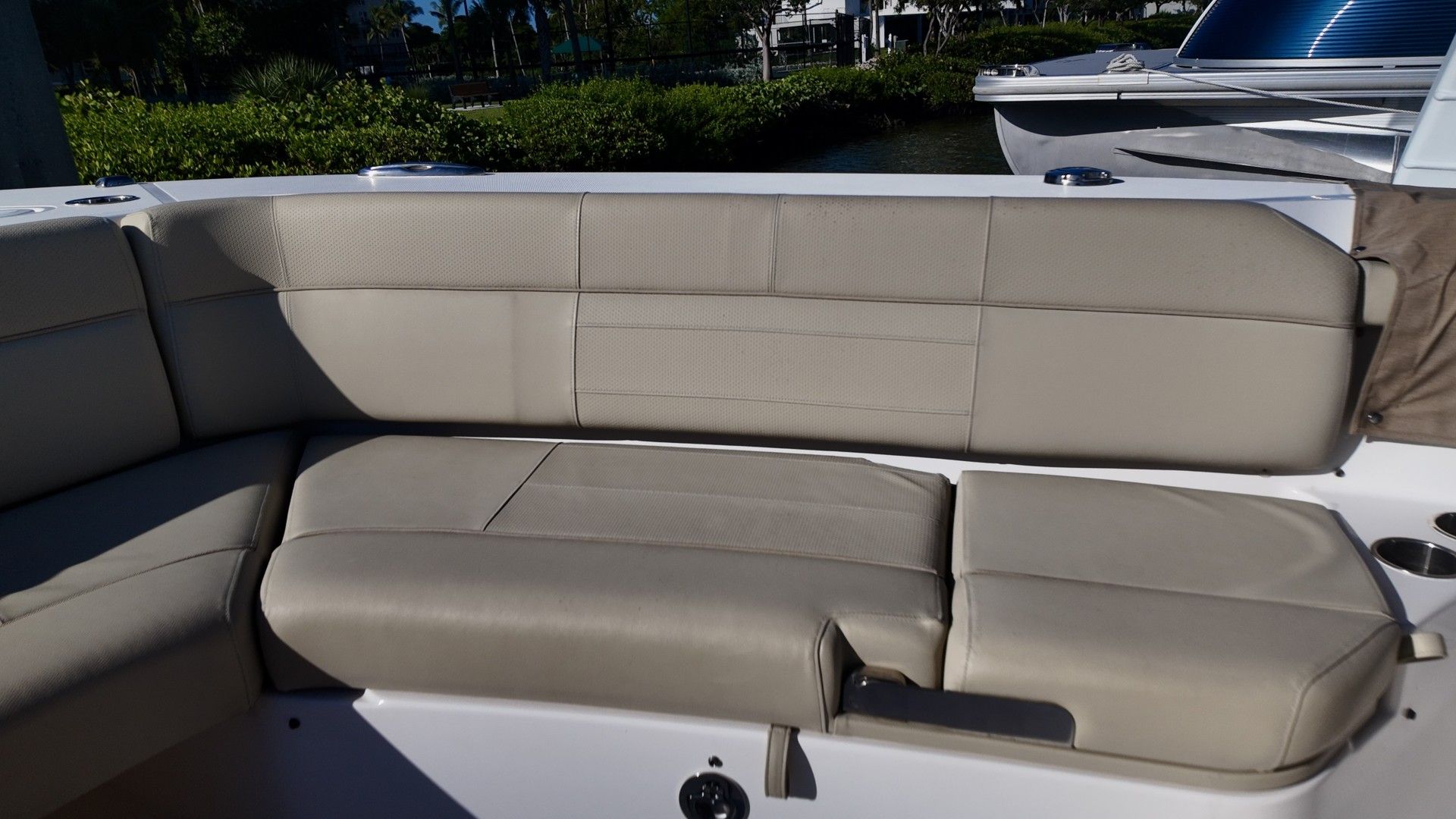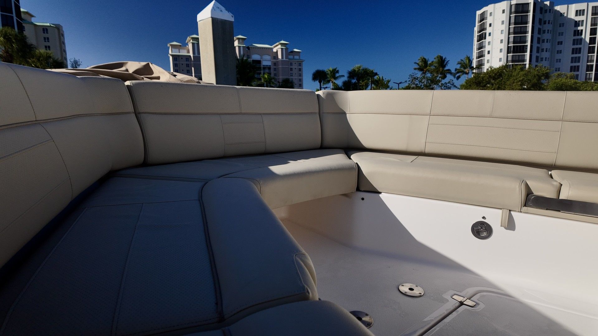 Powering the Pursuit S 408 are three high-performance engines, delivering a combined 1,050 horsepower. With only 223 engine hours, these motors promise reliability and plenty of life left for future adventures. The triple-engine configuration provides outstanding acceleration, smooth handling, and the ability to reach impressive speeds, making this Center Console boat for sale ideal for those who crave excitement on the water. Whether you’re navigating choppy seas or cruising at high speeds, the S 408’s advanced hull design and powerful engines ensure a stable, comfortable ride every time.