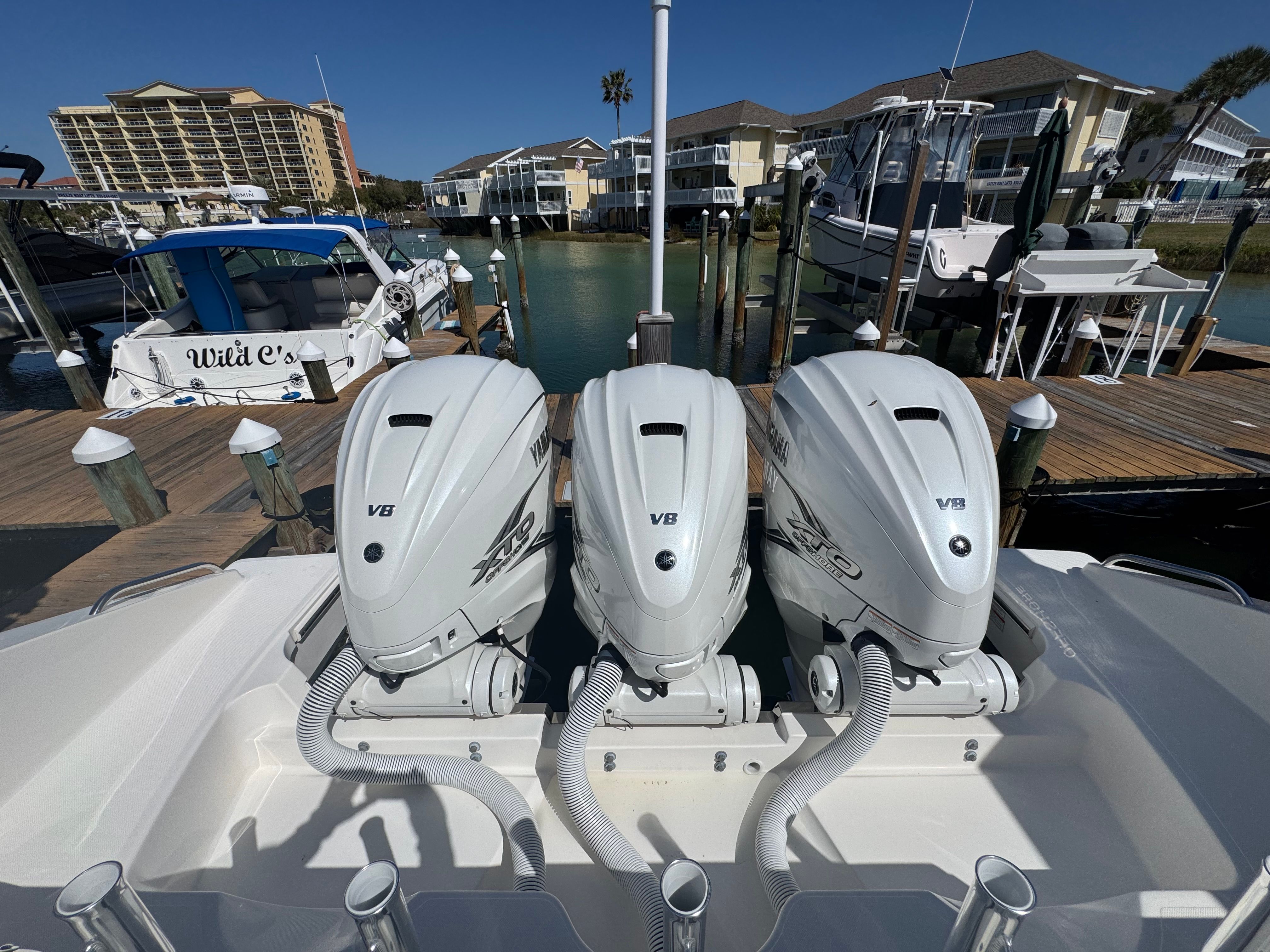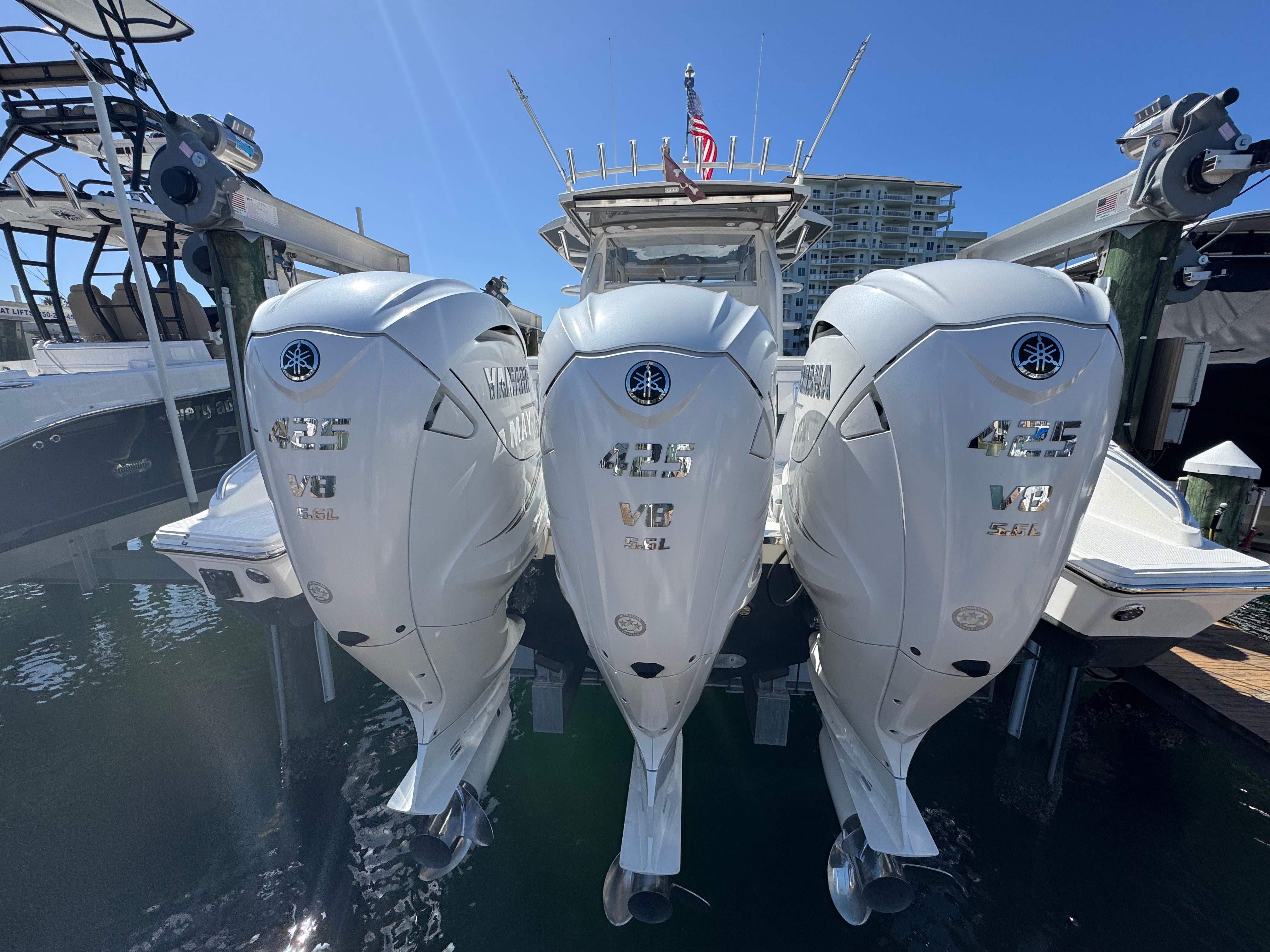 One owner gem! Bought new here at Legendary Marine and serviced here exclusively! Always lift kept this beautiful white hull S 408 is detailed every 2 weeks and waxed every 3 months! She is beautiful with her Triple Yamaha XF 425's in Pearlescent White with less than 325hrs! Loaded with options this one is priced to sell!