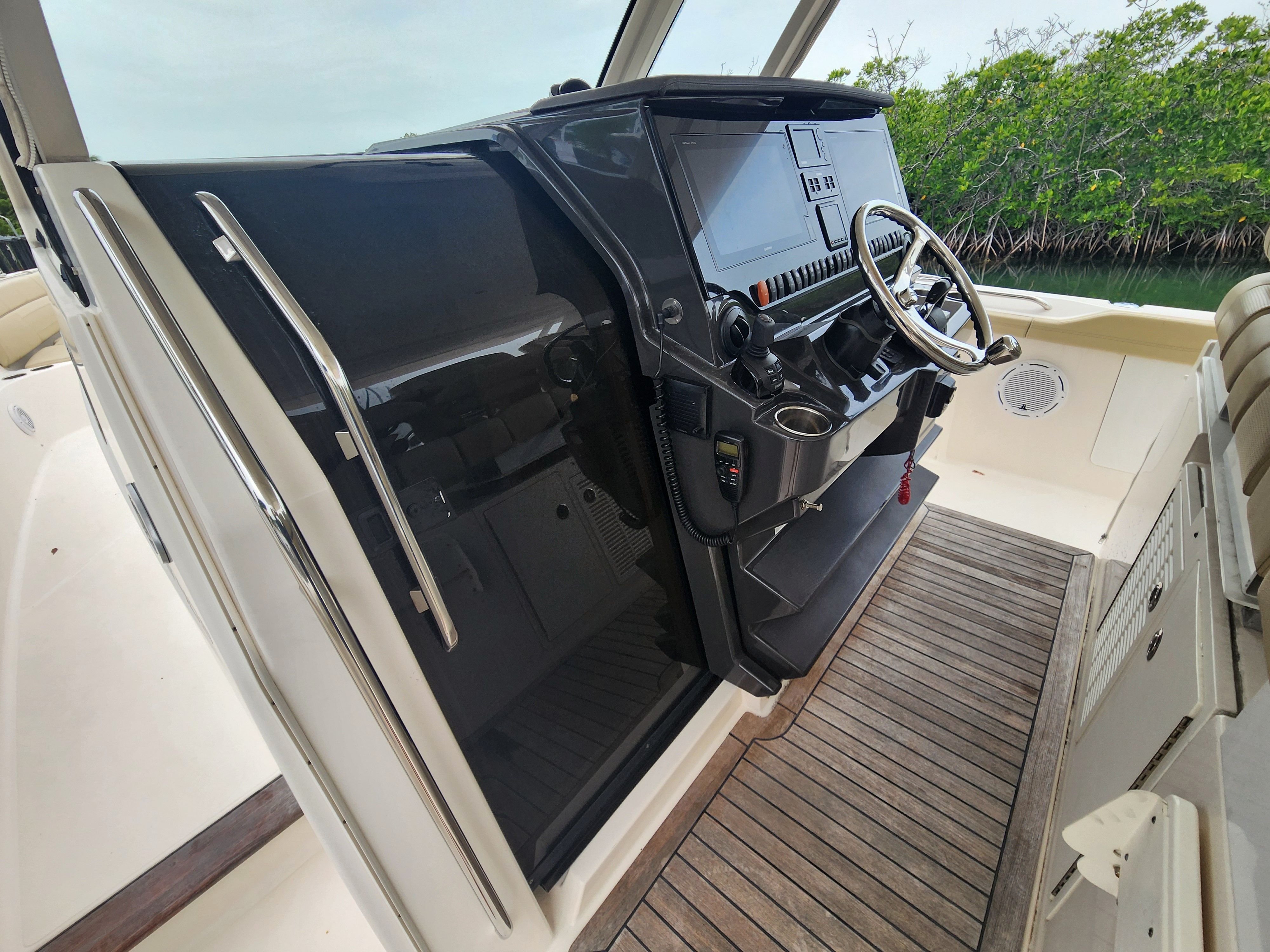 The 2017 Pursuit S 408 Center Console shines in a variety of scenarios, making it a versatile choice for any boating enthusiast. For families, it offers a safe and spacious platform for day trips, picnics, and water sports. Anglers will appreciate the ample deck space and easy access to all areas of the boat, making it perfect for both inshore and offshore fishing adventures. Those seeking luxury and relaxation will find the Pursuit S 408 equally appealing, with its comfortable seating and stylish design creating the perfect setting for sunset cruises, weekend getaways, or entertaining friends. No matter how you choose to enjoy your time on the water, this Pursuit boat for sale is equipped to deliver exceptional experiences.
