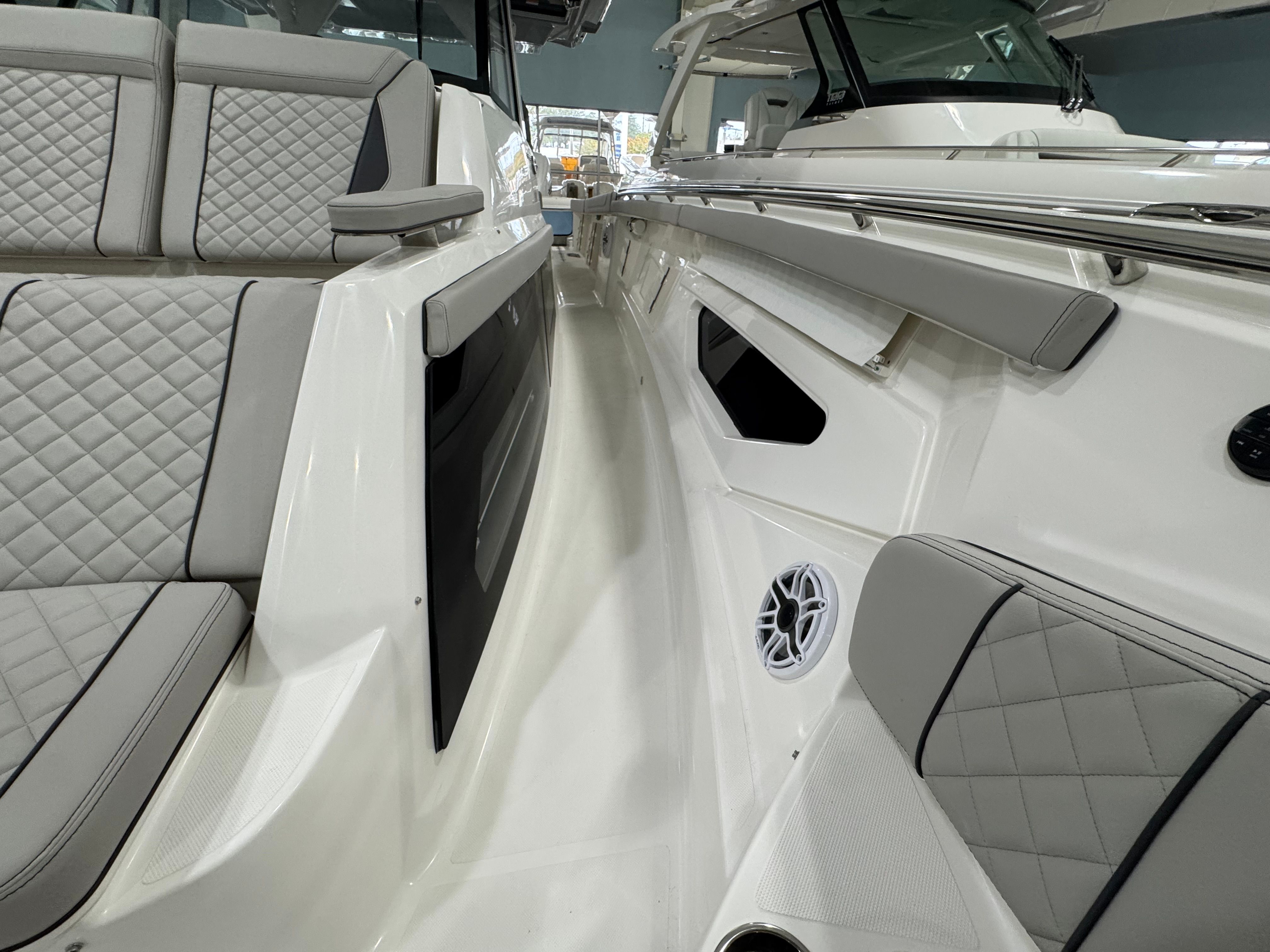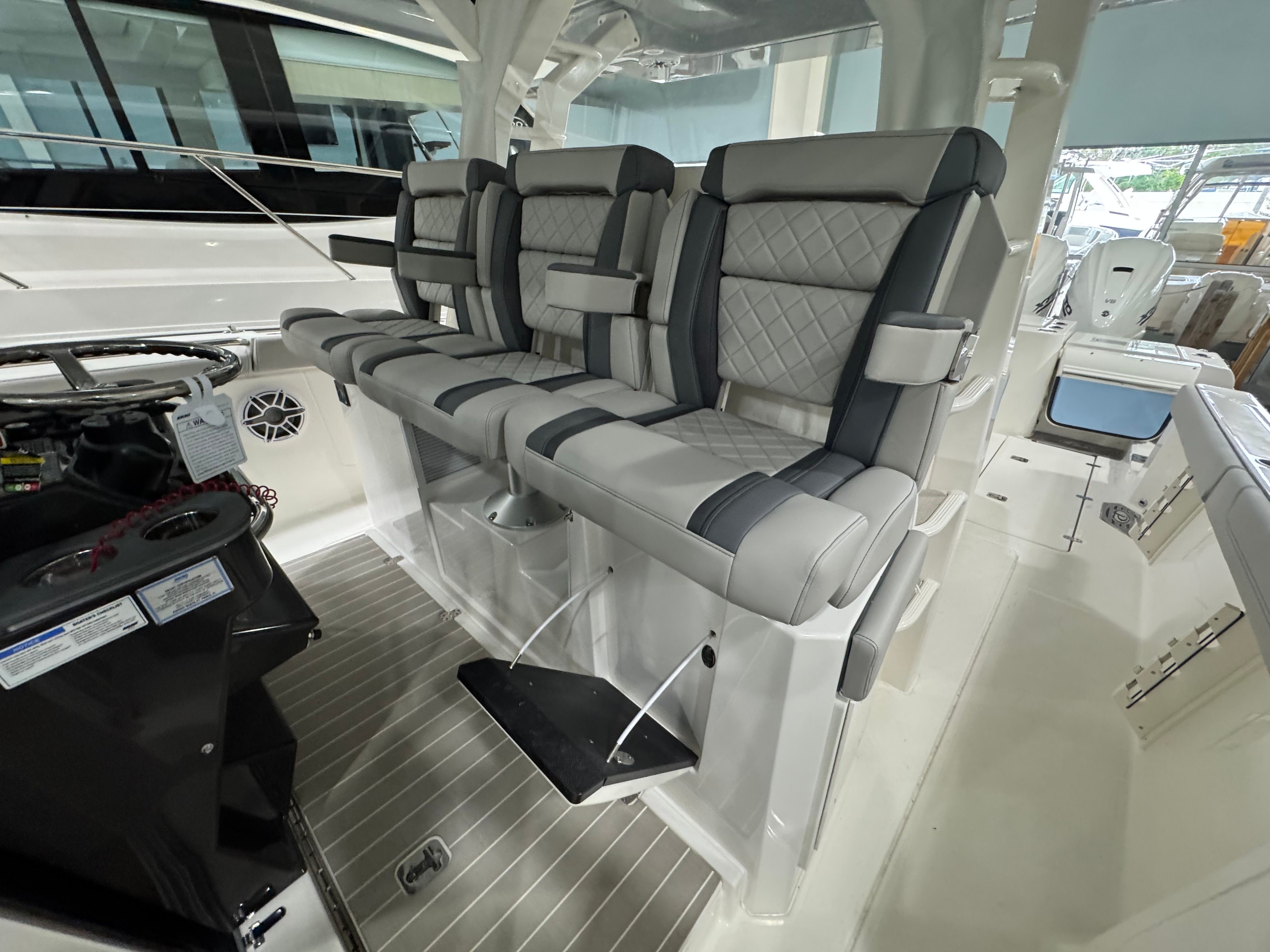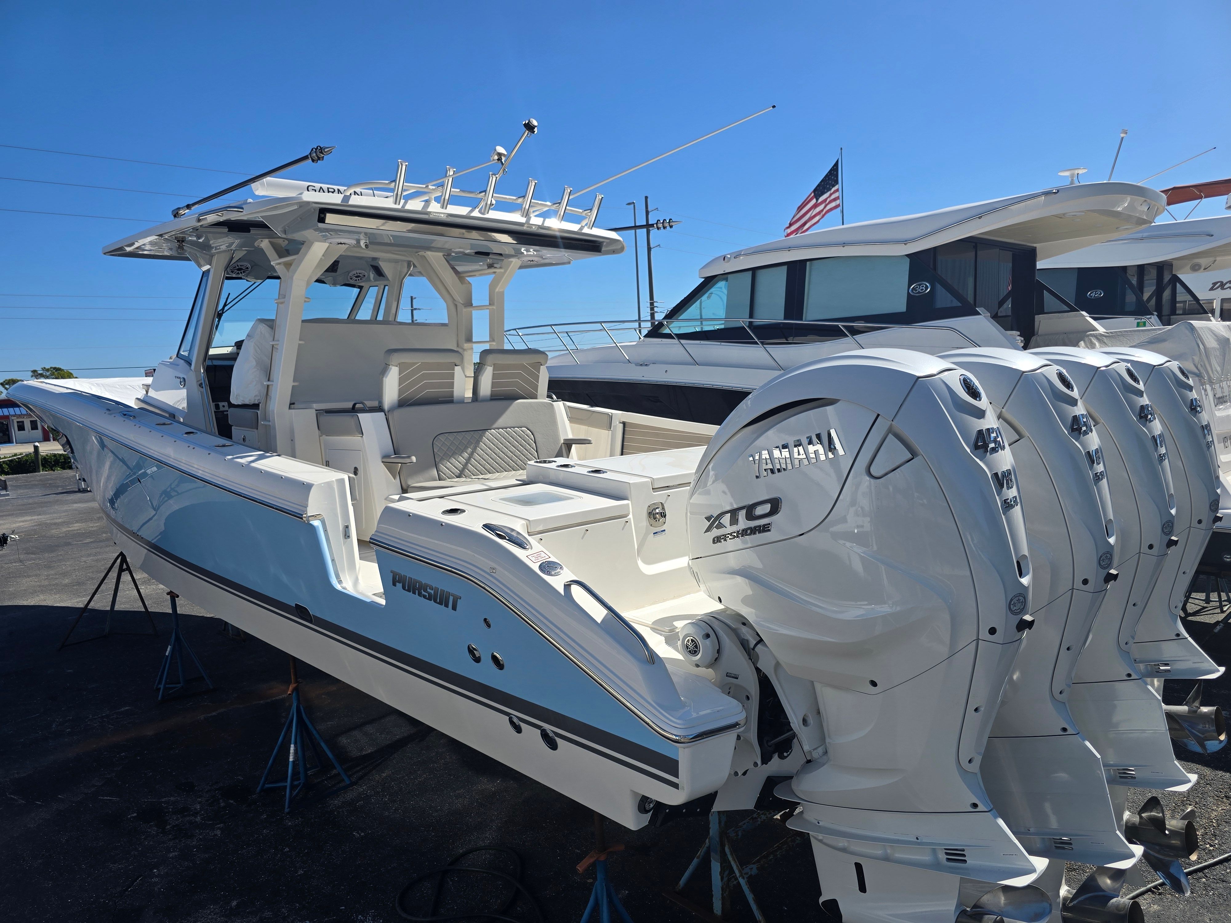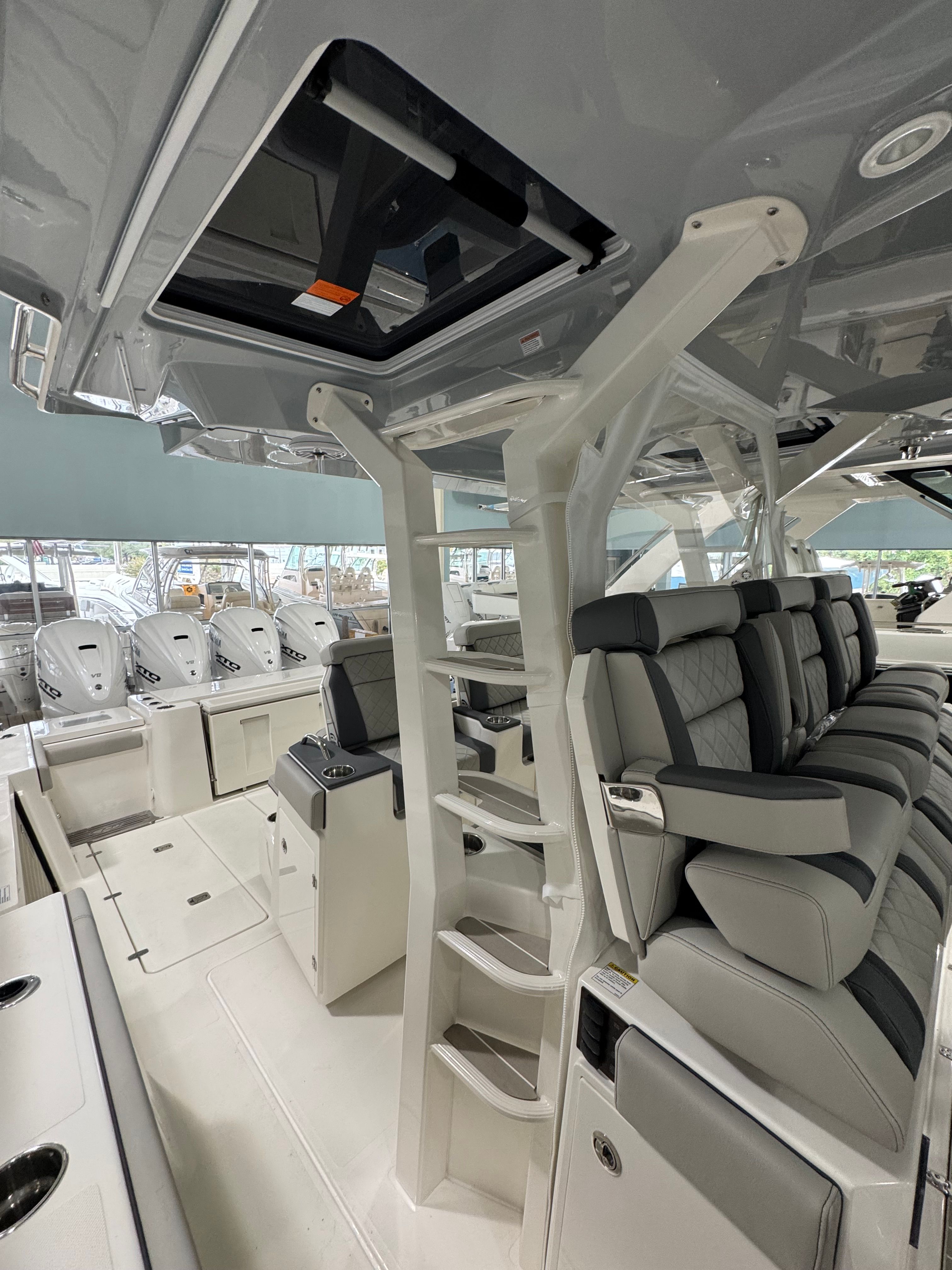 Power is at the heart of the Pursuit S 428, thanks to its four high-performance engines delivering a combined 1800 horsepower. This formidable setup ensures you have all the speed and agility you need for offshore adventures, quick getaways, or leisurely cruises along the coast. The quad-engine configuration provides smooth acceleration, impressive top speeds, and exceptional handling, making every journey both thrilling and safe. Whether you’re navigating choppy waters or gliding across a glassy bay, the S 428’s performance capabilities set it apart from other center console boats for sale.