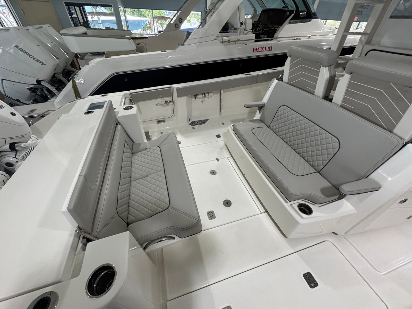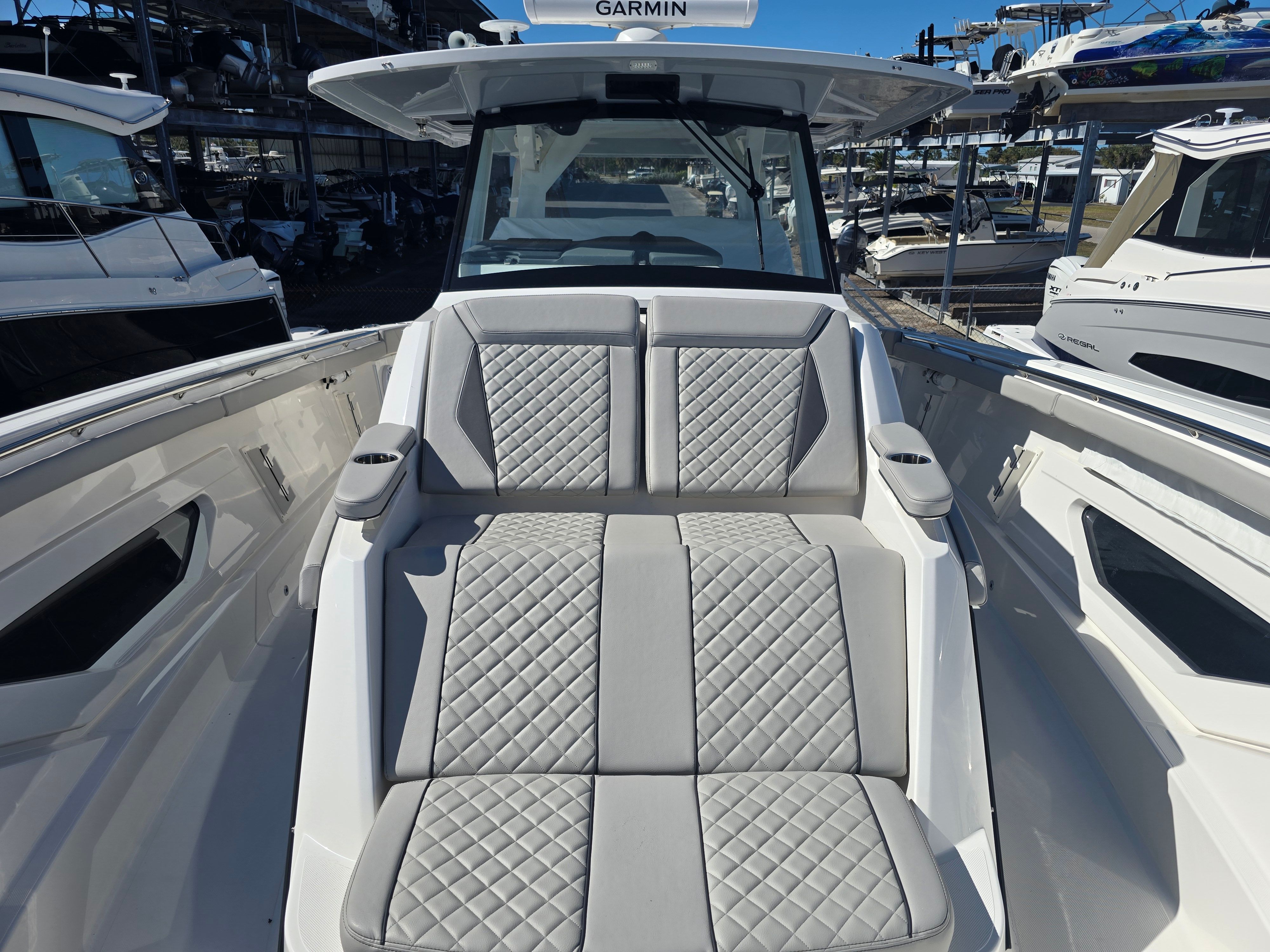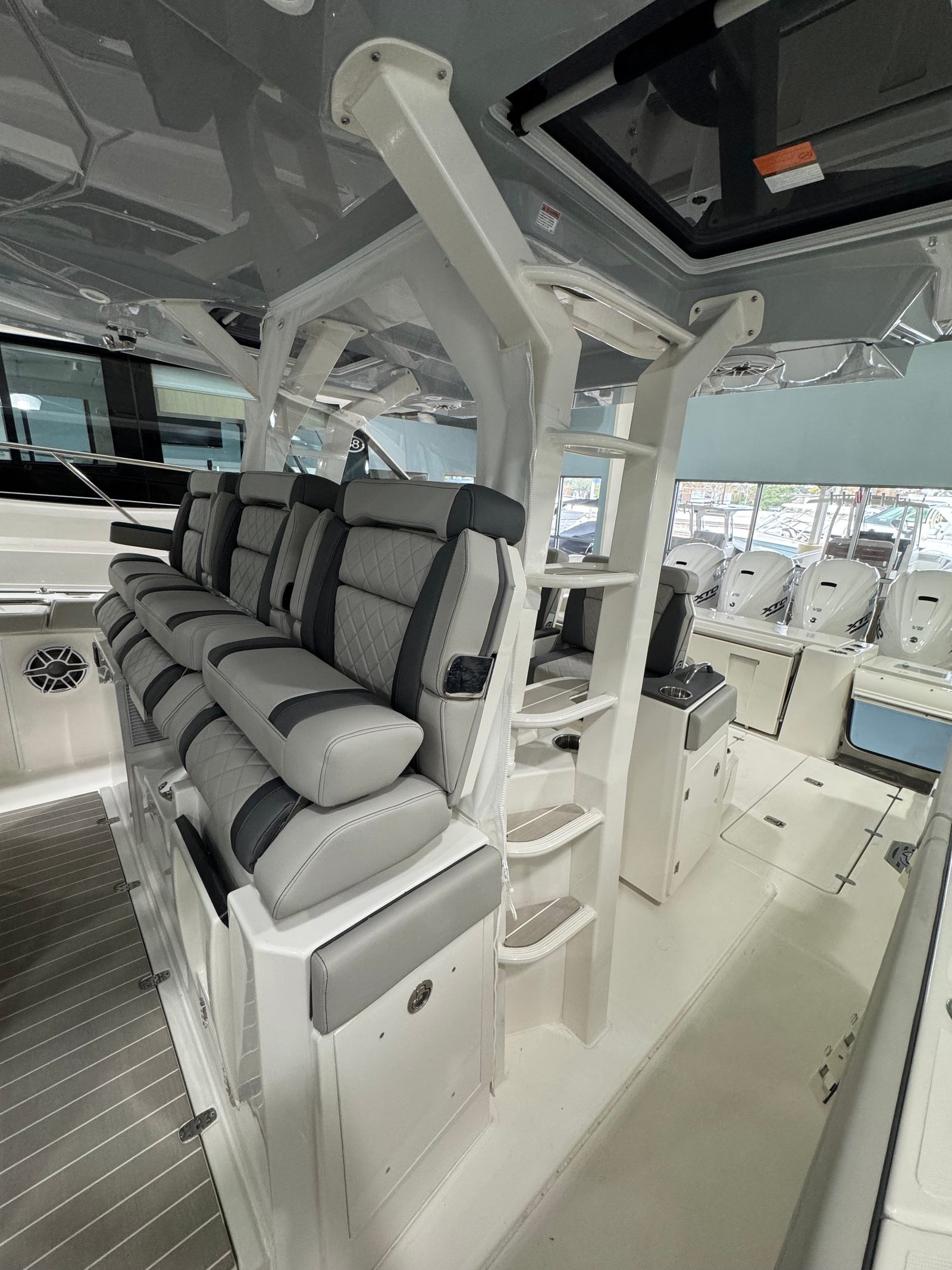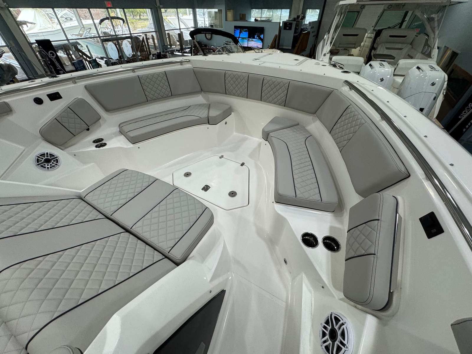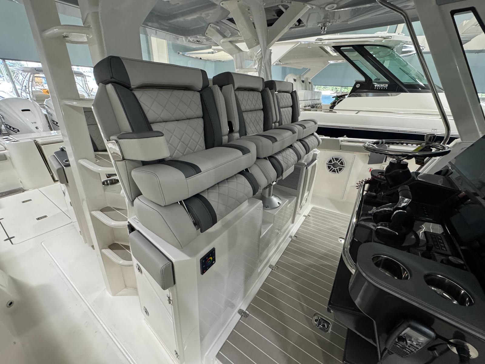 Power is at the heart of the Pursuit S 428, thanks to its four high-performance engines delivering a combined 1800 horsepower. This formidable setup ensures you have all the speed and agility you need for offshore adventures, quick getaways, or leisurely cruises along the coast. The quad-engine configuration provides smooth acceleration, impressive top speeds, and exceptional handling, making every journey both thrilling and safe. Whether you’re navigating choppy waters or gliding across a glassy bay, the S 428’s performance capabilities set it apart from other center console boats for sale.