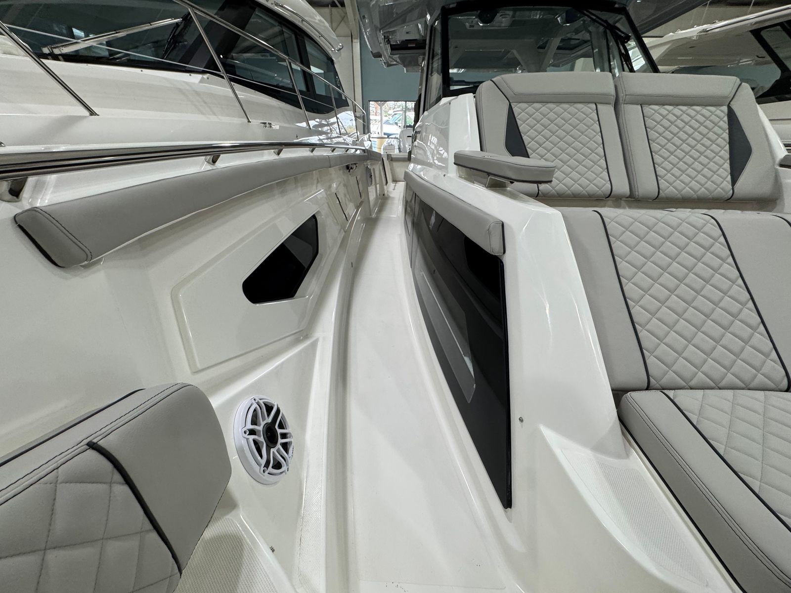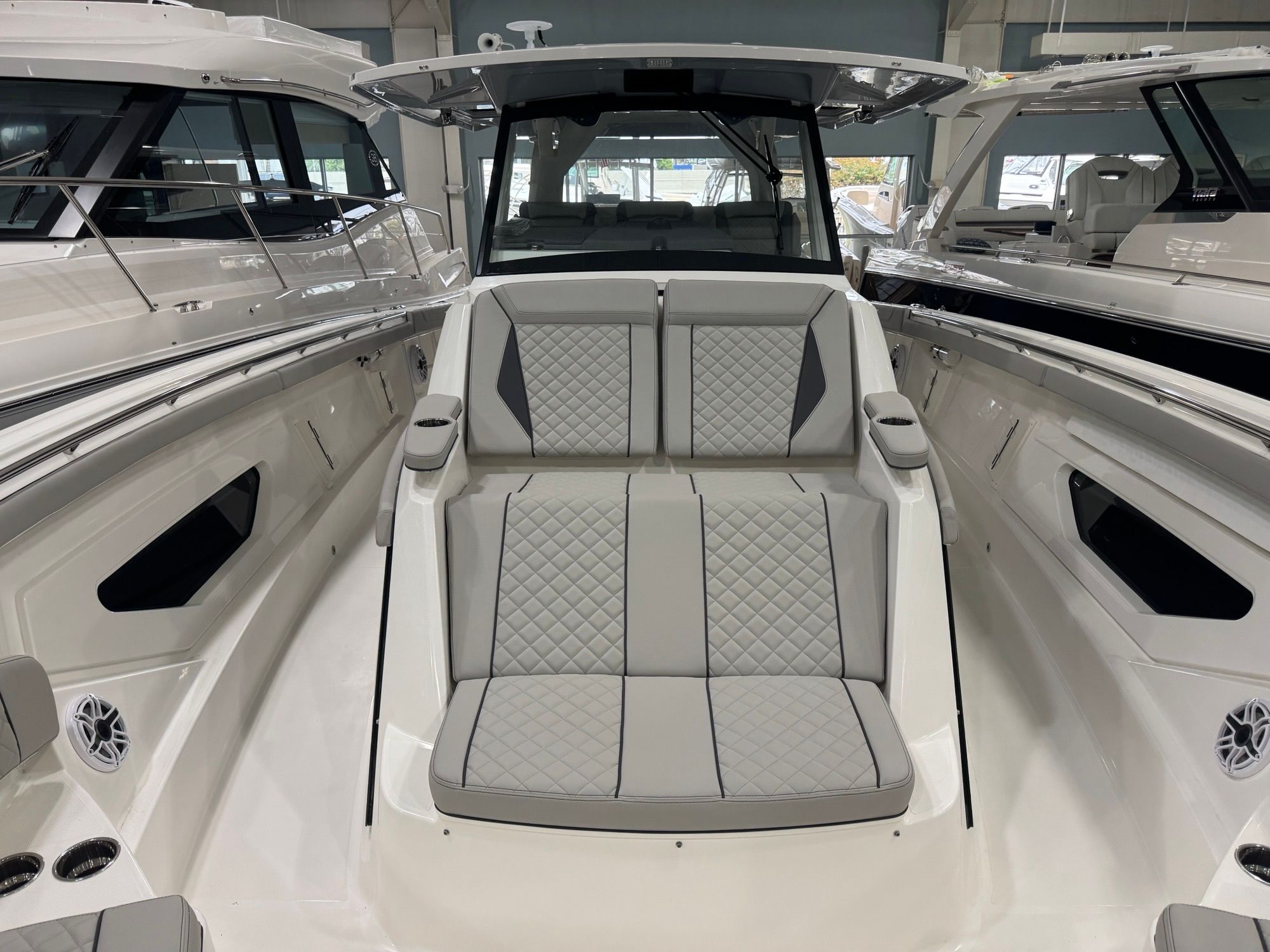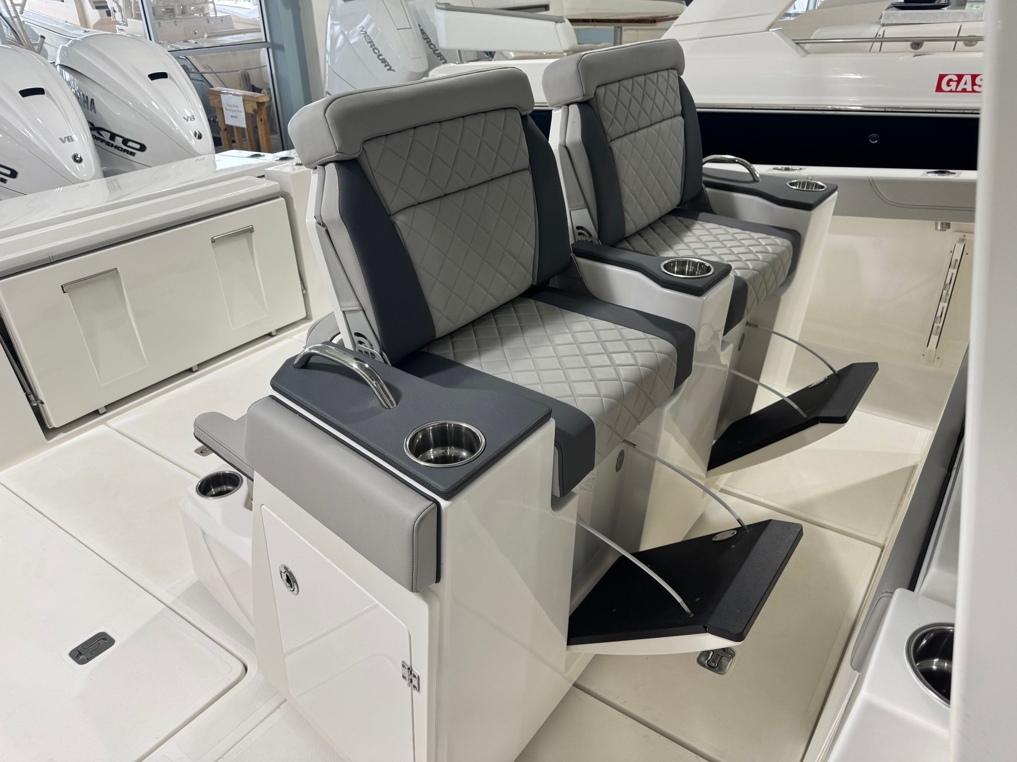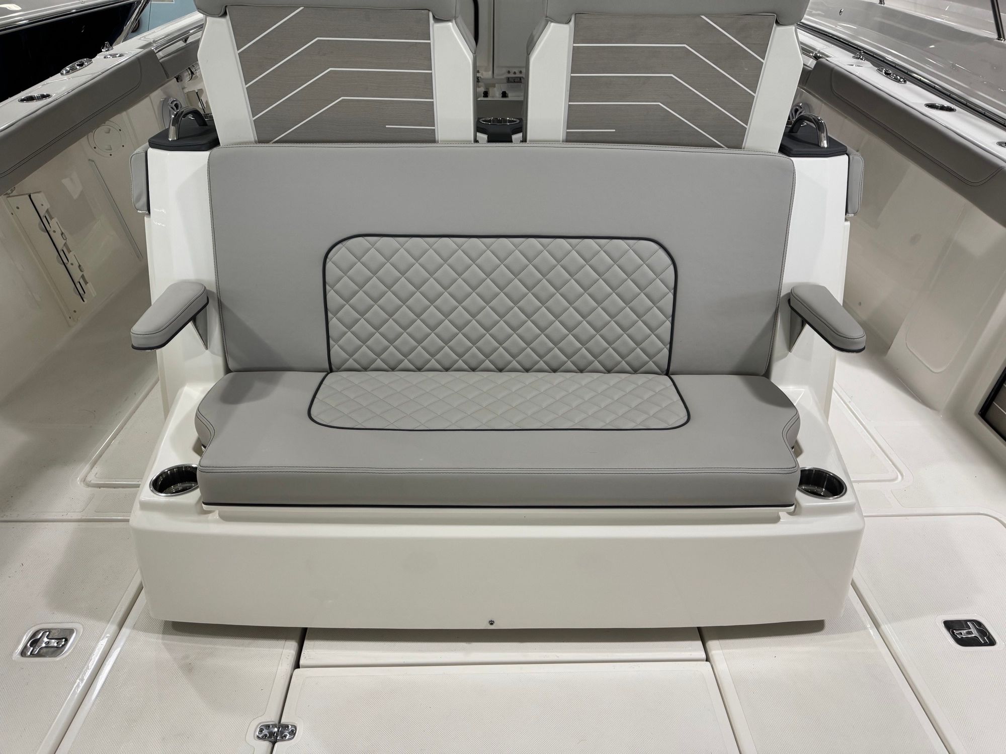 Power is at the heart of the Pursuit S 428, thanks to its four high-performance engines delivering a combined 1800 horsepower. This formidable setup ensures you have all the speed and agility you need for offshore adventures, quick getaways, or leisurely cruises along the coast. The quad-engine configuration provides smooth acceleration, impressive top speeds, and exceptional handling, making every journey both thrilling and safe. Whether you’re navigating choppy waters or gliding across a glassy bay, the S 428’s performance capabilities set it apart from other center console boats for sale.