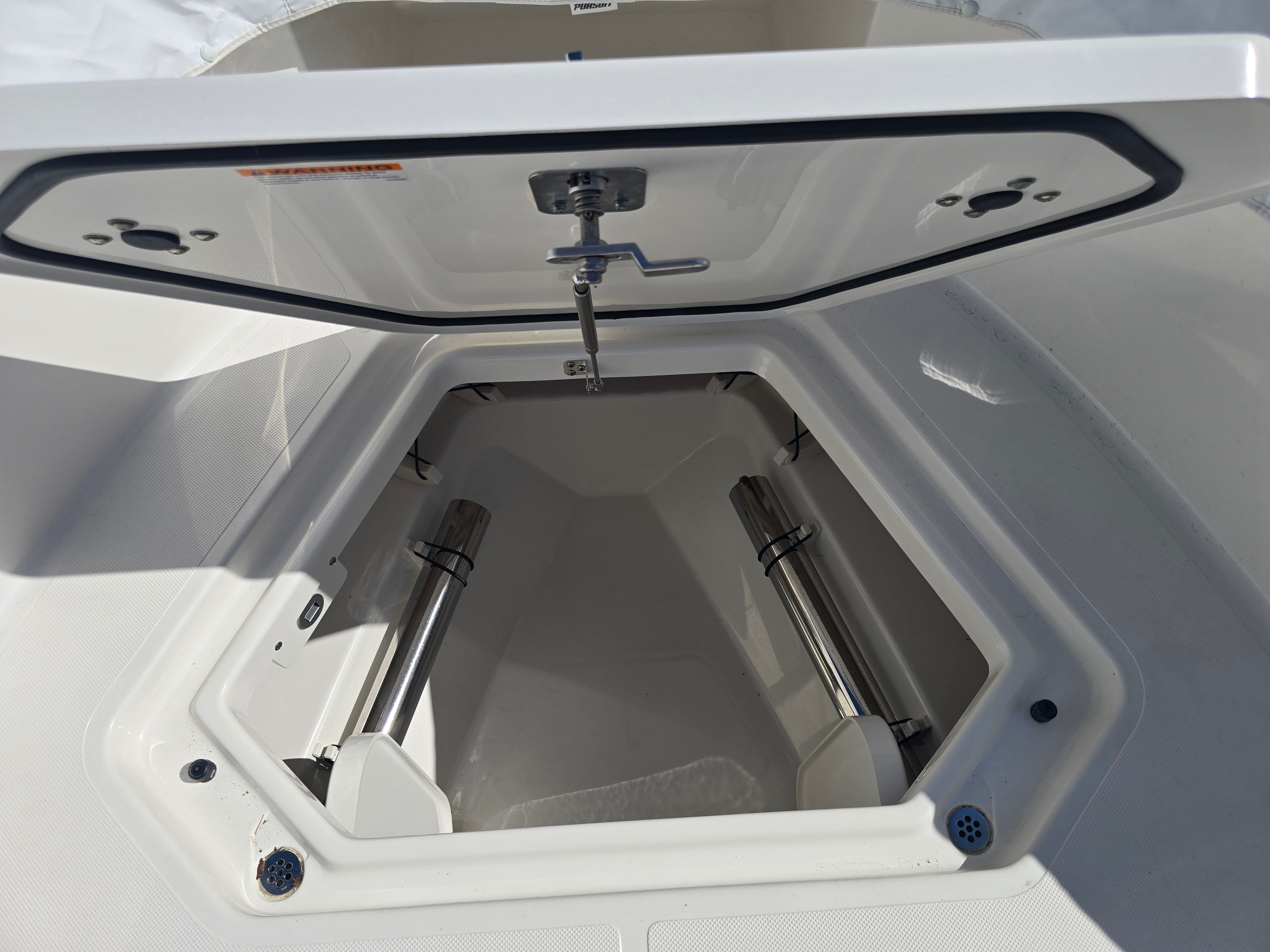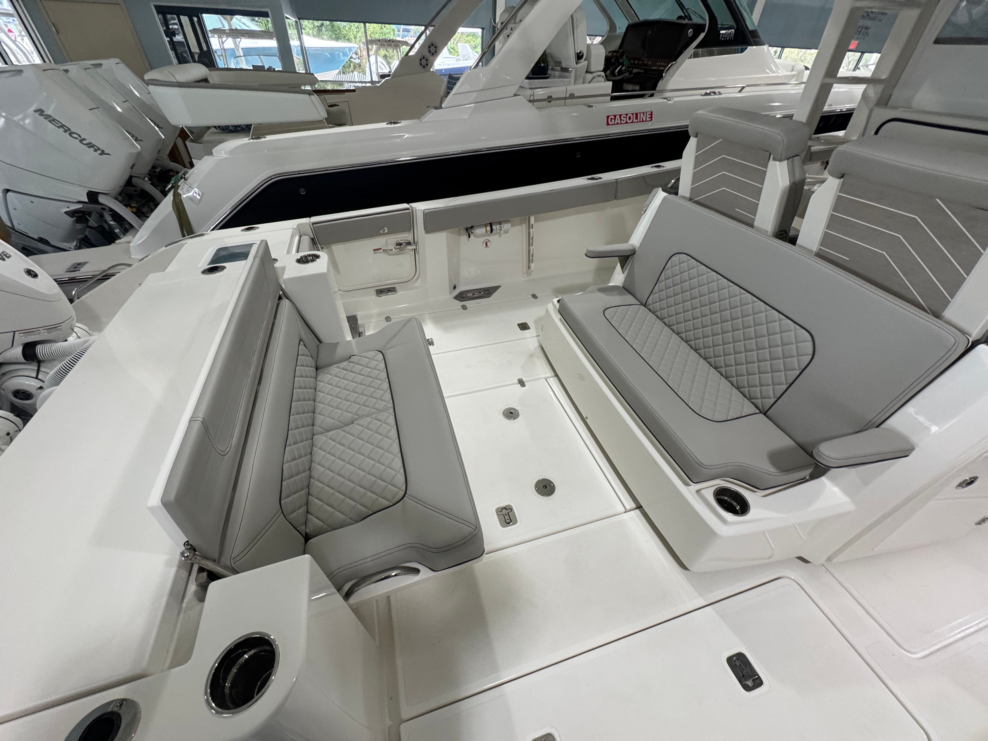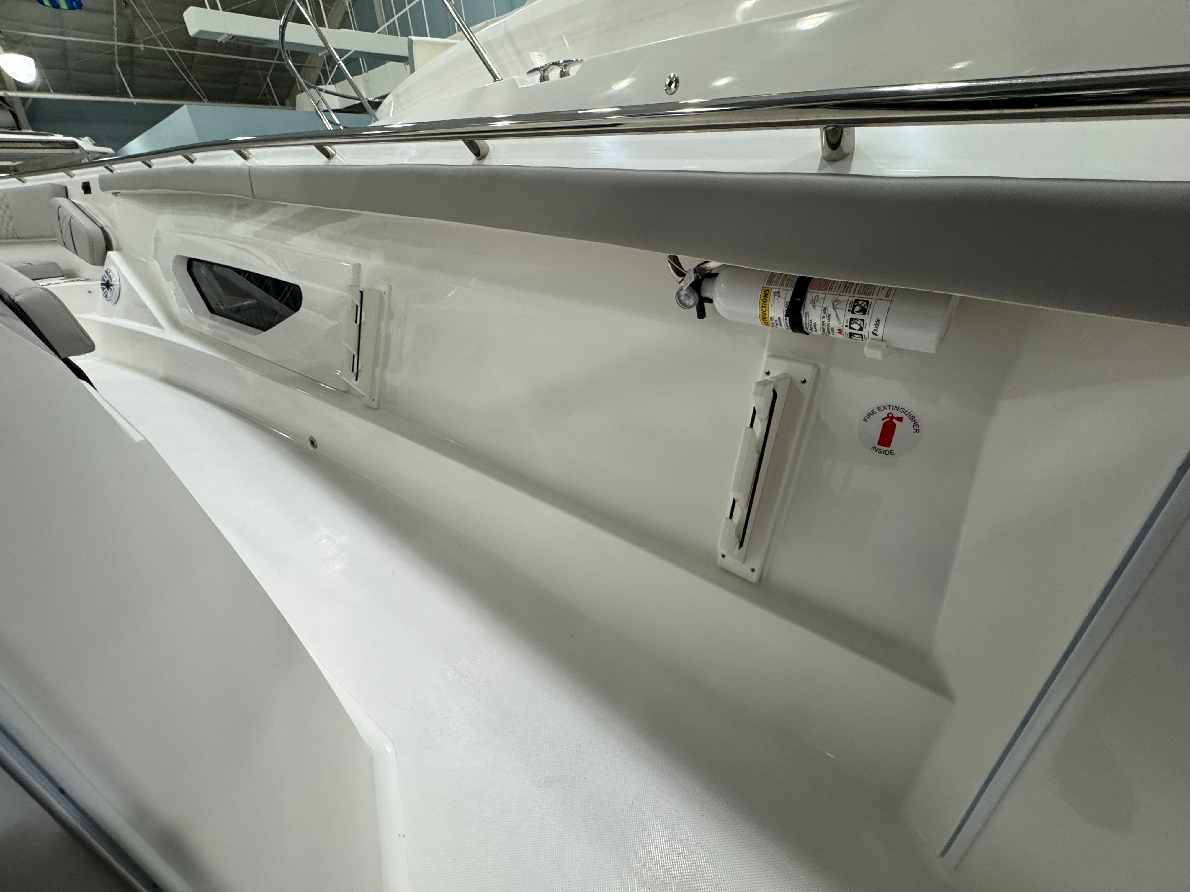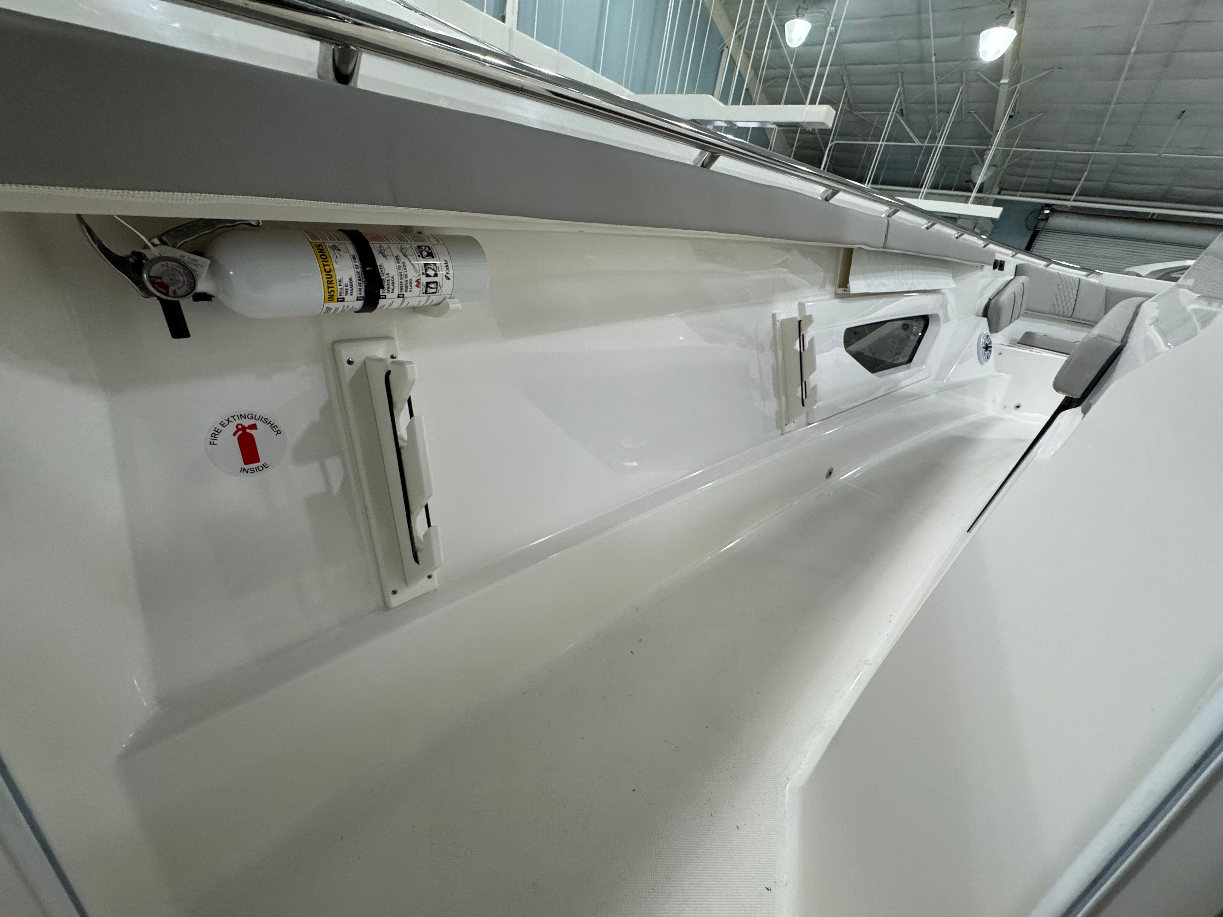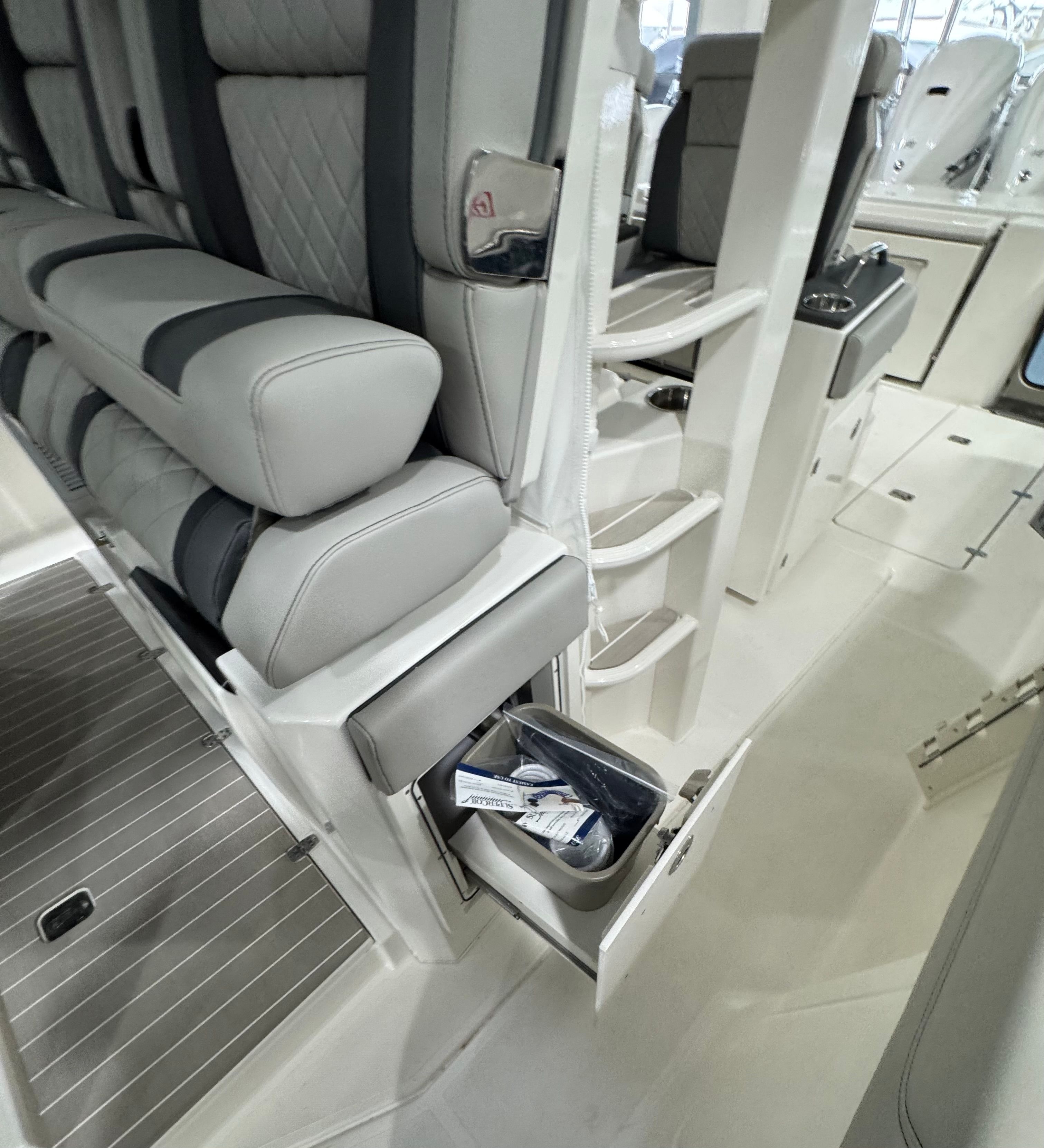 The Pursuit S 428 is packed with premium features designed to enhance your time on the water. Enjoy the comfort and convenience of an electric retractable cockpit sun shade, which provides instant relief from the sun and creates a cool, shaded area for relaxing or entertaining. The upgraded amp and speakers with zone control and Sirius satellite radio ensure you have the perfect soundtrack for every adventure, with crystal-clear audio throughout the boat.For added protection and style, the S 428 includes a White Stamoid LT helm/comp seat cover, instrument cover, and bow seating cover, keeping your boat’s interior pristine and ready for action. The 240V/60HZ cockpit air conditioning system keeps the helm and cockpit cool, even on the hottest days, while the white helm and footrest color add a touch of elegance to the command center.Fishing enthusiasts will appreciate the bolt-on hardtop rod holders (six in total), providing secure storage for your gear and easy access when the action heats up. The upgraded cockpit cooler box, now a chill box with no foam, ensures your drinks and snacks stay refreshingly cold throughout your trip. The platinum boot stripe adds a sophisticated finishing touch to the boat’s exterior, highlighting its premium status.