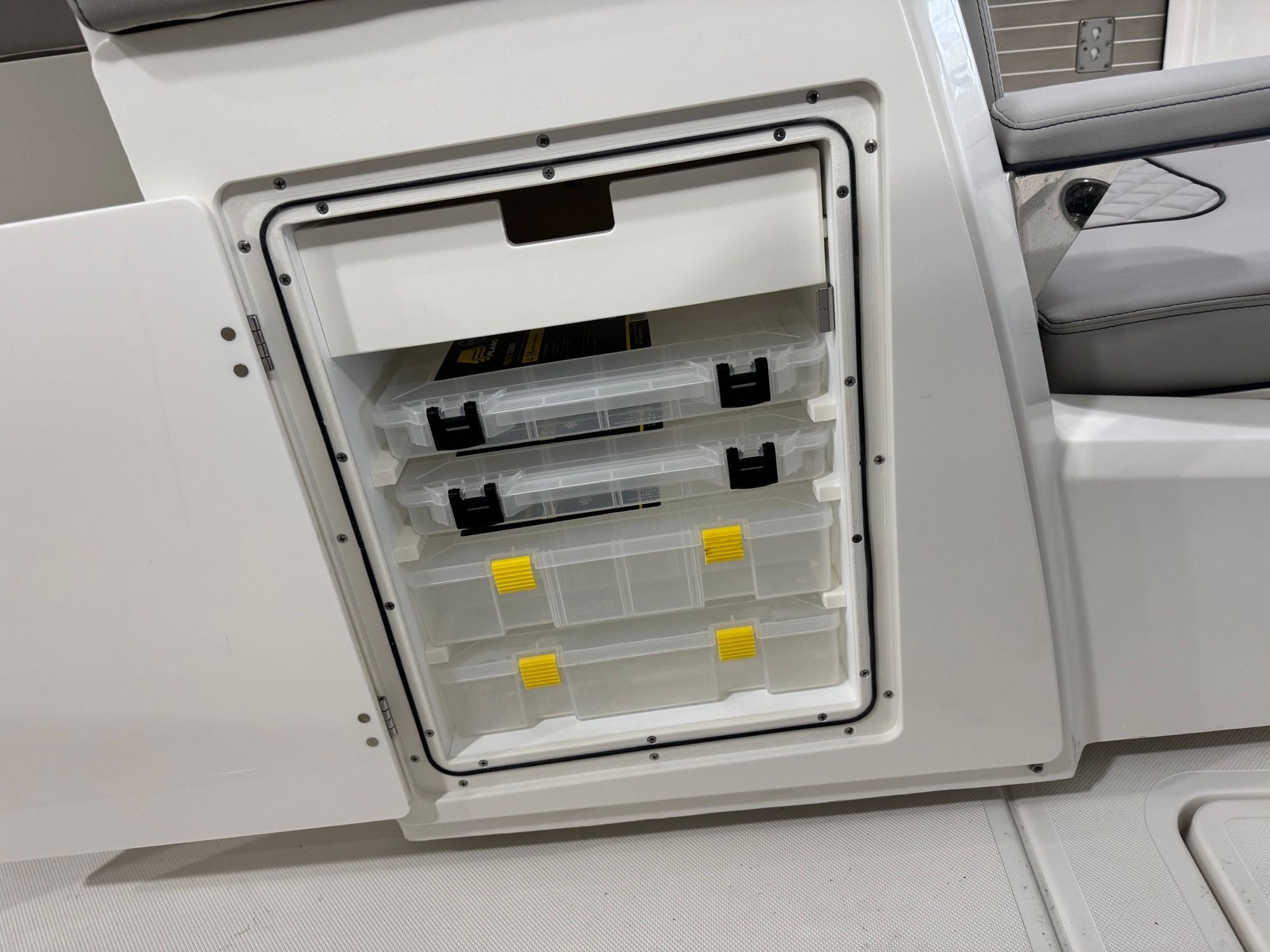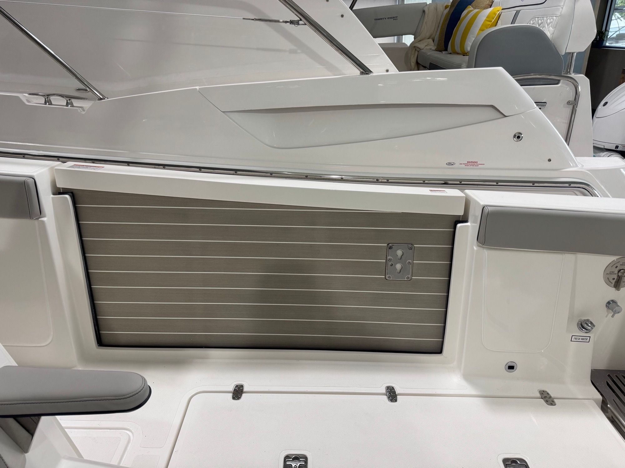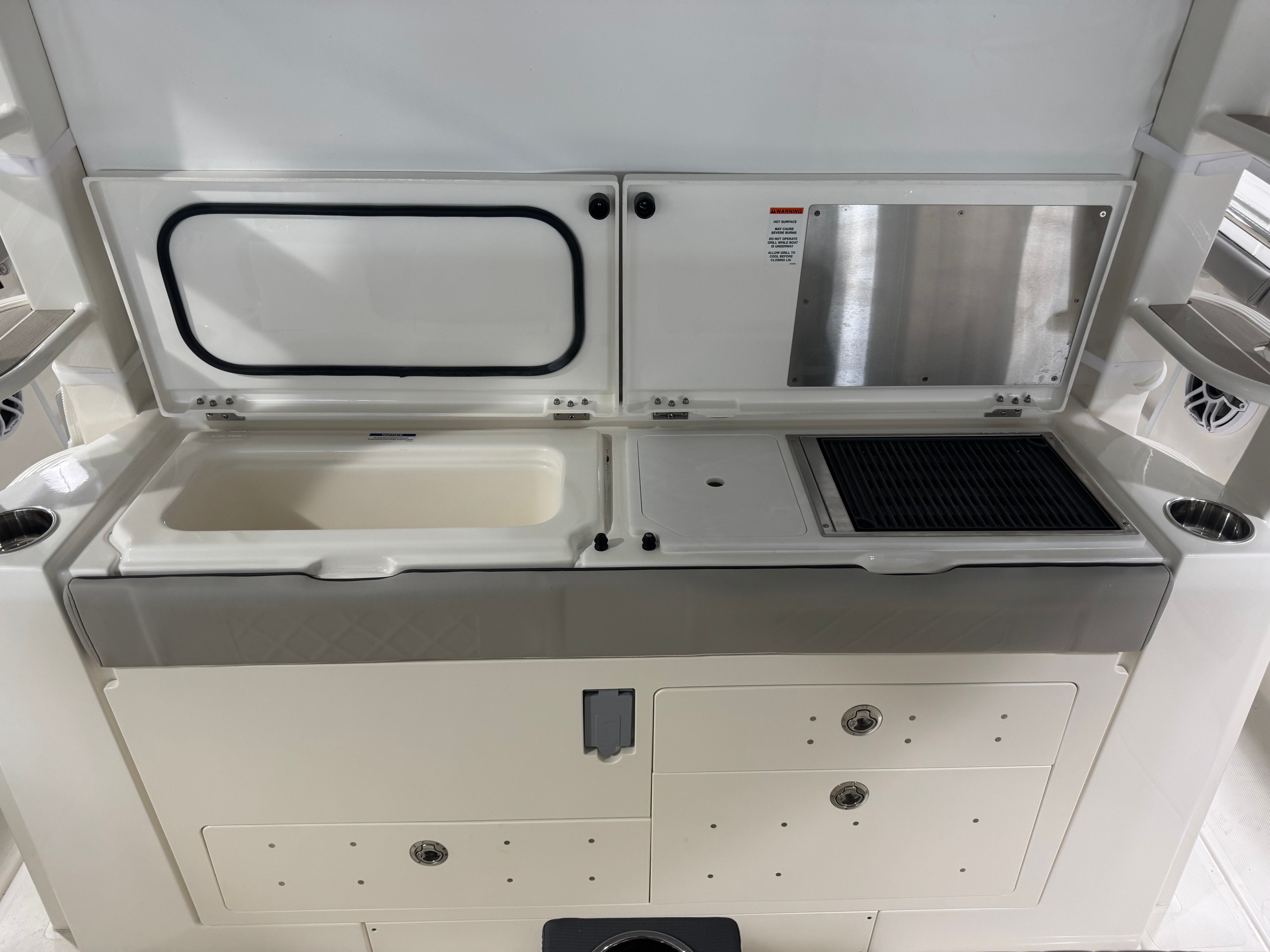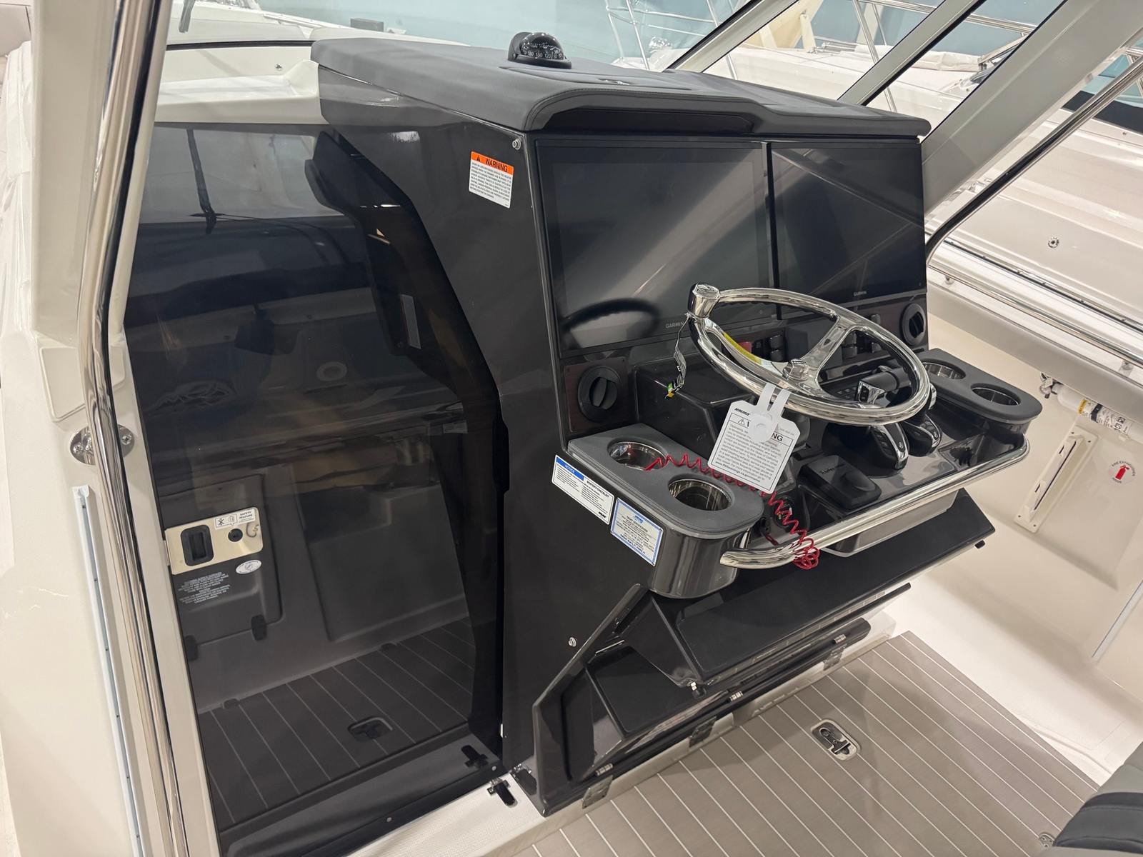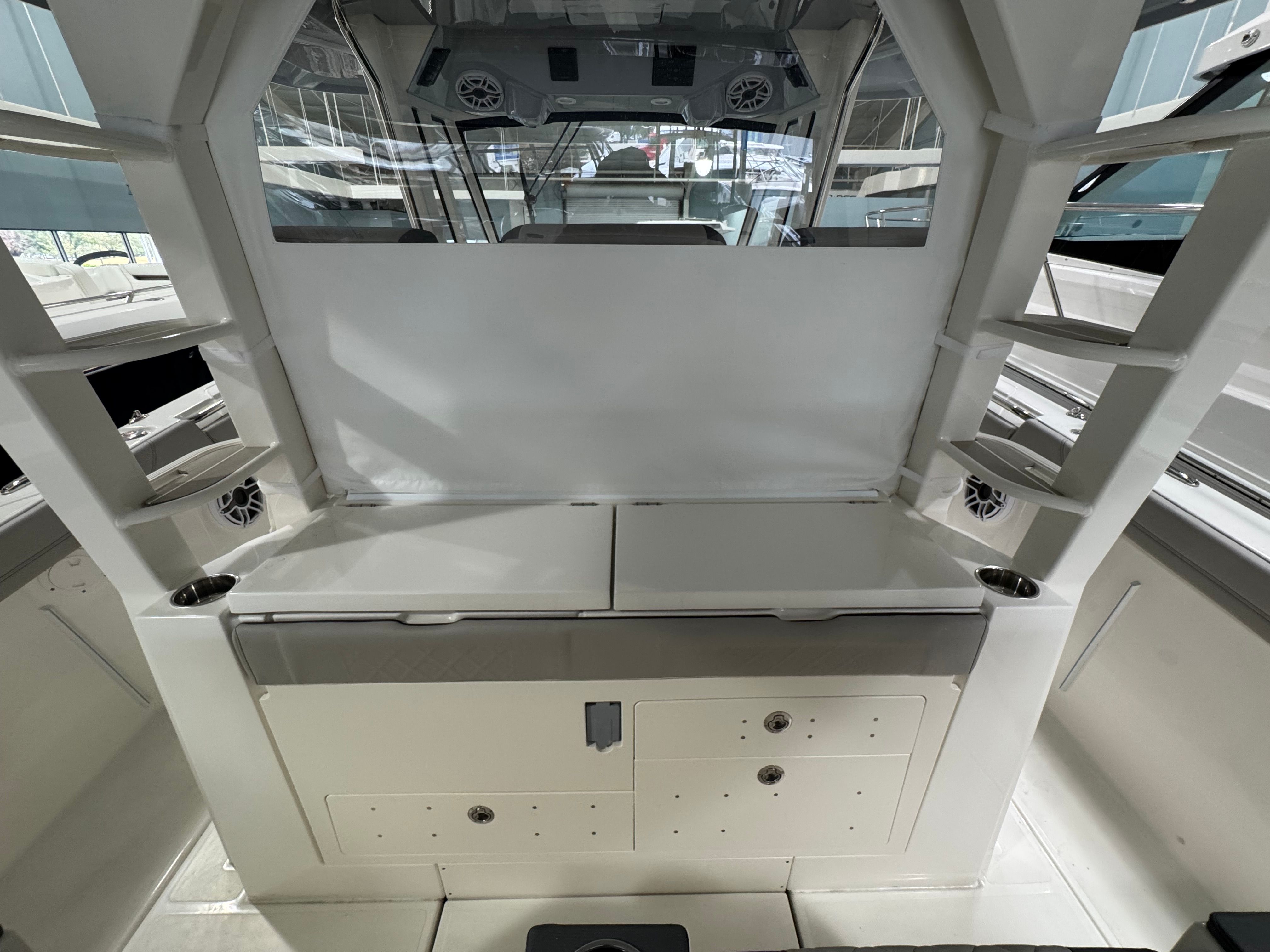 The Pursuit S 428 is packed with premium features designed to enhance your time on the water. Enjoy the comfort and convenience of an electric retractable cockpit sun shade, which provides instant relief from the sun and creates a cool, shaded area for relaxing or entertaining. The upgraded amp and speakers with zone control and Sirius satellite radio ensure you have the perfect soundtrack for every adventure, with crystal-clear audio throughout the boat.For added protection and style, the S 428 includes a White Stamoid LT helm/comp seat cover, instrument cover, and bow seating cover, keeping your boat’s interior pristine and ready for action. The 240V/60HZ cockpit air conditioning system keeps the helm and cockpit cool, even on the hottest days, while the white helm and footrest color add a touch of elegance to the command center.Fishing enthusiasts will appreciate the bolt-on hardtop rod holders (six in total), providing secure storage for your gear and easy access when the action heats up. The upgraded cockpit cooler box, now a chill box with no foam, ensures your drinks and snacks stay refreshingly cold throughout your trip. The platinum boot stripe adds a sophisticated finishing touch to the boat’s exterior, highlighting its premium status.