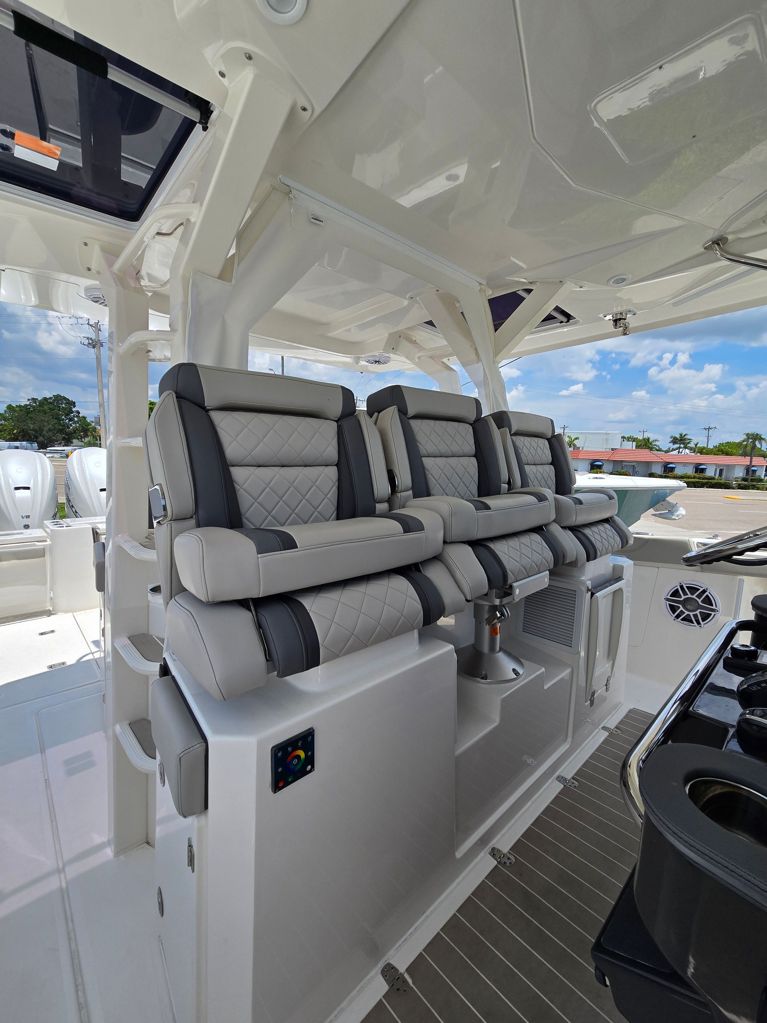 At the heart of the Pursuit S 428’s exceptional performance are four powerful engines, delivering a combined 1,800 horsepower. With only 57 engine hours, this Center Console boat is practically brand new and ready to unleash its full potential on the open water. The quad-engine configuration ensures rapid acceleration, impressive top speeds, and the confidence to tackle a wide range of sea conditions. Whether you’re heading offshore for a day of fishing or cruising along the coastline, the S 428’s robust powertrain provides a smooth, responsive, and exhilarating ride every time you take the helm.