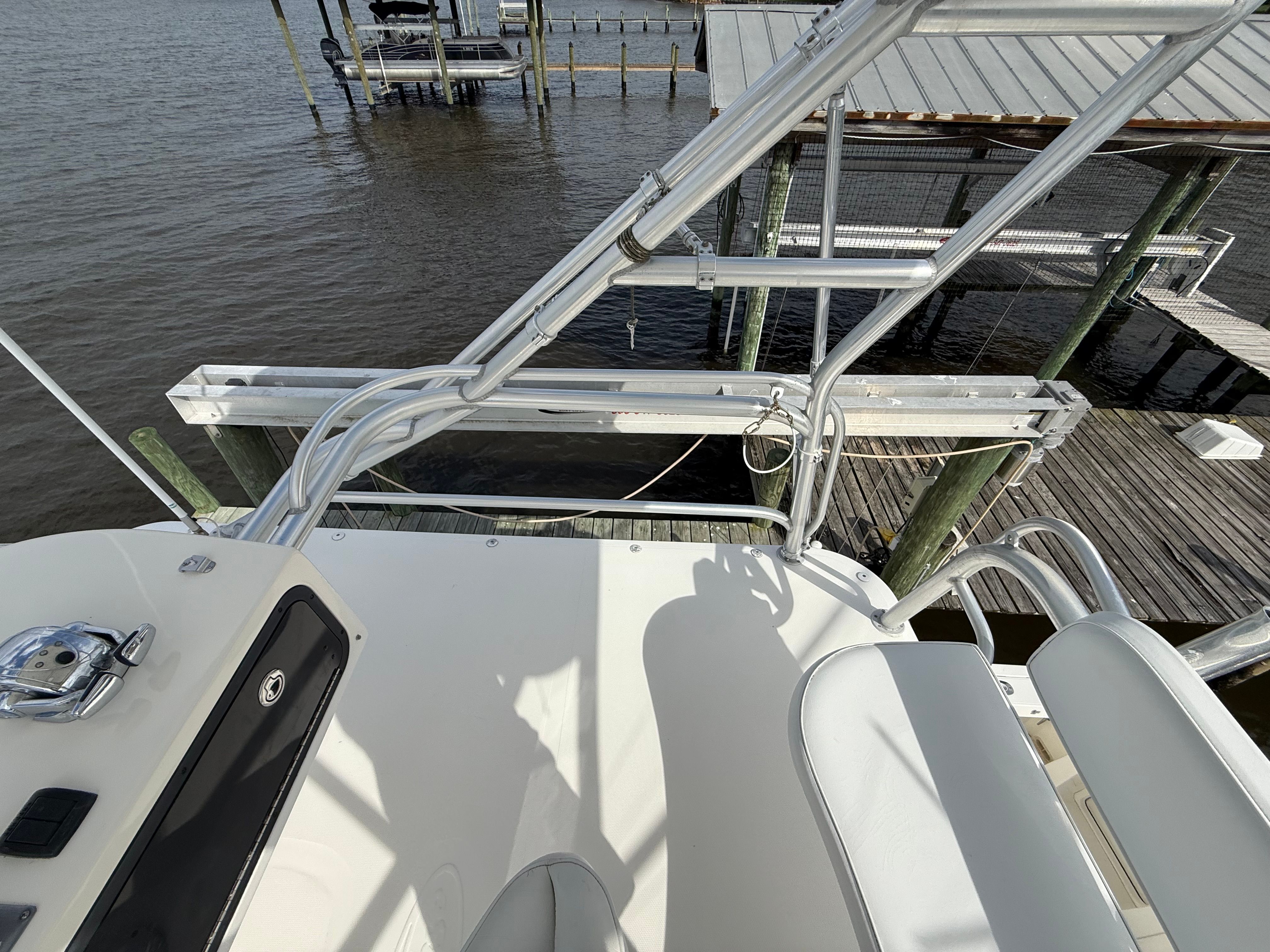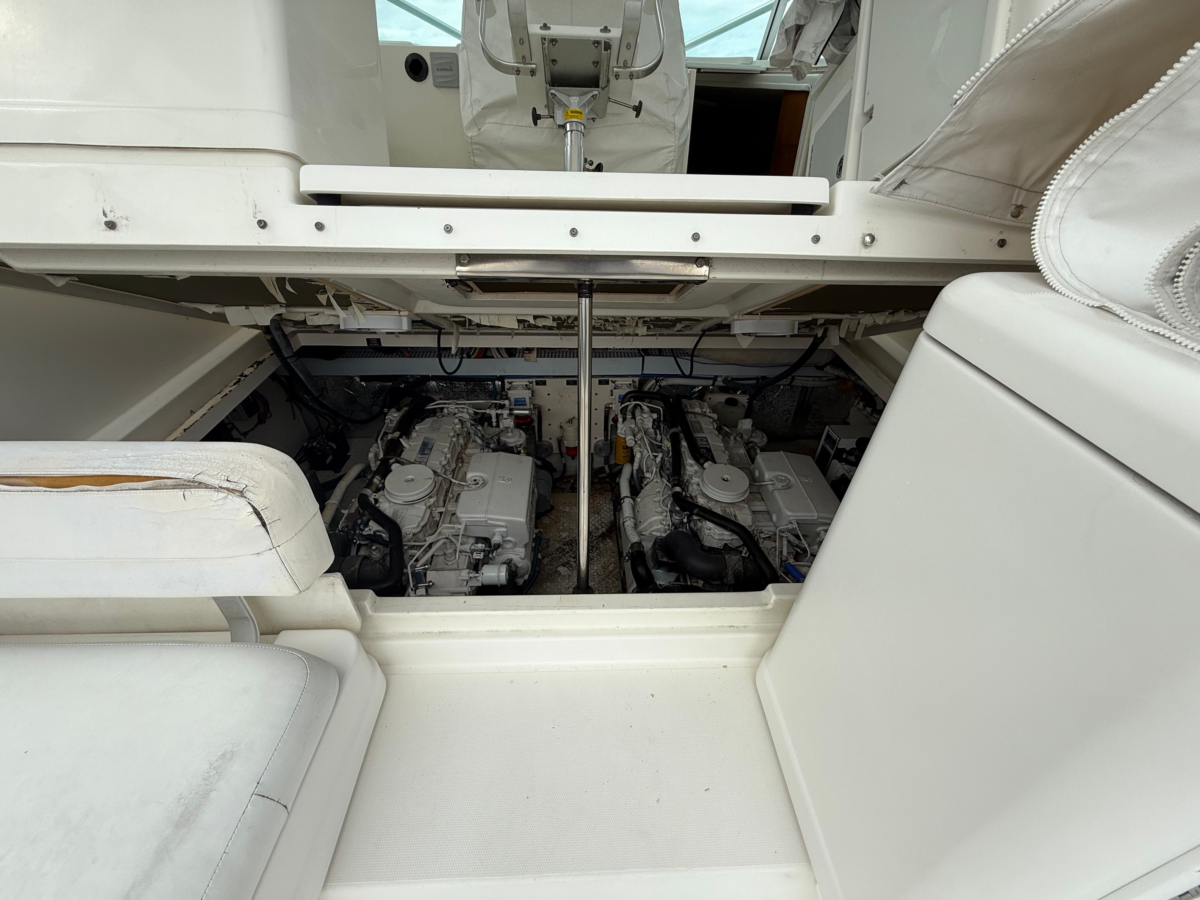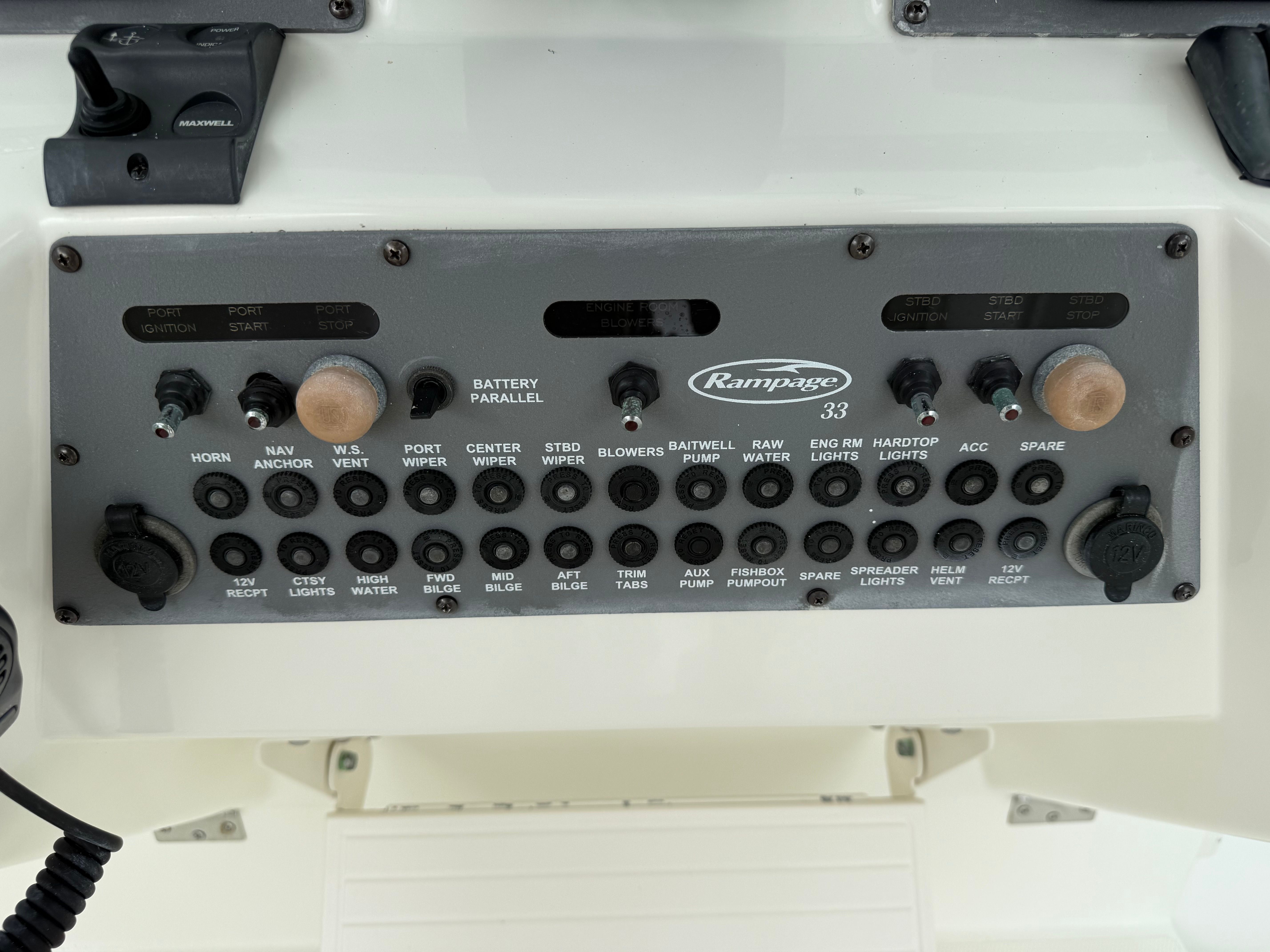 The Rampage 33 Express is powered by two robust engines, delivering a combined horsepower of 910. With only 595 engine hours, these engines are ready to provide many more years of reliable service. This impressive power ensures smooth cruising, quick acceleration, and the ability to handle a variety of water conditions with ease. Whether you’re navigating coastal waters or heading offshore, the Rampage 33 Express offers the kind of performance that makes every journey enjoyable. The twin-engine setup also enhances maneuverability, making docking and tight turns effortless, even for those new to handling a yacht of this size.