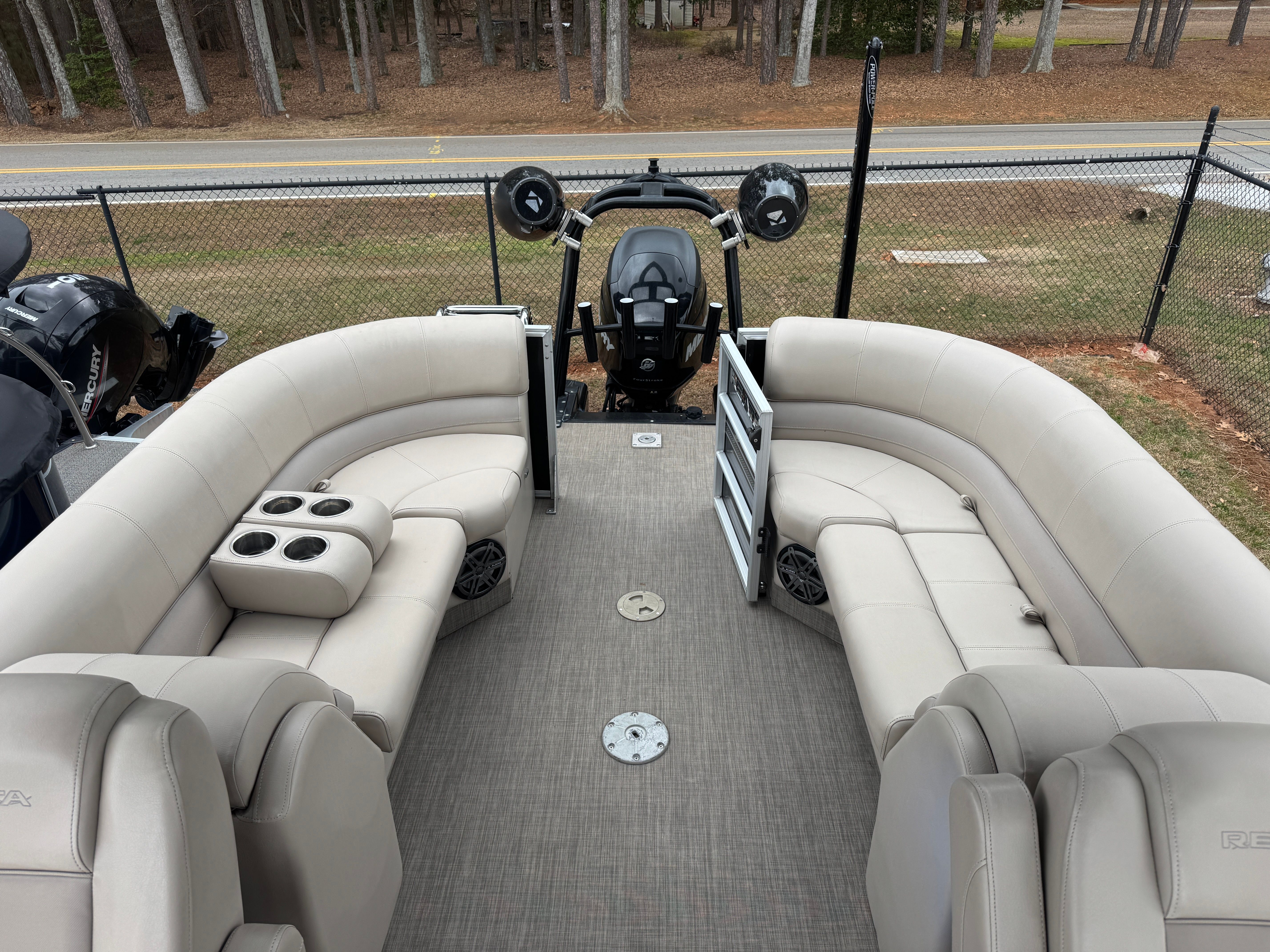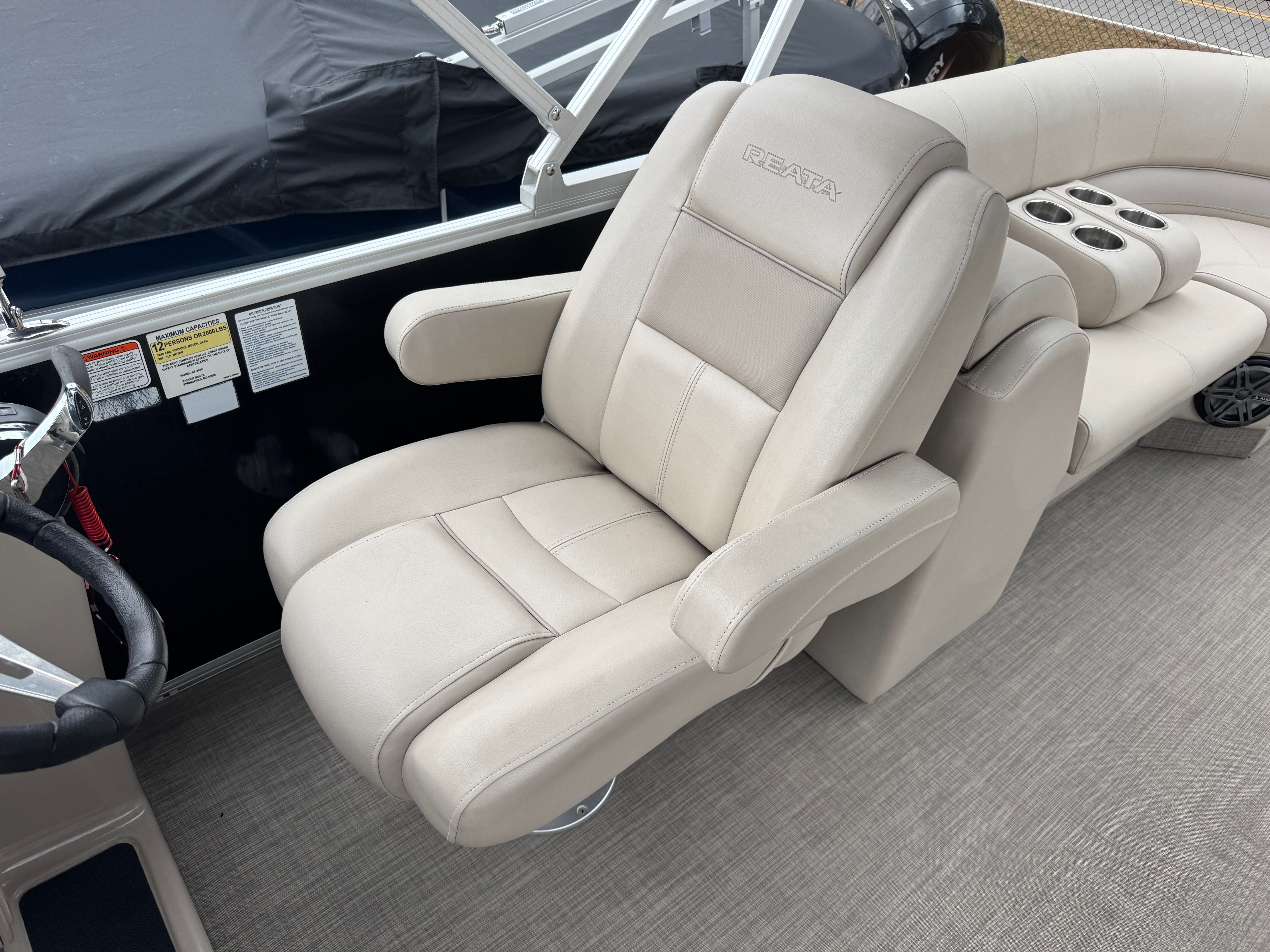 The Ranger Reata 243C is designed with comfort and convenience in mind. Its spacious layout allows for easy movement throughout the deck, while the plush seating ensures everyone on board can relax in style. The pontoon’s thoughtful design maximizes usable space, making it perfect for entertaining guests, enjoying meals, or simply soaking up the sun. The quality construction and attention to detail that Ranger is known for are evident throughout, from the sturdy fencing to the durable flooring.This 2017 Ranger boat for sale is built to provide a smooth and enjoyable ride, thanks to its well-engineered pontoons and balanced weight distribution. The helm is intuitively arranged, offering clear visibility and easy access to controls, so captains of all experience levels can navigate with confidence. The boat’s overall condition reflects careful ownership, ensuring that you can step aboard with peace of mind.