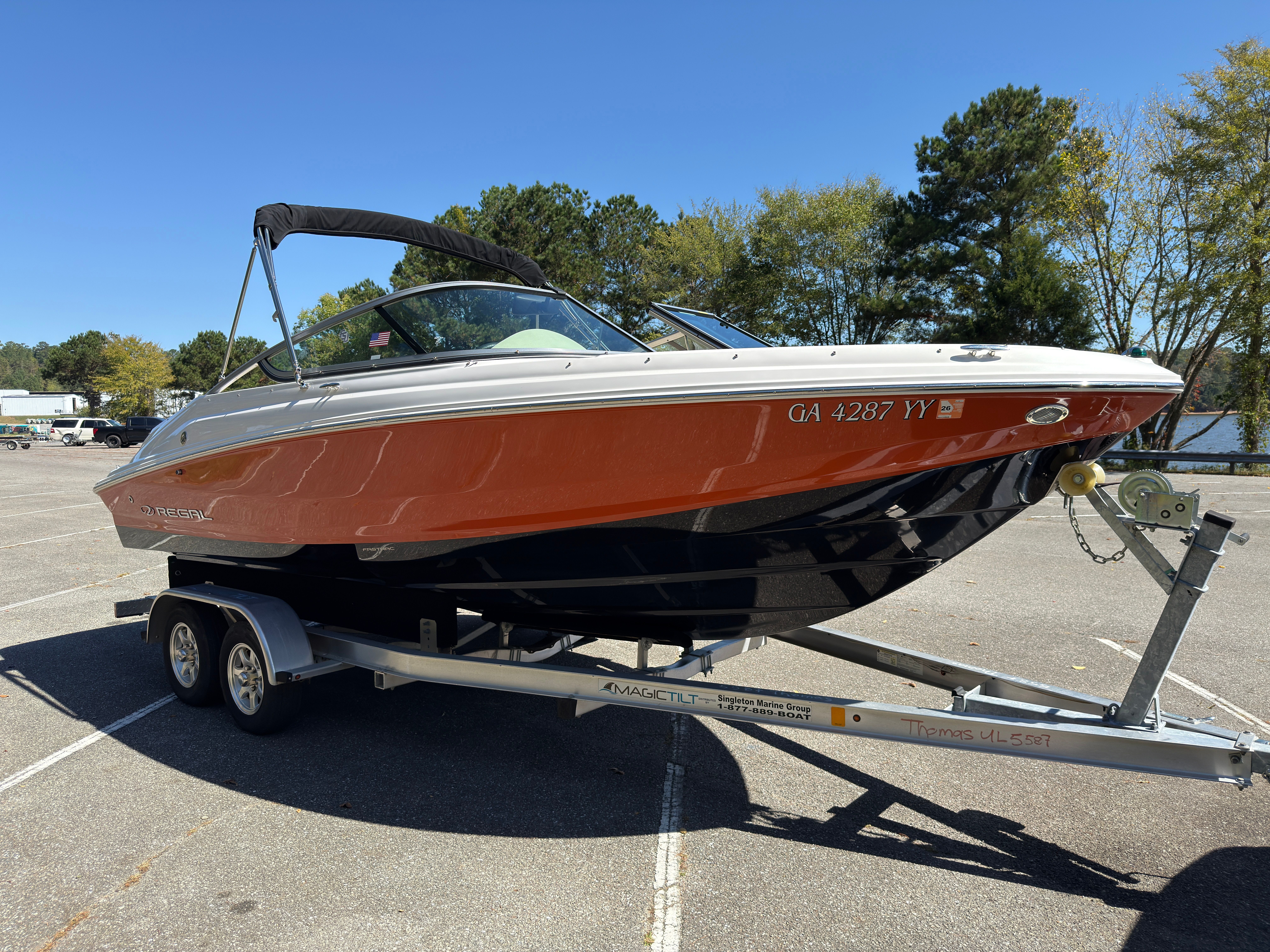 A super clean Regal 2000, now at Singleton Marine Lake Allatoona! The Regal 2000 is an easy boat. Easy to drive, easy to trailer, and easy to maintain! Notable features include: -Magictilt Aluminum Trailer -Bimini top -Full cover -Volvo 200hp 4.3L V6 (185 hours) -Bluetooth stereo -Depth Meter -Snap in flooring
