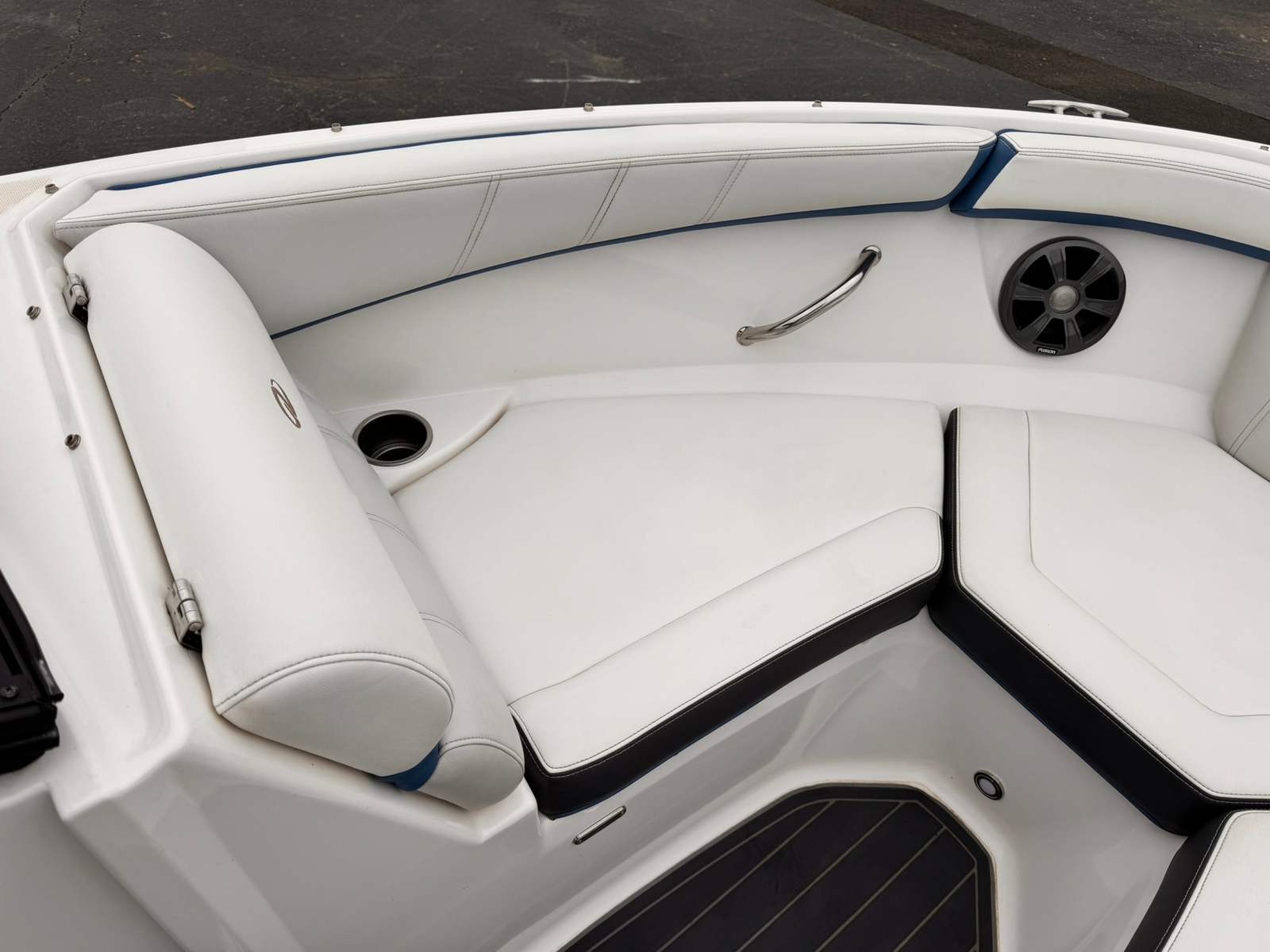 The Regal 2000 ESX Bowrider is packed with features that enhance both comfort and convenience. The spacious bow seating area is perfect for relaxing with friends or family, while the ergonomic cockpit layout ensures the captain has everything within easy reach. The boat’s open design encourages socializing and makes it easy to move around, whether you’re sunbathing, enjoying snacks, or gearing up for water sports. The quality craftsmanship and attention to detail are evident in every aspect of the boat, from the plush upholstery to the sleek dashboard.