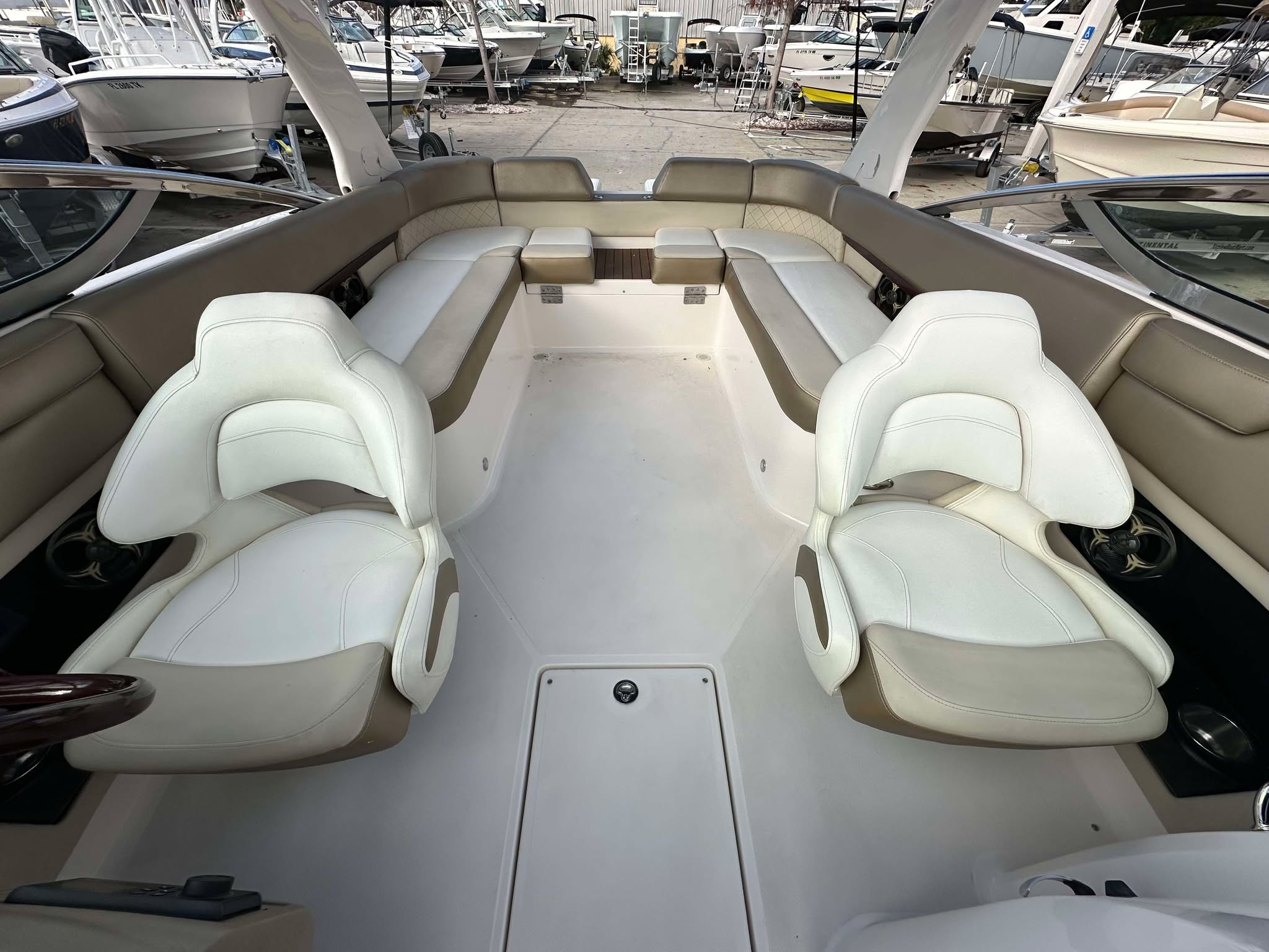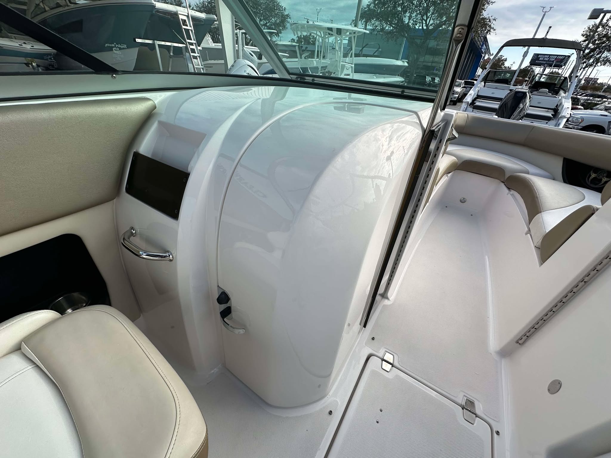 The Regal 2500 Bowrider is designed with practicality in mind. Its manageable size makes docking and maneuvering a breeze, even for those new to boating. The single-engine setup simplifies maintenance and reduces operating costs, while still delivering impressive performance. Storage options on board allow you to stow away gear, snacks, and personal items, keeping the deck clutter-free and organized.Fuel efficiency is another advantage of this Bowrider boat for sale. The Regal 2500’s engine is engineered to provide plenty of power without excessive fuel consumption, helping you enjoy longer outings without frequent refueling stops. The boat’s durable construction ensures it can handle a variety of conditions, from calm lakes to coastal waters, giving you the freedom to explore new destinations with confidence.