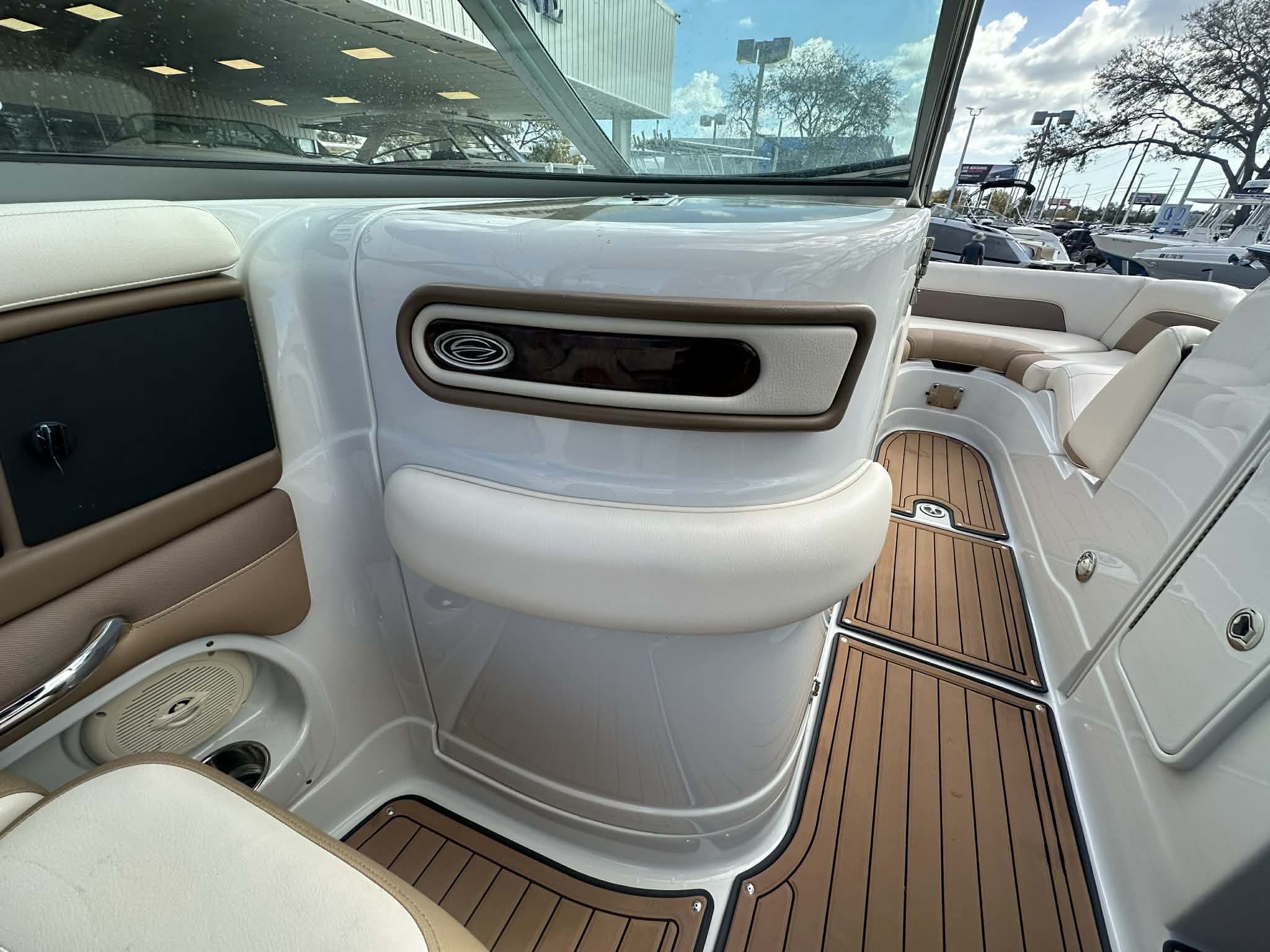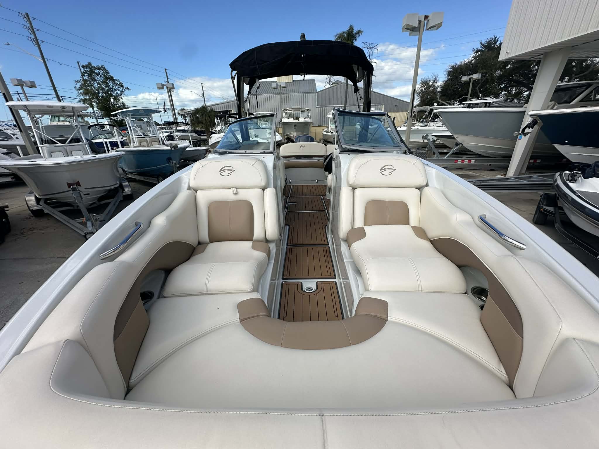 The Crownline E26XS is packed with features that enhance your boating experience. Its spacious 26-foot layout provides ample room for family and friends, while the center console design ensures easy movement throughout the boat. The ergonomic helm is thoughtfully arranged for intuitive control, allowing you to navigate with ease and precision. The boat’s durable construction and high-quality materials reflect Crownline’s commitment to excellence, ensuring lasting value and enjoyment.Special features of the E26XS include a versatile deck layout that is perfect for both relaxation and activity. The open bow area invites sunbathing and socializing, while the center console configuration provides excellent visibility and access to all areas of the boat. The generous storage compartments are ideal for stowing gear, water toys, and fishing equipment, keeping the deck clutter-free and organized. The E26XS’s innovative design also makes it easy to customize for your preferred activities, whether you’re setting up for a day of fishing or preparing for a sunset cruise.