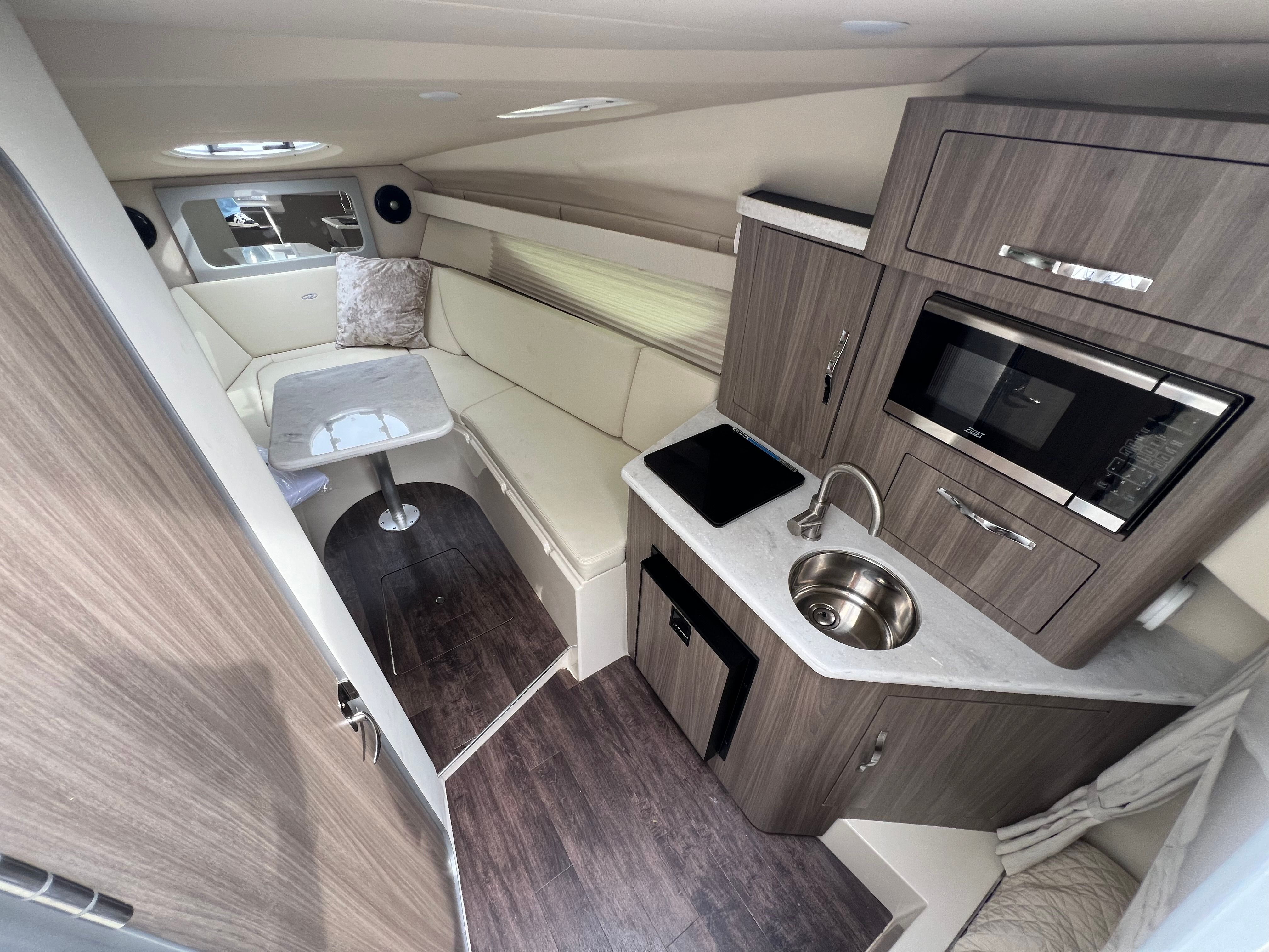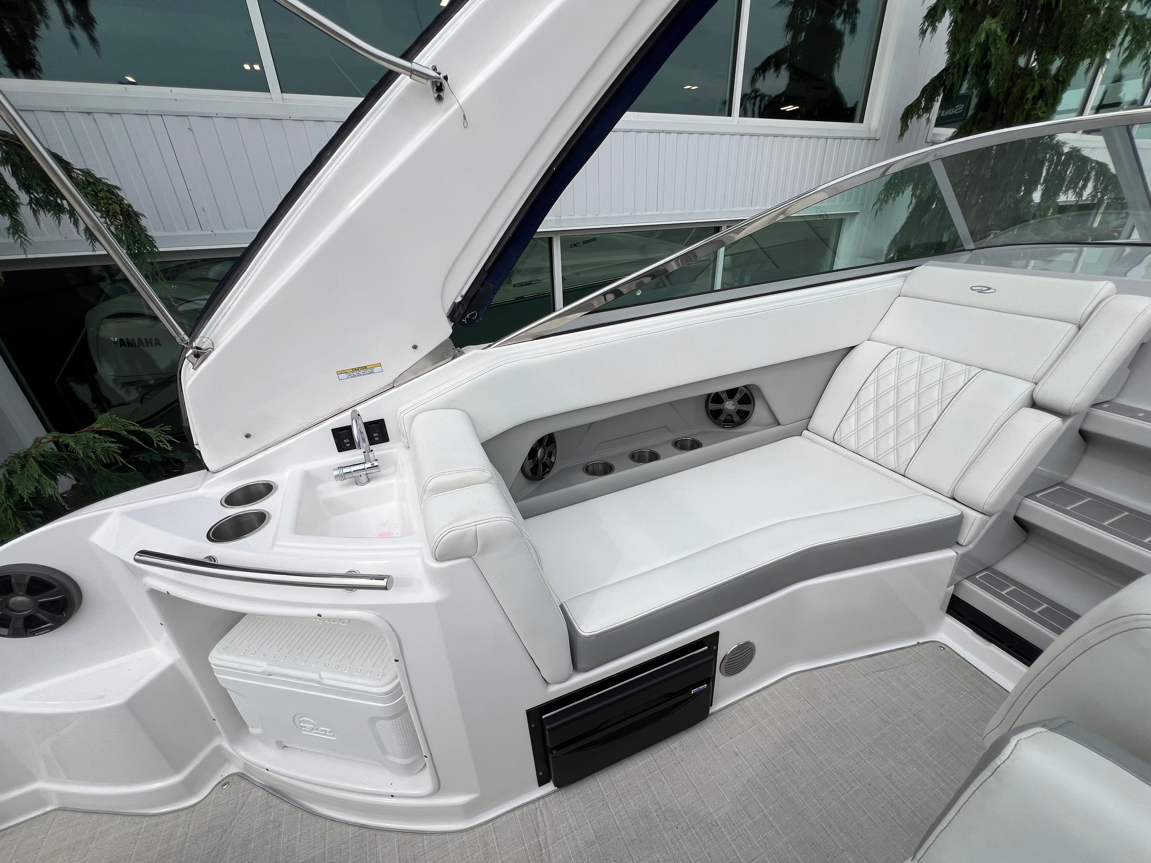This Regal cruiser boat for sale is as practical as it is stylish. The nearly 29-foot length provides generous storage options for all your gear, making it easy to pack for a day trip or a weekend getaway. The efficient engine and modern electronics contribute to fuel savings and ease of navigation, so you can focus on enjoying your time on the water. Docking is straightforward, thanks to the boat’s responsive handling and well-designed controls.The anchor windlass with an all-chain setup makes it simple to secure your position, whether you are stopping for a swim, a picnic, or an overnight stay. The power tower is perfect for water sports enthusiasts, offering support for wakeboarding, tubing, or simply providing shade on sunny days. The DeaDek swim platform is comfortable and slip-resistant, making it easy to get in and out of the water.