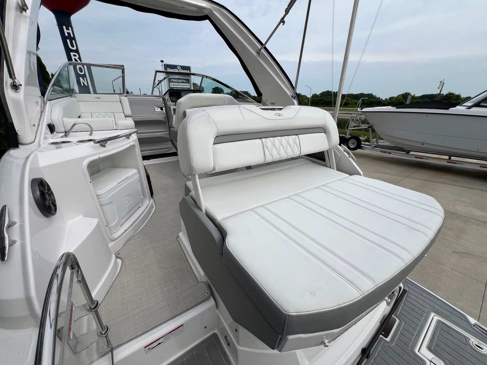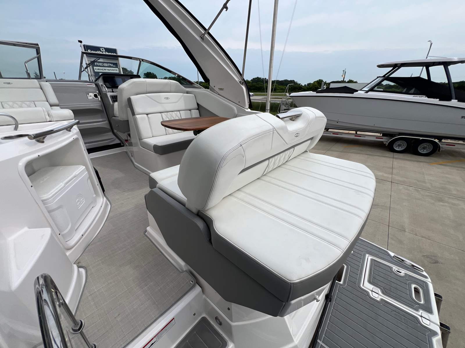 In summary, the 2022 Regal 28 Express is a remarkable cruiser boat for sale that offers an unbeatable blend of luxury, performance, and practicality. With its powerful 350-horsepower engine, low hours, and a suite of premium features—including dual 9-inch glass cockpit displays, Garmin electronics, satellite stereo, color-matched DeaDek, white power tower, blue underwater lighting, and an all-chain anchor windlass—this Regal boat for sale is ready to deliver unforgettable experiences on the water.If you are looking for a used cruiser that stands out for its style, comfort, and advanced features, the Regal 28 Express deserves your attention. Don’t miss the opportunity to make this exceptional boat your own. Contact the dealer today to learn more and schedule a viewing. Your next adventure awaits aboard the 2022 Regal 28 Express!