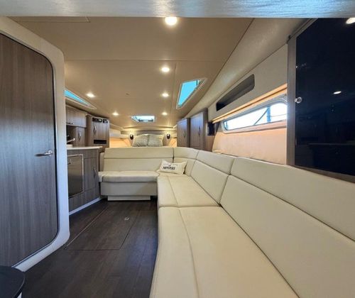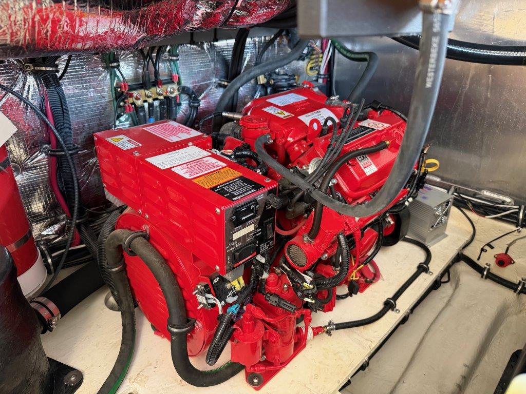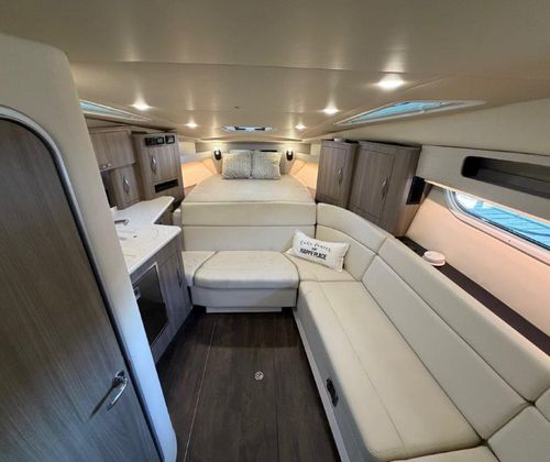 Freshwater and meticulously maintained, don’t miss your opportunity to own this beautiful 2-owner 2019 Regal 35 Sport Coupe. She’s brand new to the sales dock and ready for immediate delivery. The current owner already has his next boat picked out and is ready to make a deal. Where sport meets luxury, the 35 Sport Coupe is fast, agile, and effortless to dock with Volvo’s EVC Joystick. Powered by twin Volvo V8 300 DP CAT engines (130 hours) and a Westerbeke generator (75 hours), she delivers smooth cruising with a 225-mile range.