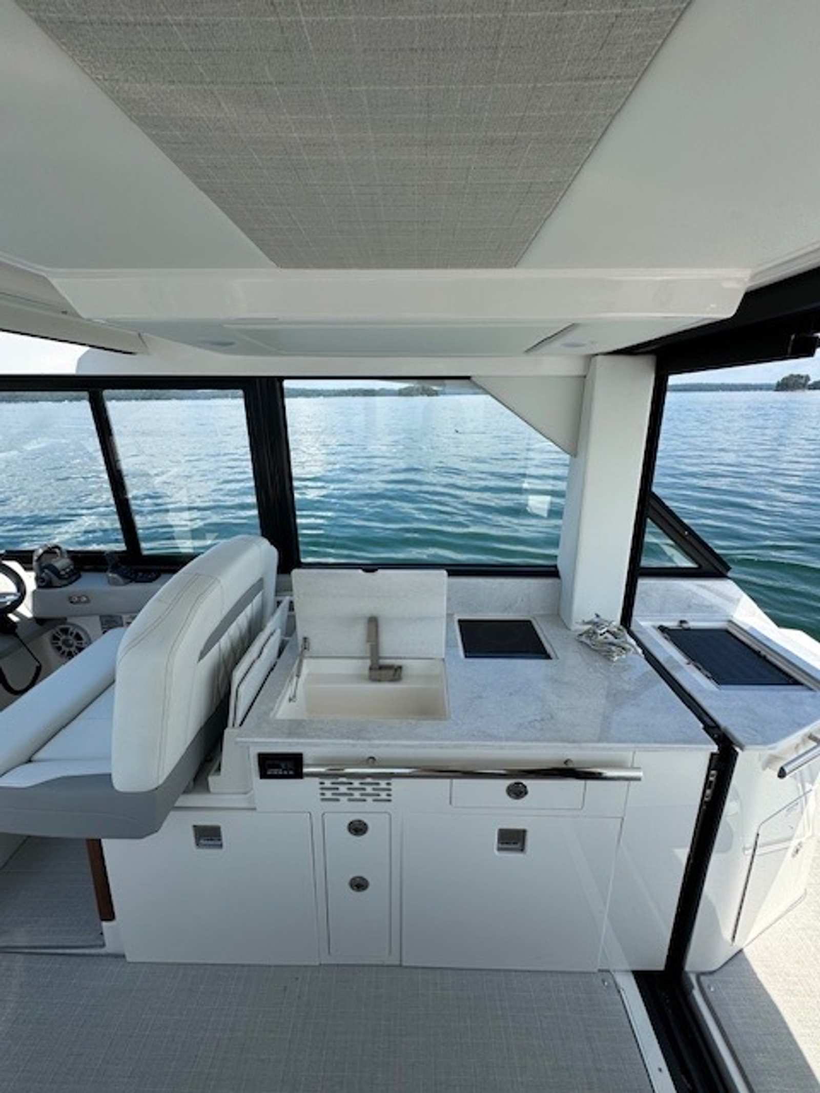 • Mid Cabin TV, Titanium Upholstery, and Toilet with Overboard Discharge