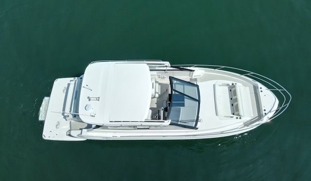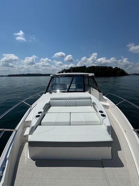 The 36 Grande Coupe combines luxury, innovation, and versatility, perfect for weekend getaways or day trips with family and friends. The open bow features Multi-Position seating, while the open-air salon highlights a refreshment center. The aft cockpit offers convertible face-to-face seating, adaptable for multiple uses.