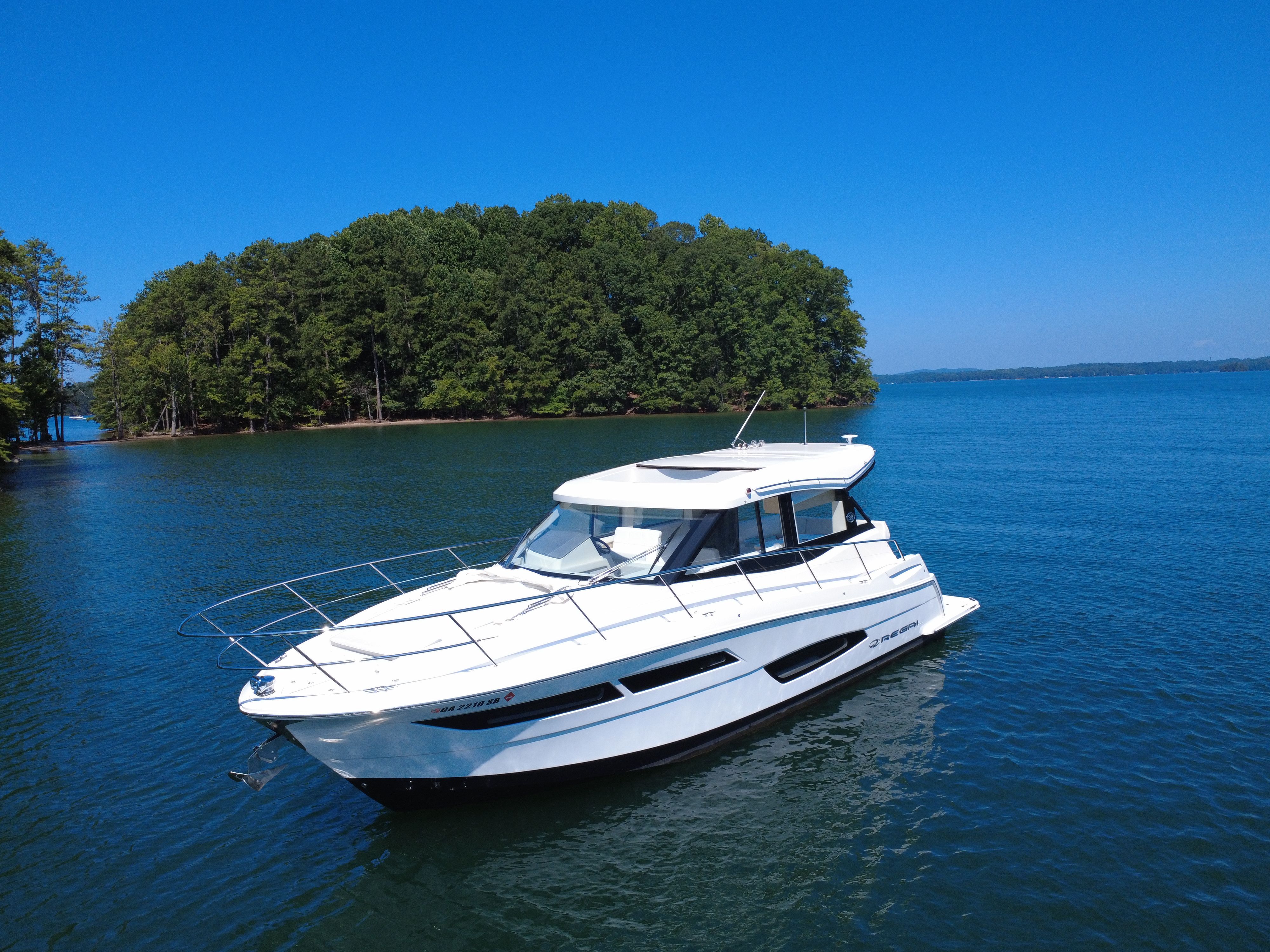 Professionally serviced by Singleton Marine, this 38 Grande Coupe is turn-key and loaded with premium features for both day cruising and extended stays aboard. The enclosed cockpit with Isinglass enclosure and electric sunroof provides year-round comfort, while the interior offers two private staterooms and a separate shower for a true home-away-from-home experience.