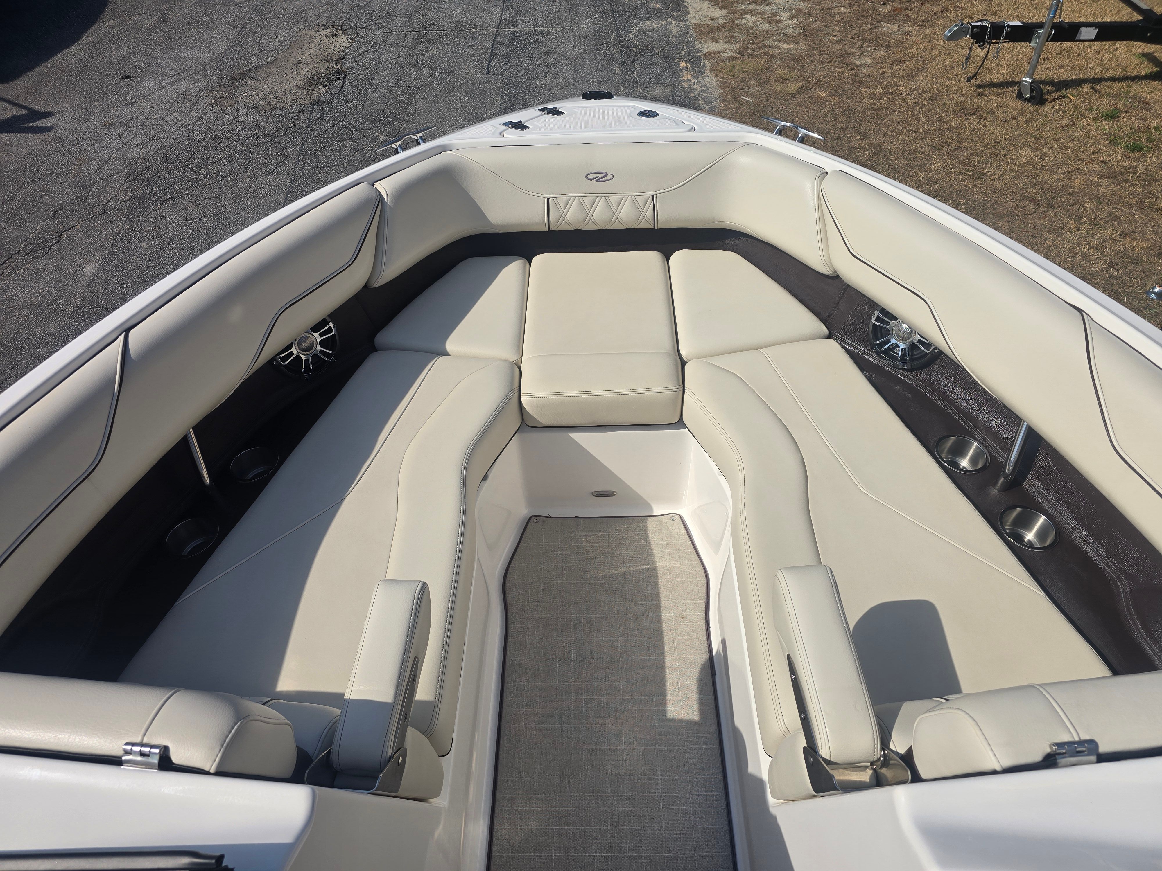 The 2022 Regal LS4 Bowrider is a testament to Regal’s commitment to quality and style. Measuring an impressive 24.42 feet in length, this boat provides ample space for relaxation and recreation. Its sleek profile and contemporary lines are accentuated by the eye-catching Tahiti Beach White hull, complemented by a Mediterranean Blue bootstripe and matching bottom color. The Mediterranean Blue canvas adds a touch of sophistication, while the River Rock accents create a refined and inviting atmosphere onboard. With only 220 engine hours, this used Bowrider remains in excellent condition, offering years of reliable enjoyment ahead.