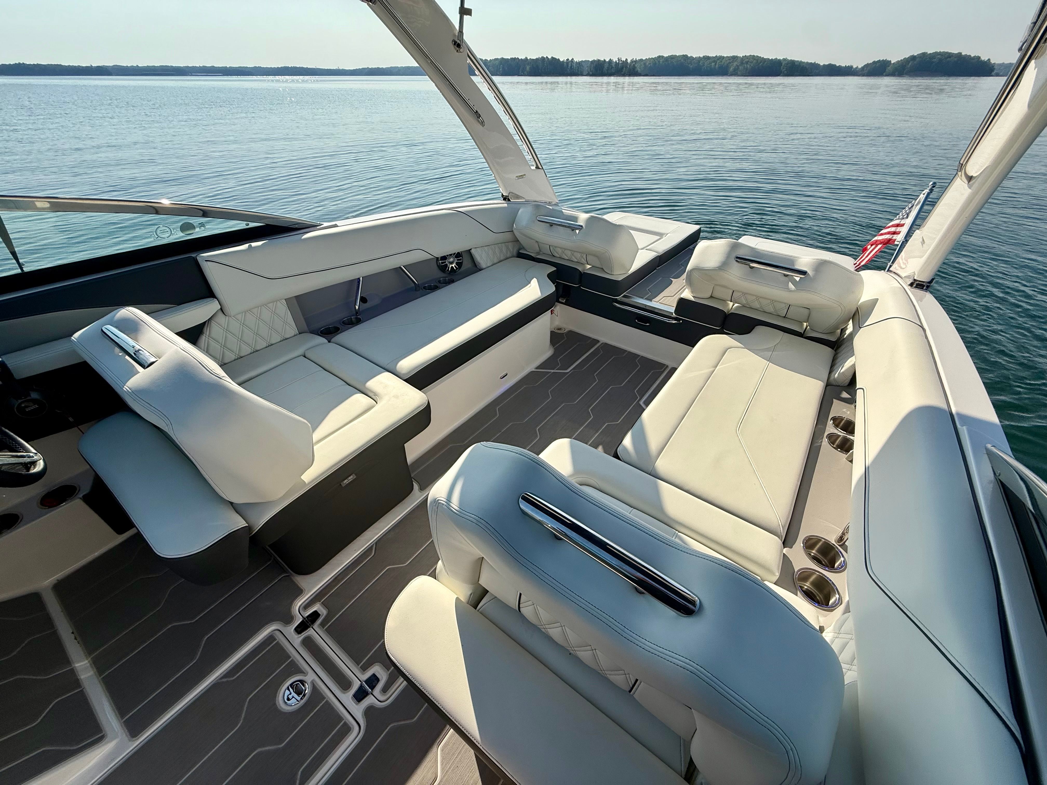 Powering the Regal LS6 is a robust single engine delivering an impressive 350 horsepower. This setup ensures that the LS6 is not just about looks—it’s built for exhilarating performance on the water. The powerful engine provides quick acceleration, responsive handling, and the ability to reach thrilling speeds, making it ideal for water sports enthusiasts and those who love the rush of open water. Whether you’re cruising along the shoreline or towing a wakeboarder, the LS6’s engine performance guarantees a dynamic and enjoyable ride every time you hit the water.