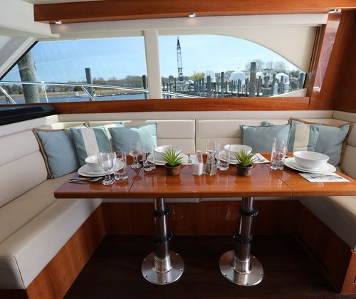 Powering the Riviera 43 Flybridge are two robust engines, delivering a combined 870 horsepower. This impressive power package ensures smooth acceleration, responsive handling, and the ability to cruise comfortably at a variety of speeds. Whether you are navigating coastal waters, exploring offshore destinations, or simply enjoying a leisurely cruise, the performance of this flybridge boat is sure to impress. The twin-engine configuration not only enhances maneuverability but also provides peace of mind for longer journeys, making this Riviera boat for sale a reliable choice for both seasoned captains and newcomers alike.