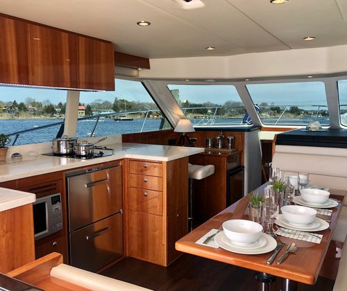 Beyond its luxurious features, the Riviera 43 Flybridge is also a practical choice for boaters who value convenience and ease of ownership. The twin-engine setup simplifies docking and maneuvering, making it easier to handle in tight spaces or busy marinas. The generous storage options throughout the vessel ensure that all your gear, provisions, and personal items have a dedicated place, keeping the living spaces uncluttered and organized.Fuel efficiency is another key advantage of this flybridge boat for sale, allowing you to enjoy longer trips without frequent refueling stops. The thoughtful design extends to maintenance and upkeep, with accessible systems and components that make routine care straightforward. Whether you are planning a day trip or an extended voyage, the Riviera 43 Flybridge is equipped to meet your needs with style and reliability.