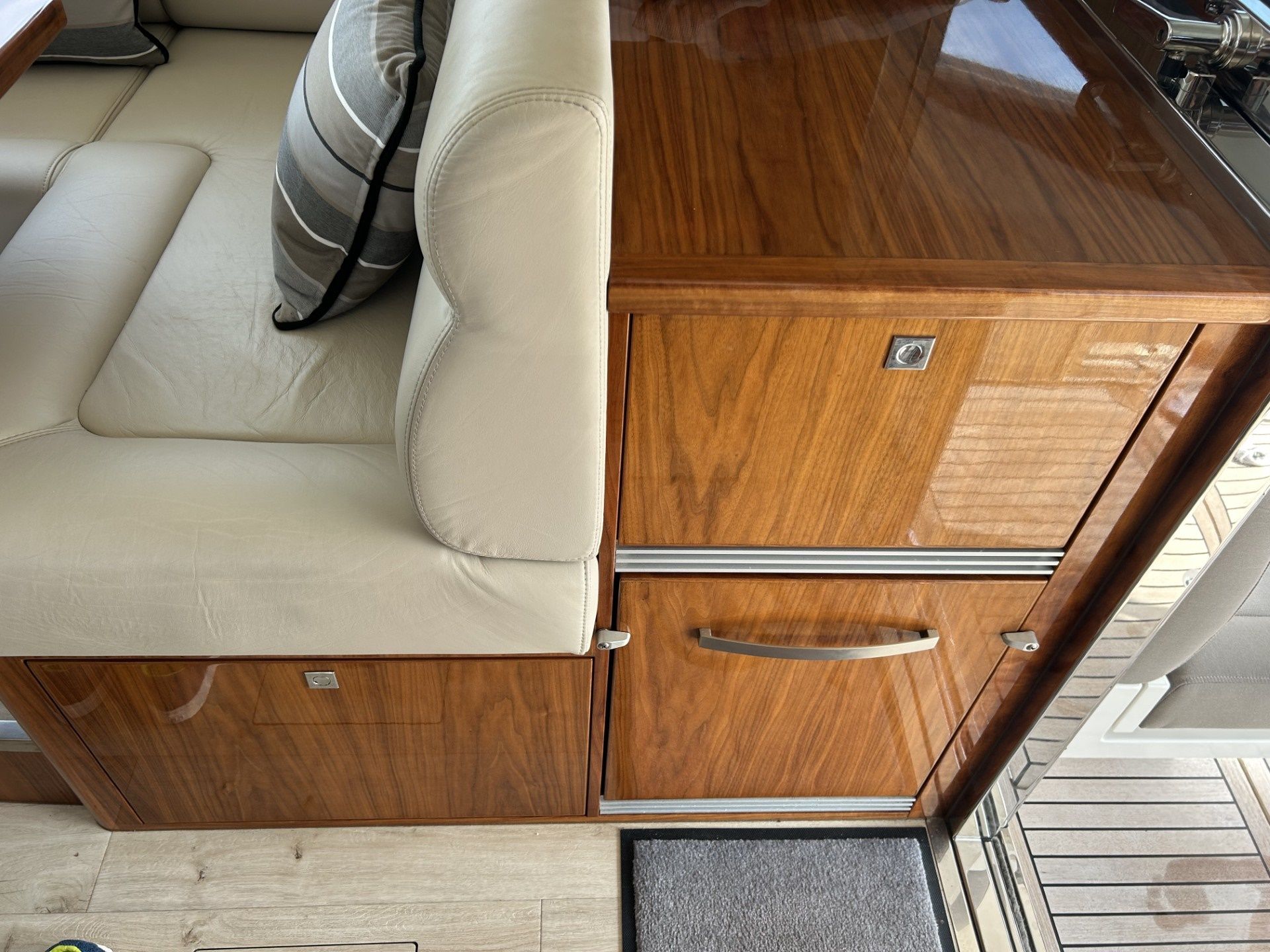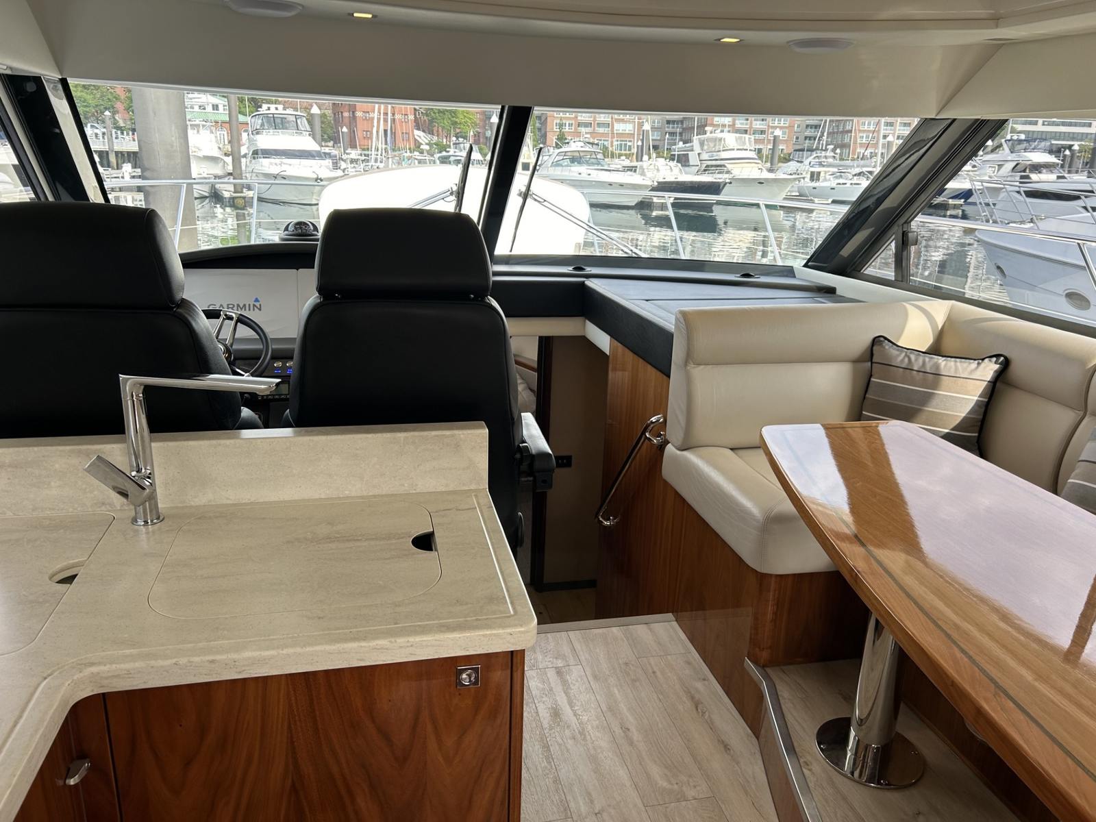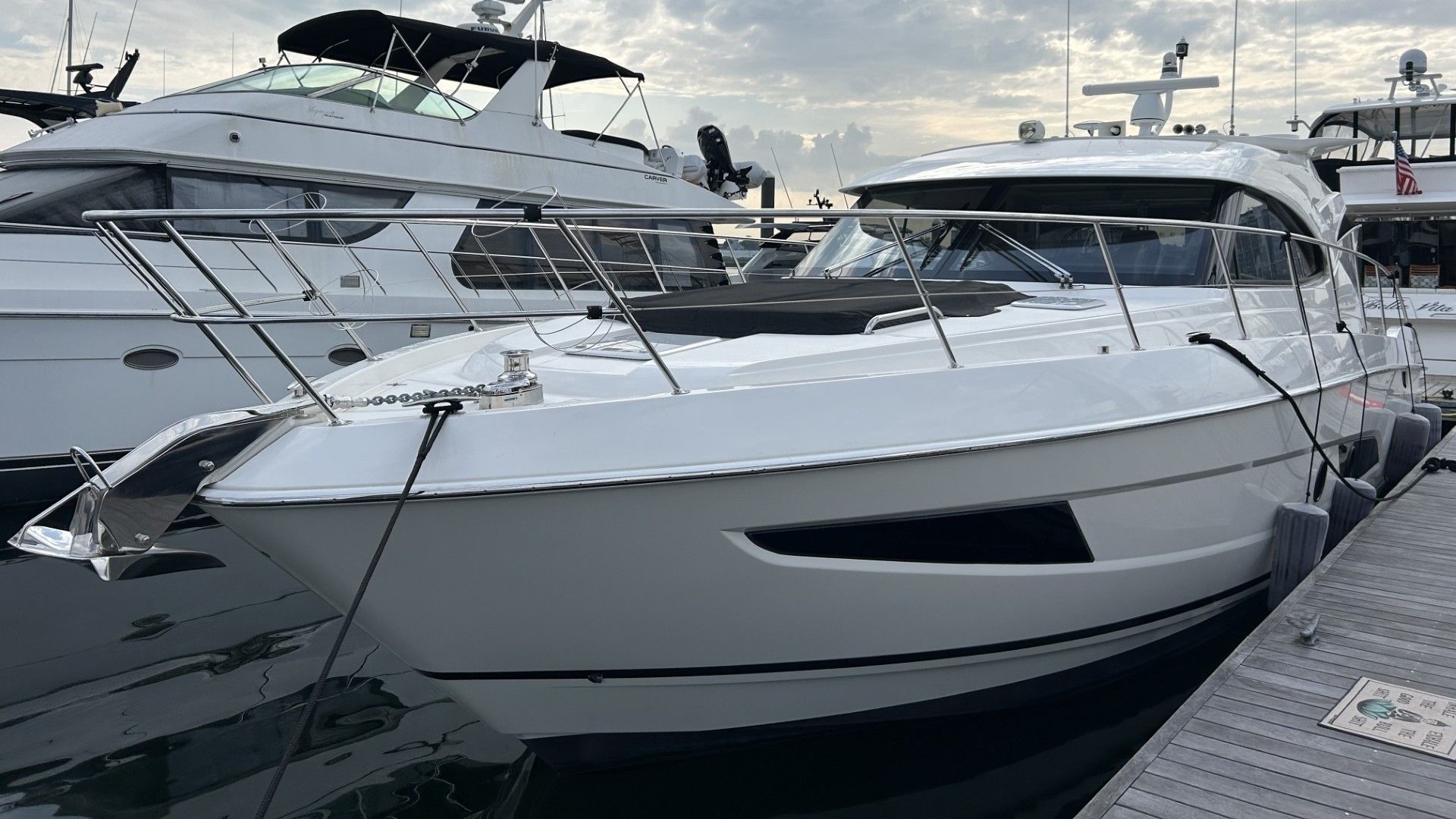 Powered By Twin Volvo IPS 800 D8’s (600 HP ea.) w/ Only 340 Hours! * Inc. ACP, Helm Joystick * White Hull Color * Garmin GMR 424 XHD Open Array Radar 5” * Navigation Screens (16”) Upgrade * Portside & Starboard Side Cockpit Joysticks * FLIR Night Vision Camera * Cameras: Engine, Awning, Anchor * Muir Windlass * Tender Garage w/Mercury RIB Tender & Yamaha 8 HP * Additional Transom Fixed Cleats * Extended Swim Platform * Underwater Lights * Fuel Filters/ Water Separator (DUAL) * Fresh Water Backup Pump * Upgraded Upholstery * Anchor Upgrade (S.S. Ultra) * Forward Deck Sunpad * Foredeck Lighting * Helm Electric Sunroof * Cockpit Awning * Cockpit Wet Bar w/ Grill, Ice Maker * Teak Laid Cockpit Floor * Galley w/ Dishwasher * U-Shaped Dinette * Galleyware Package * Walnut Gloss Interior Finish * Splendid Washer/Dryer Combo * Master TV, Aft Stateroom 24” LED TV * Master: King Walk-Around Innerspring Berth * Ensuite w/ Separate Shower Stall * Second Stateroom: Convertible Twins, Another Single * Second Bathroom/ Day Head * Professionally Maintained * OFF-SITE, BY APPOINTMENT * @DN