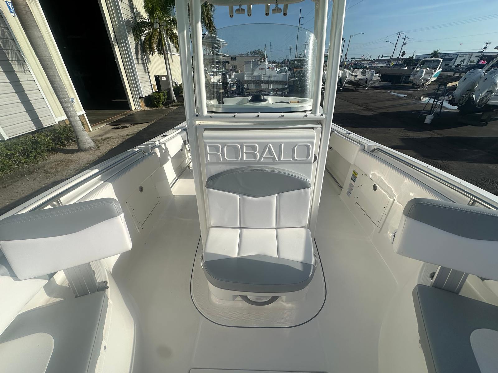 The Robalo 242 CC shines in a variety of scenarios, making it a versatile choice for boating enthusiasts. For families, it’s the perfect platform for sun-soaked days filled with swimming, tubing, and picnics on the water. Anglers will appreciate the 360-degree fishability, ample storage for rods and tackle, and the smooth, stable ride that makes chasing your next trophy catch a breeze. If you’re seeking a stylish and comfortable way to entertain friends or enjoy a romantic sunset cruise, the 242 CC delivers with its spacious seating and inviting atmosphere. No matter your passion, this Robalo boat for sale is ready to help you create lasting memories on every voyage.
