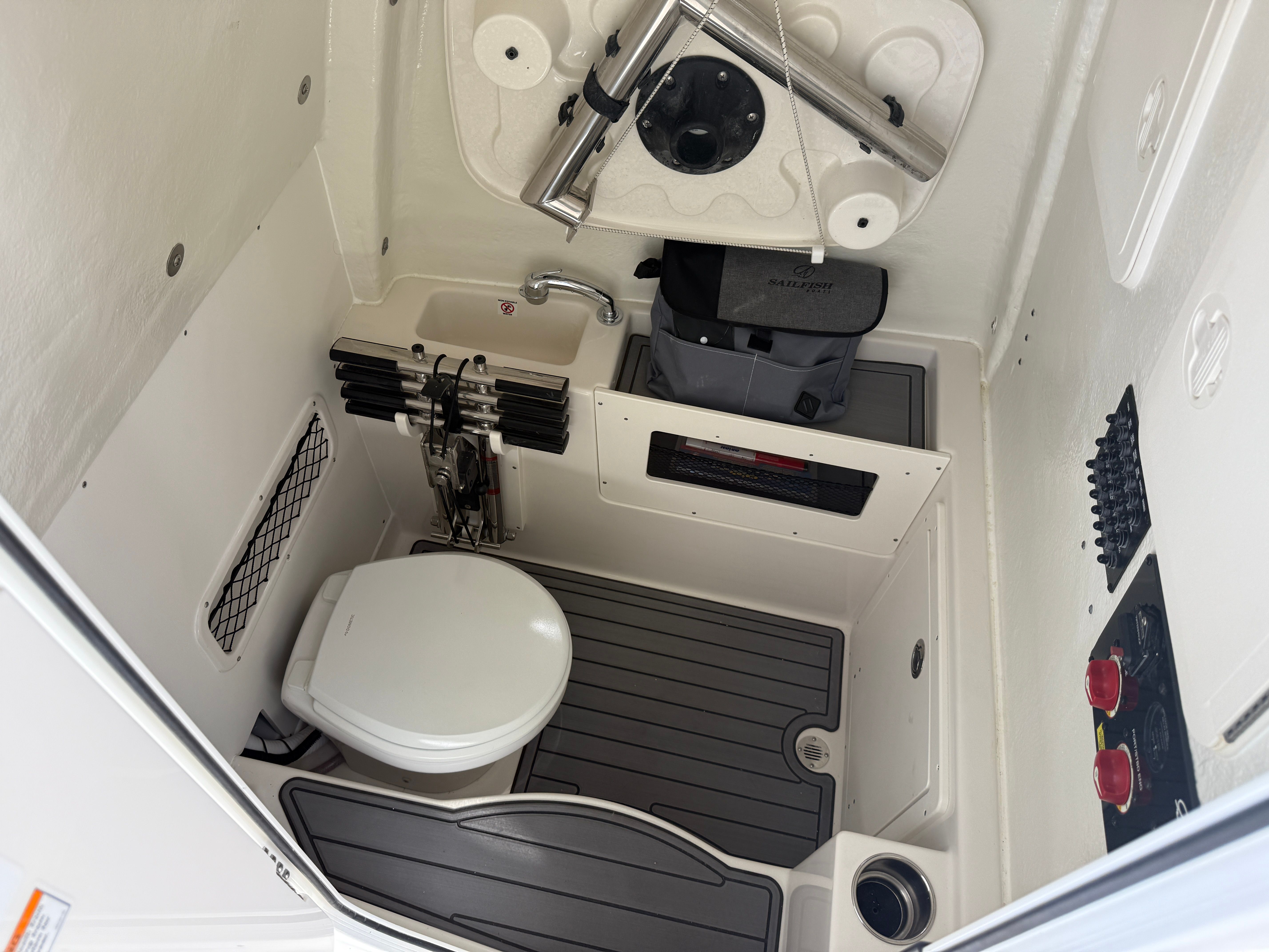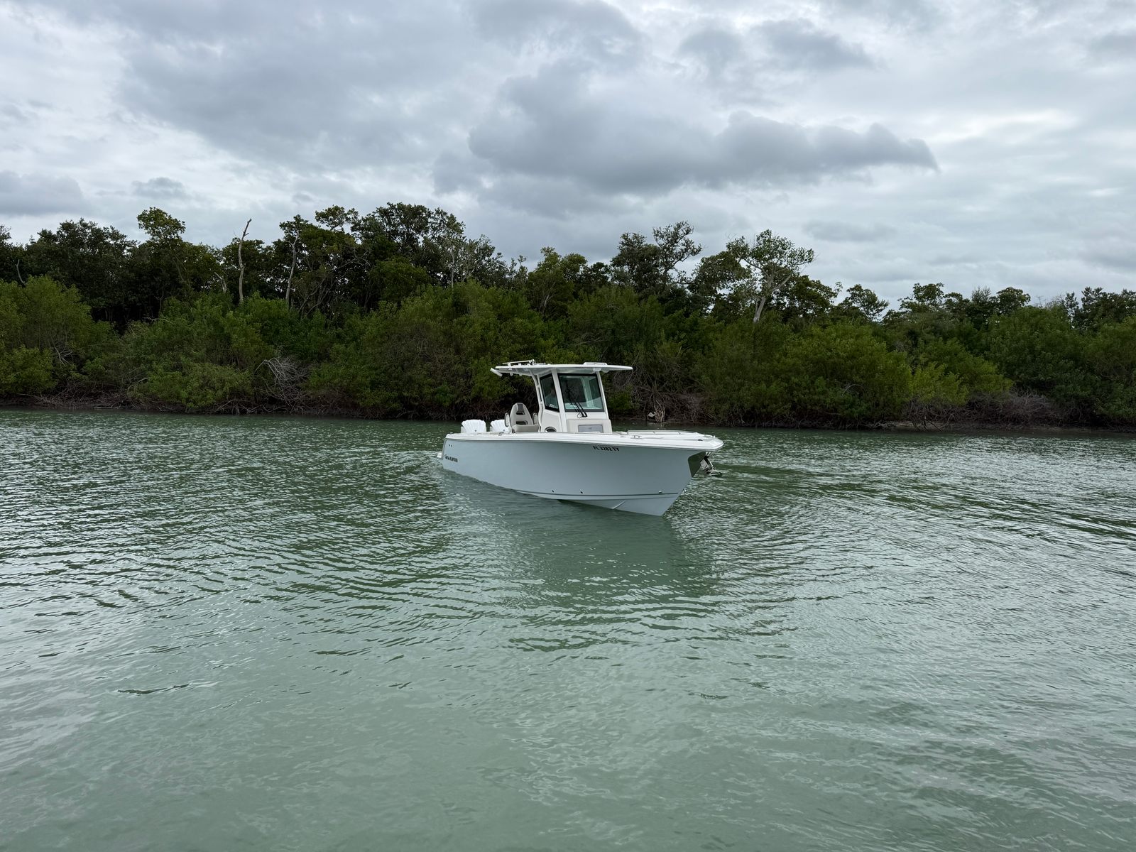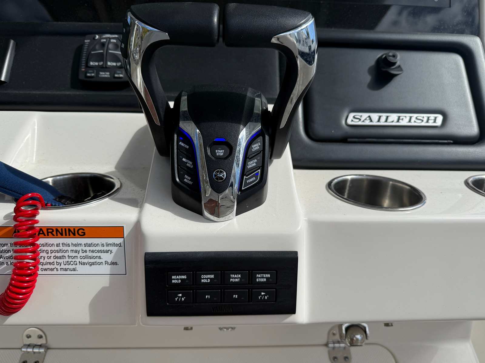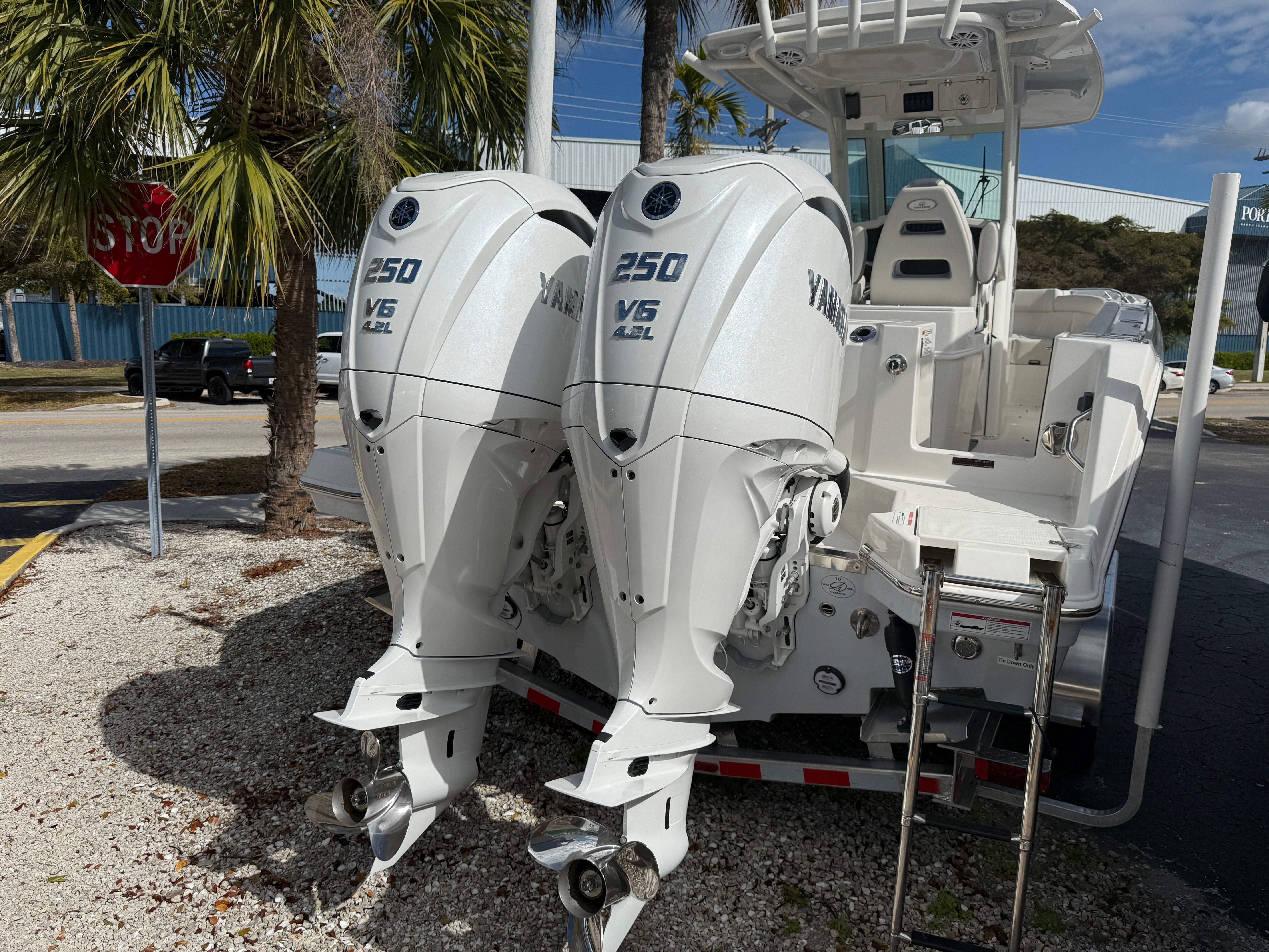 Just in on trade! 2025 Sailfish 272 with twin Yamaha 250's with only 34 hours and Warranty until 02/26/2031!!!! LIKE NEW!