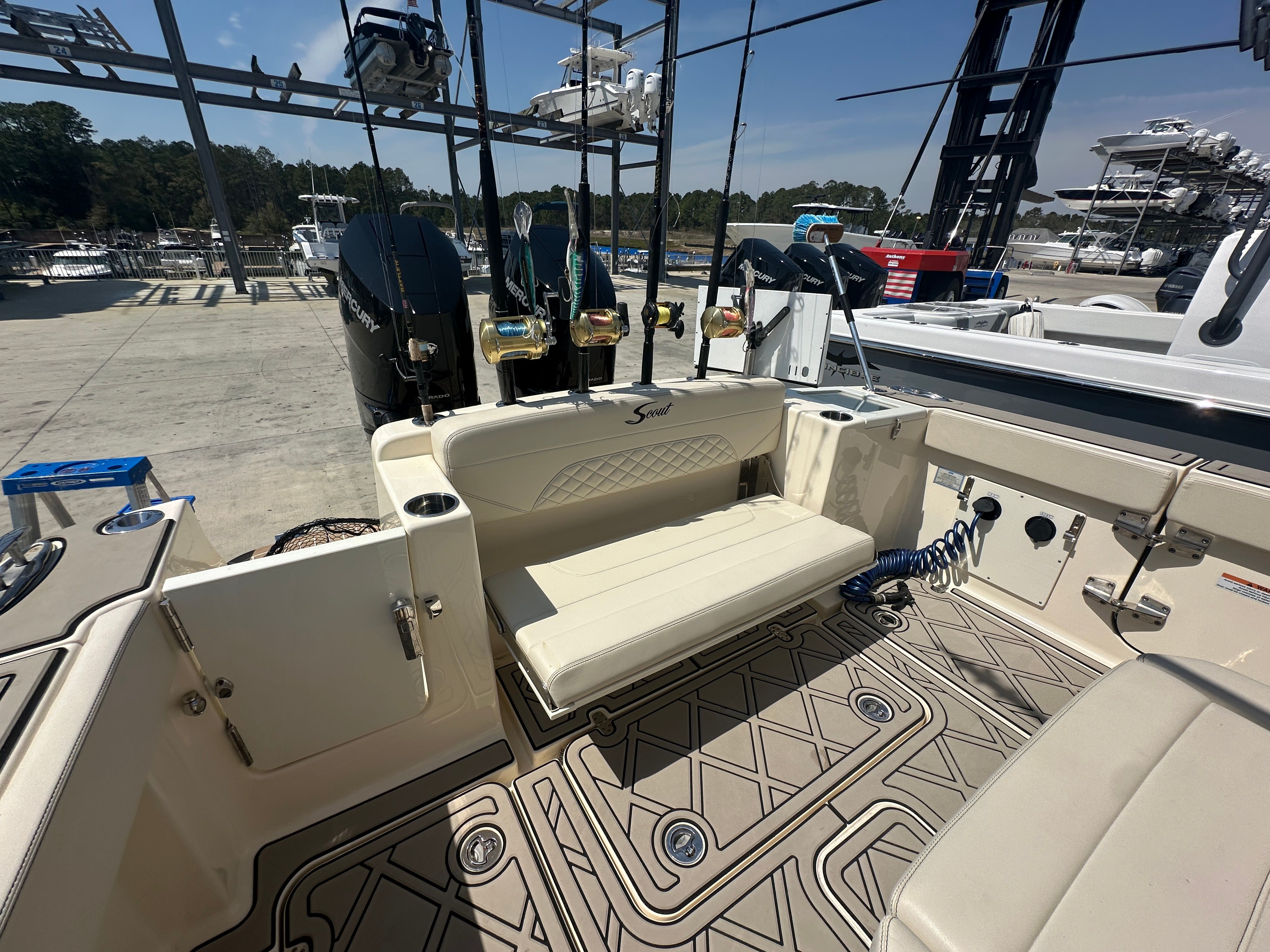 The Scout 330 LXF is designed with practicality in mind, making boat ownership easier and more enjoyable. The generous storage options allow you to bring along all the gear you need for a day on the water, from fishing equipment to water toys and picnic supplies. The center console layout provides easy access to all areas of the boat, simplifying docking and maneuvering in tight spaces.Fuel efficiency is a key consideration for any boater, and the twin-engine setup of the Scout 330 LXF is engineered to deliver impressive performance without sacrificing economy. This means you can spend more time on the water and less time at the fuel dock. The durable construction and quality materials ensure that this used Scout boat for sale will stand up to the demands of regular use, providing peace of mind for years to come.