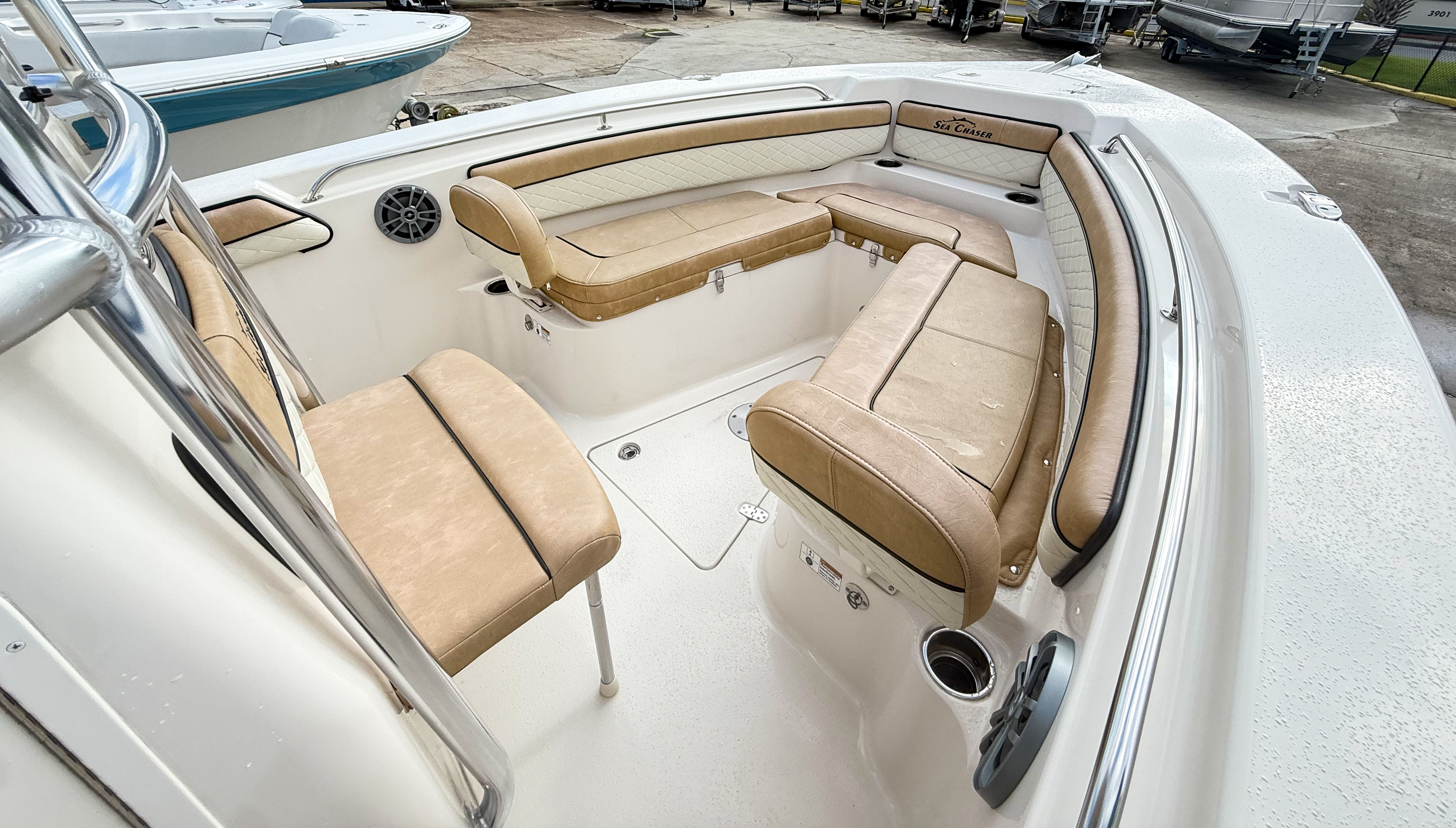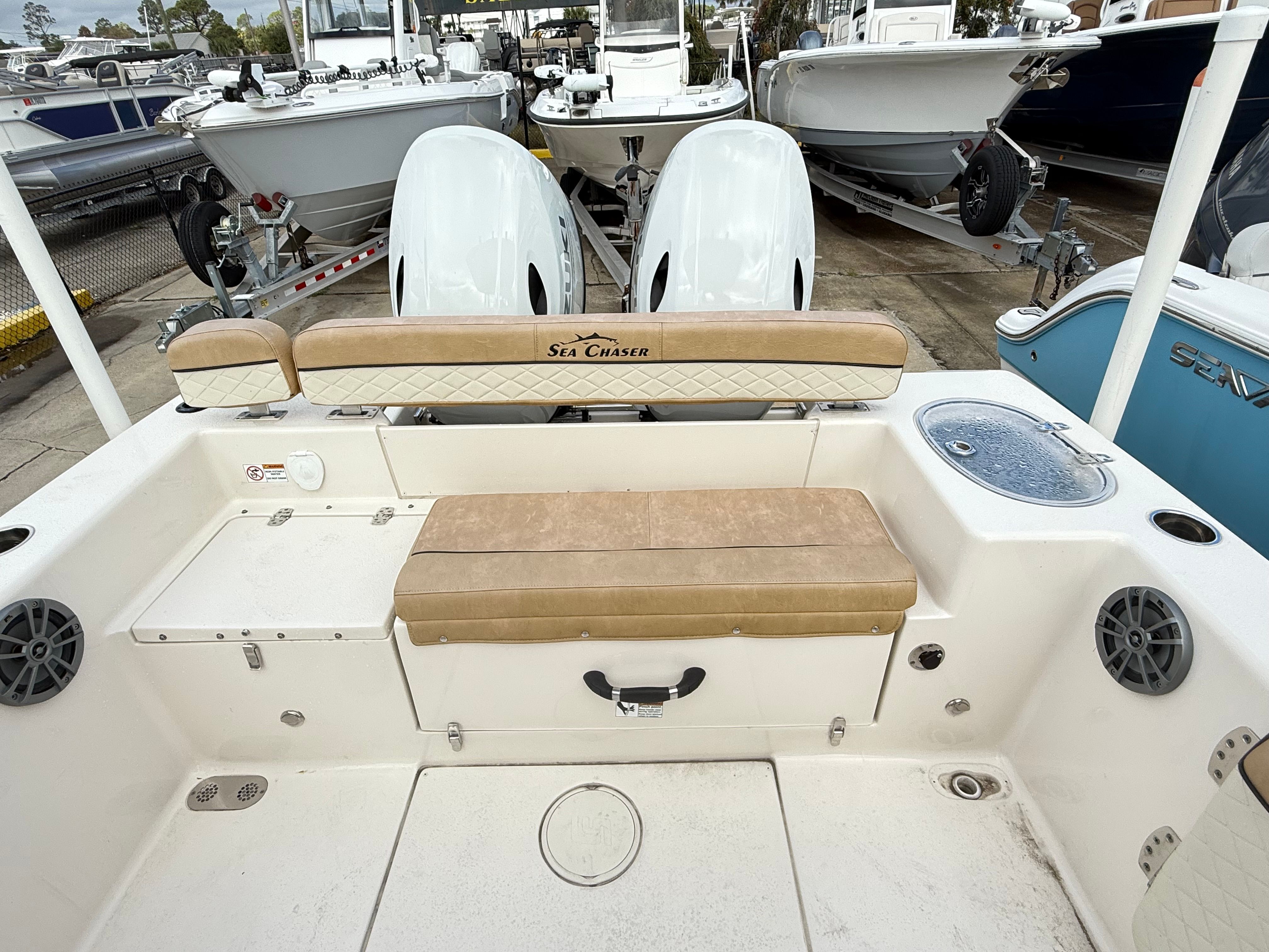 The Sea Chaser 24 HFC shines in a variety of scenarios, making it a versatile choice for different types of boaters. For families, it offers a safe and comfortable platform for day trips, beach outings, and water-based activities. The spacious deck and open layout are perfect for socializing, playing games, or enjoying a picnic on the water.Fishing enthusiasts will appreciate the boat’s maneuverability, stability, and ample space for casting and reeling. The dual engines provide the power needed to reach prime fishing spots quickly and efficiently, while the center console design ensures you can follow the action wherever it leads.For those seeking a touch of luxury, the Sea Chaser 24 HFC is equally at home hosting sunset cruises, cocktail parties, or romantic getaways. Its sleek design and modern features make it a head-turner at any marina, while its performance and comfort ensure every outing is a pleasure.