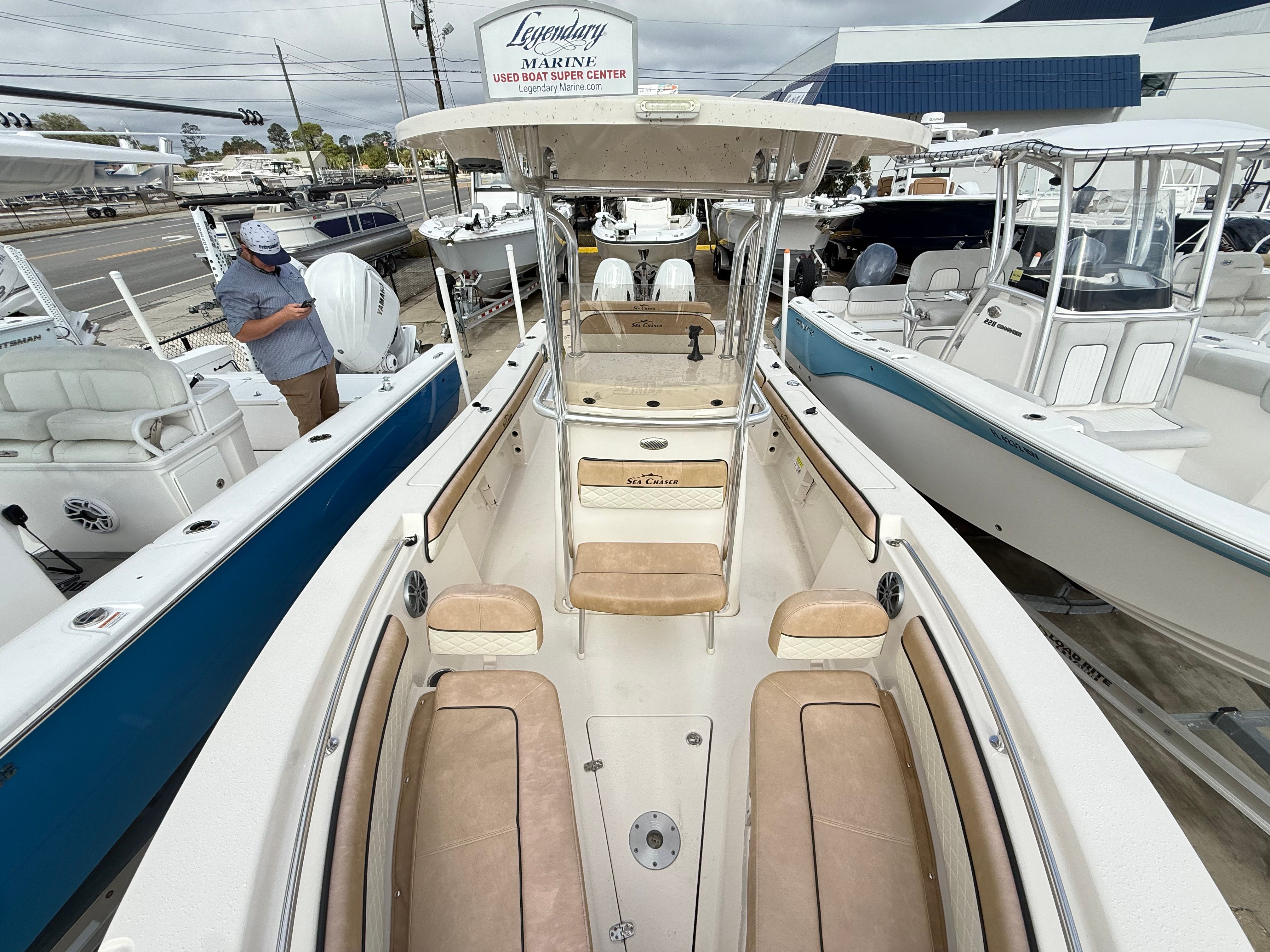 The Sea Chaser 24 HFC is a center console boat designed to impress. Measuring 23.75 feet in length, this boat provides ample space for family, friends, and all your gear. The 2024 model year ensures you benefit from the most up-to-date design and engineering advancements, while its used condition offers an attractive value proposition for savvy buyers. Whether you are a seasoned boater or new to the world of center consoles, this Sea Chaser boat for sale is engineered to meet a wide range of needs and preferences.