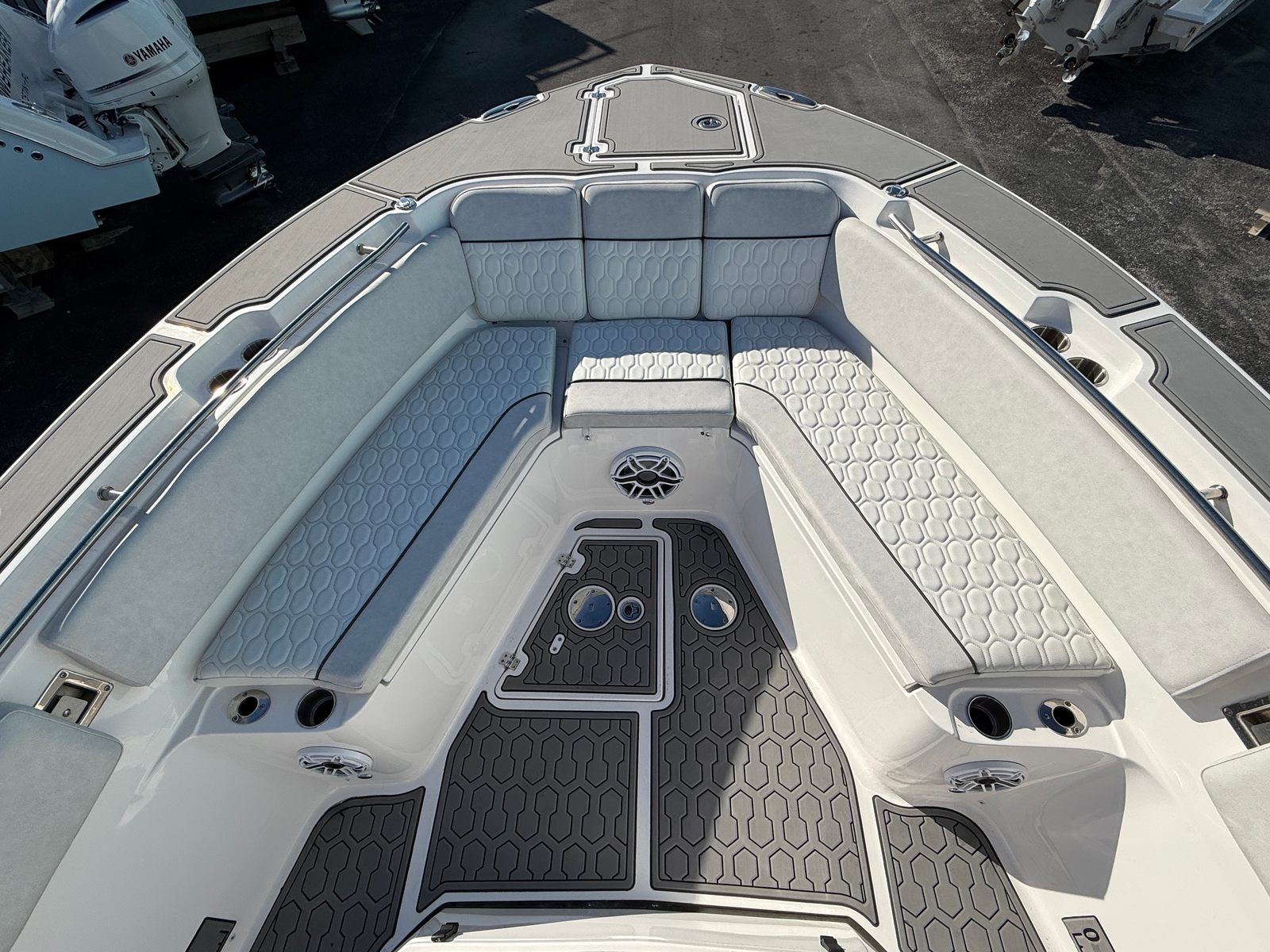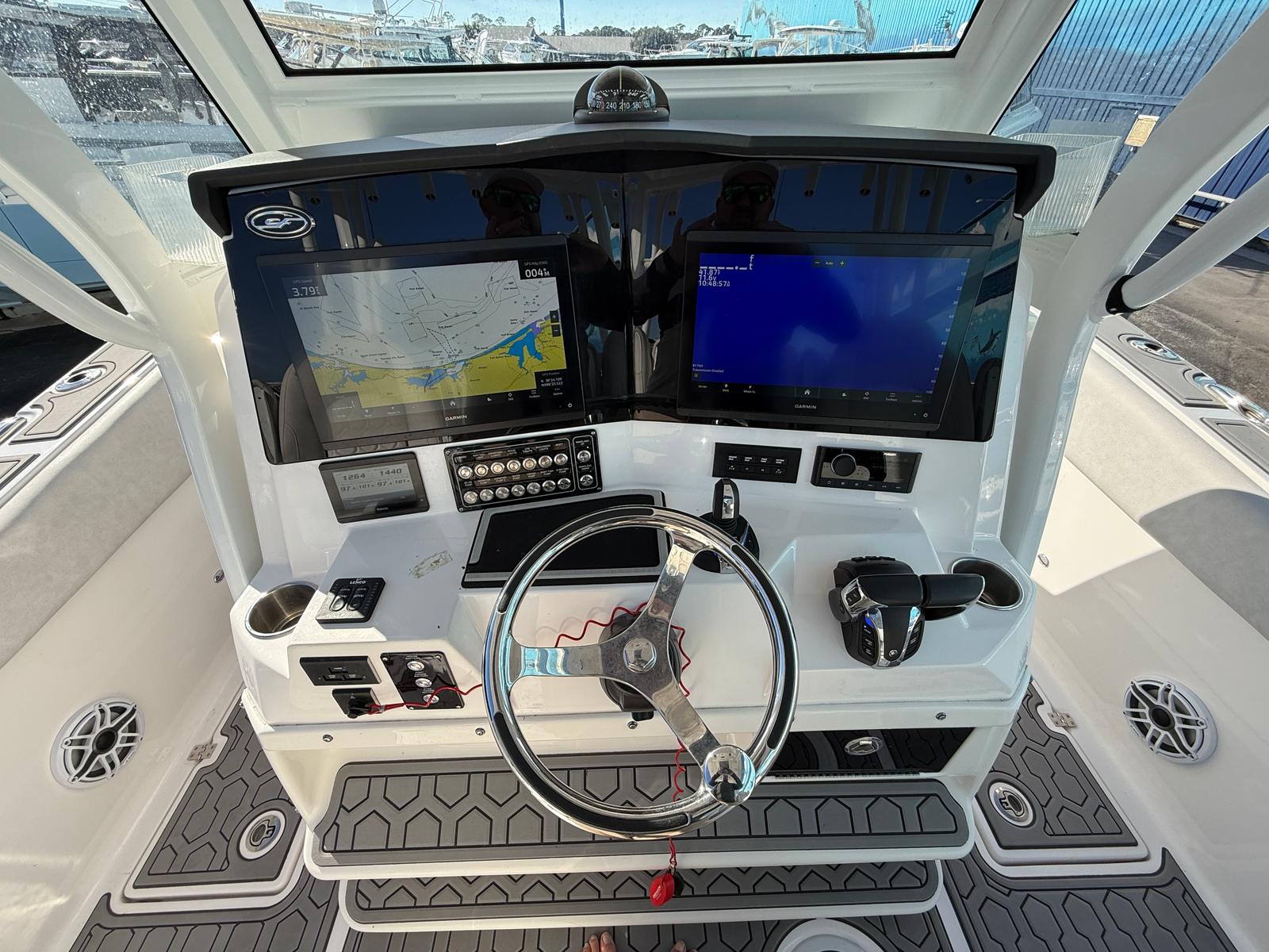 Under the hood, the Sea Fox 328 Commander is powered by twin engines, delivering a combined 850 horsepower. This impressive power setup ensures that you have the speed and agility needed for a variety of activities, from high-speed runs to leisurely cruises. The dual-engine configuration not only enhances performance but also provides added reliability and peace of mind when venturing farther from shore. Whether you are chasing the horizon or navigating tight marinas, the responsive handling and robust acceleration of this center console boat make every outing a memorable experience.