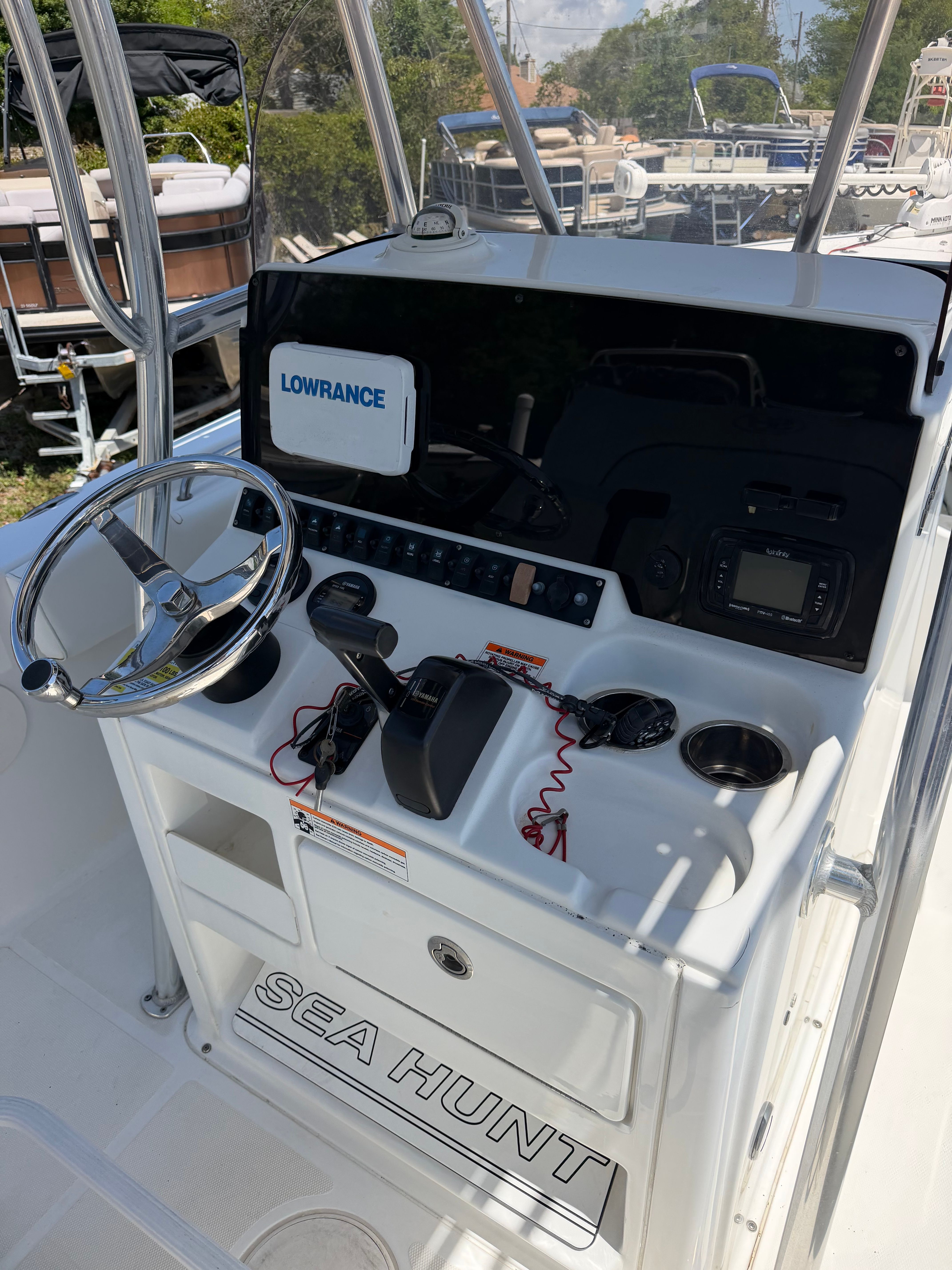 Powered by a single 200-horsepower engine with only 194 hours, the Sea Hunt 225 Ultra offers impressive performance and efficiency. The engine’s power allows for smooth acceleration, responsive handling, and the ability to navigate both calm bays and choppier offshore waters with confidence. Whether you’re heading out for a day of fishing or cruising with friends, the 225 Ultra’s engine delivers the reliability and strength you need for a variety of on-water activities. With its manageable size and responsive controls, docking and maneuvering are a breeze, making this center console boat for sale an excellent choice for both seasoned boaters and newcomers alike.