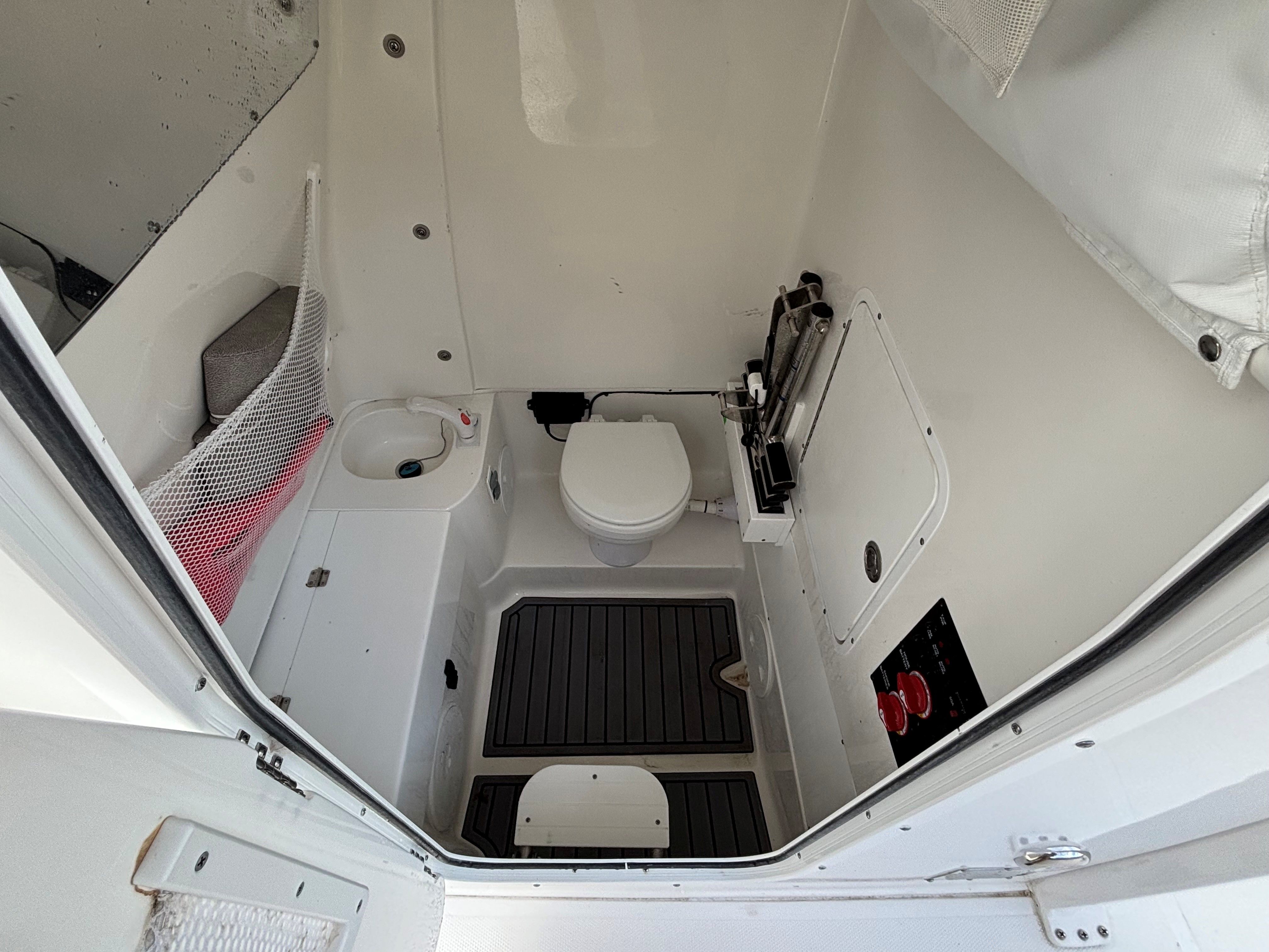 Powering this impressive vessel are twin engines, delivering a combined 600 horsepower. With only 55 engine hours, these engines provide robust and reliable performance, ensuring you have the power you need for offshore fishing, cruising, or water sports. The dual-engine setup not only enhances speed and acceleration but also offers added safety and maneuverability, making it easier to navigate a variety of water conditions. Whether you’re chasing the next big catch or enjoying a day of island hopping, the Sea Hunt 28 Gamefish CB’s performance capabilities are sure to impress.