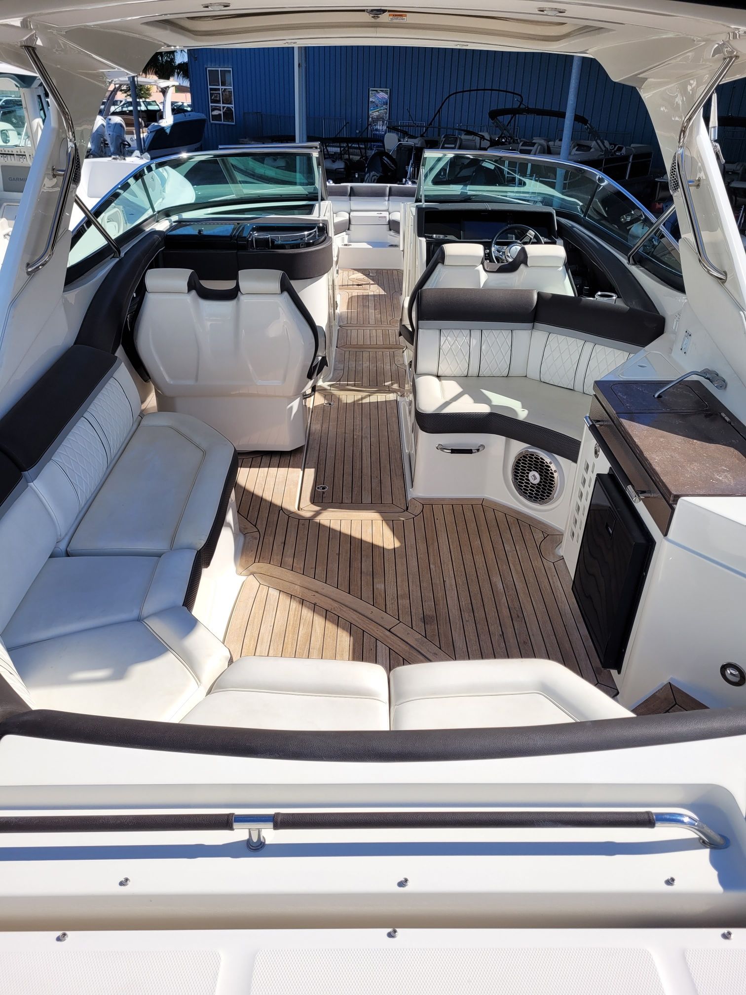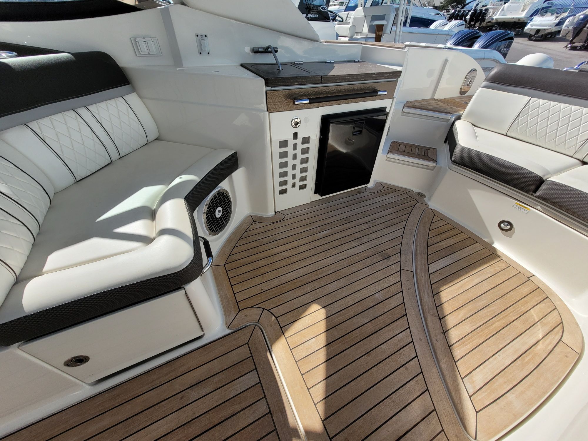 The Sea Ray SLX 350 is as practical as it is stylish. Its thoughtful design includes plenty of storage compartments for all your boating essentials, from water toys to picnic supplies. The dual engines make docking and maneuvering simple, even in tight spaces, while the boat’s efficient performance helps you make the most of every gallon of fuel. Whether you are planning a weekend getaway or a quick afternoon escape, the SLX 350 is equipped to handle all your needs with ease.