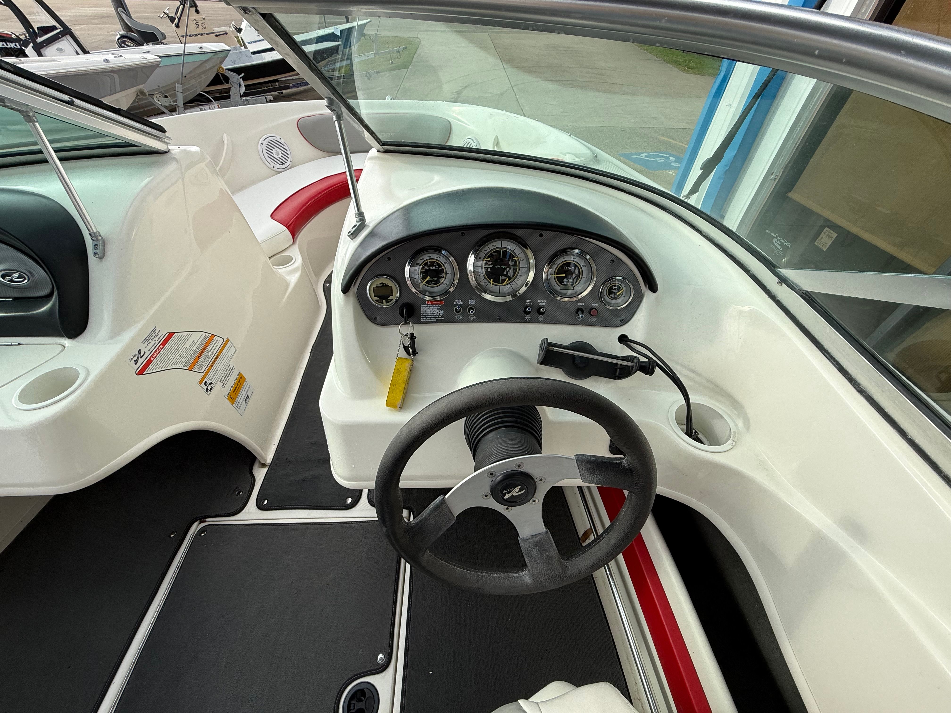 At the heart of this Sea Ray Sport 205 is a single, robust engine delivering 220 horsepower. With only 296 engine hours, this bowrider boat for sale offers a great balance of power and efficiency, ensuring smooth acceleration and responsive handling. The 220 HP engine is perfectly matched to the boat’s size, providing plenty of get-up-and-go for watersports, cruising, or simply zipping across the lake. Whether you’re towing a wakeboarder or heading out for a sunset cruise, the Sport 205’s performance will keep you smiling from start to finish.