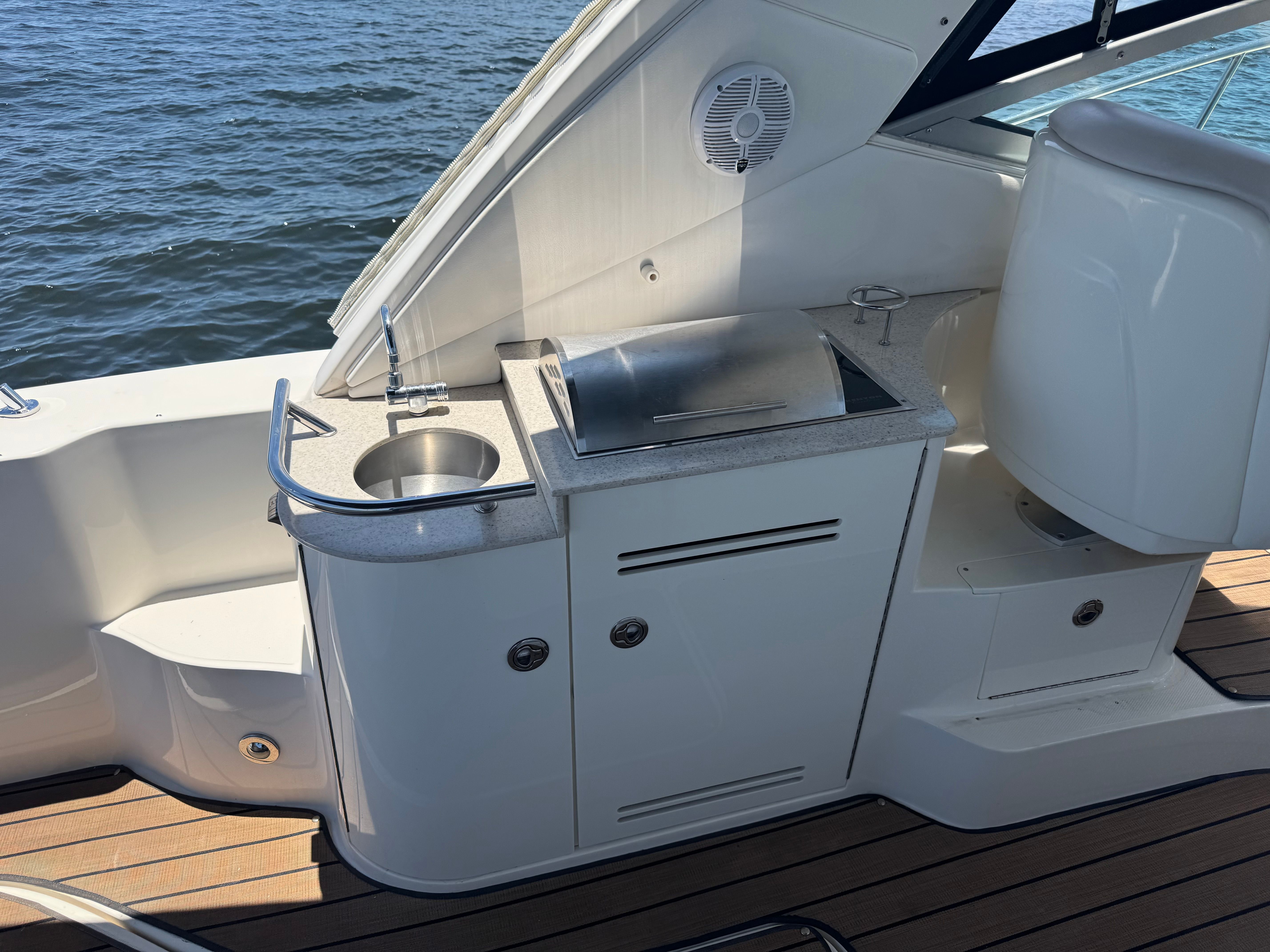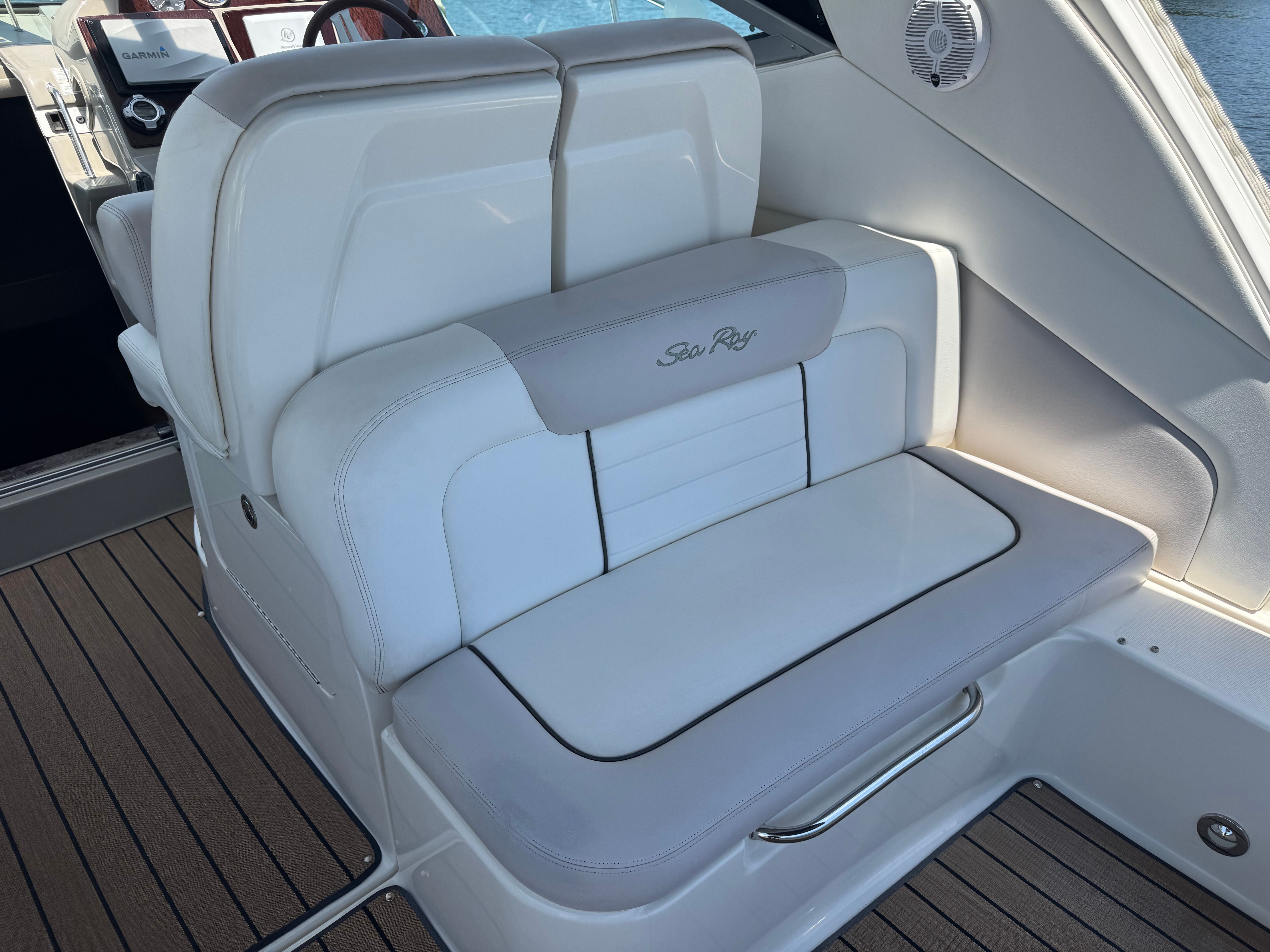 In addition to its recreational appeal, the Sea Ray Sundancer 350 offers practical benefits that make ownership a pleasure. The cruiser’s efficient layout includes smart storage solutions, allowing you to keep your boating essentials organized and easily accessible. Docking is simplified thanks to the twin-engine configuration, which provides excellent control and maneuverability in tight spaces. The Sundancer 350’s design also promotes fuel efficiency, helping you make the most of your time on the water without frequent refueling stops.Whether you’re planning a day trip, an overnight adventure, or an extended cruise, this used Sea Ray boat for sale is equipped to handle a variety of boating scenarios. Its versatile design makes it easy to transition from relaxing at anchor to exploring new harbors, ensuring that every outing is both enjoyable and stress-free.