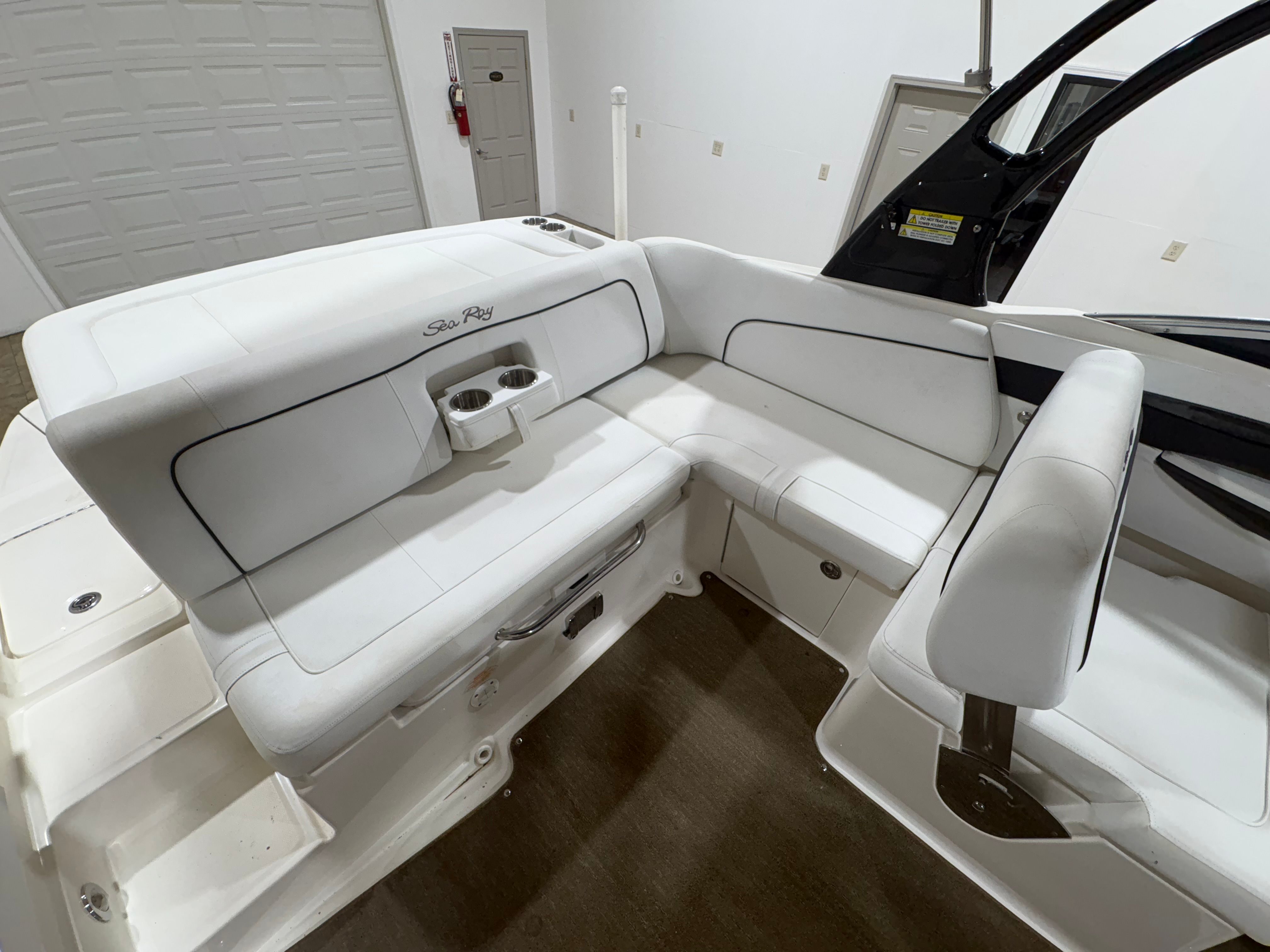 The Sea Ray Sundeck 240 is as practical as it is fun. Its manageable size makes docking and maneuvering a breeze, even for those new to boating. The efficient single-engine setup helps keep fuel costs in check, allowing you to spend more time on the water and less time at the pump. Ample storage compartments ensure that everything you need for a day on the water is within easy reach, from life jackets to picnic supplies. The boat’s thoughtful design also makes it easy to clean and maintain, so you can focus on enjoying your time afloat.